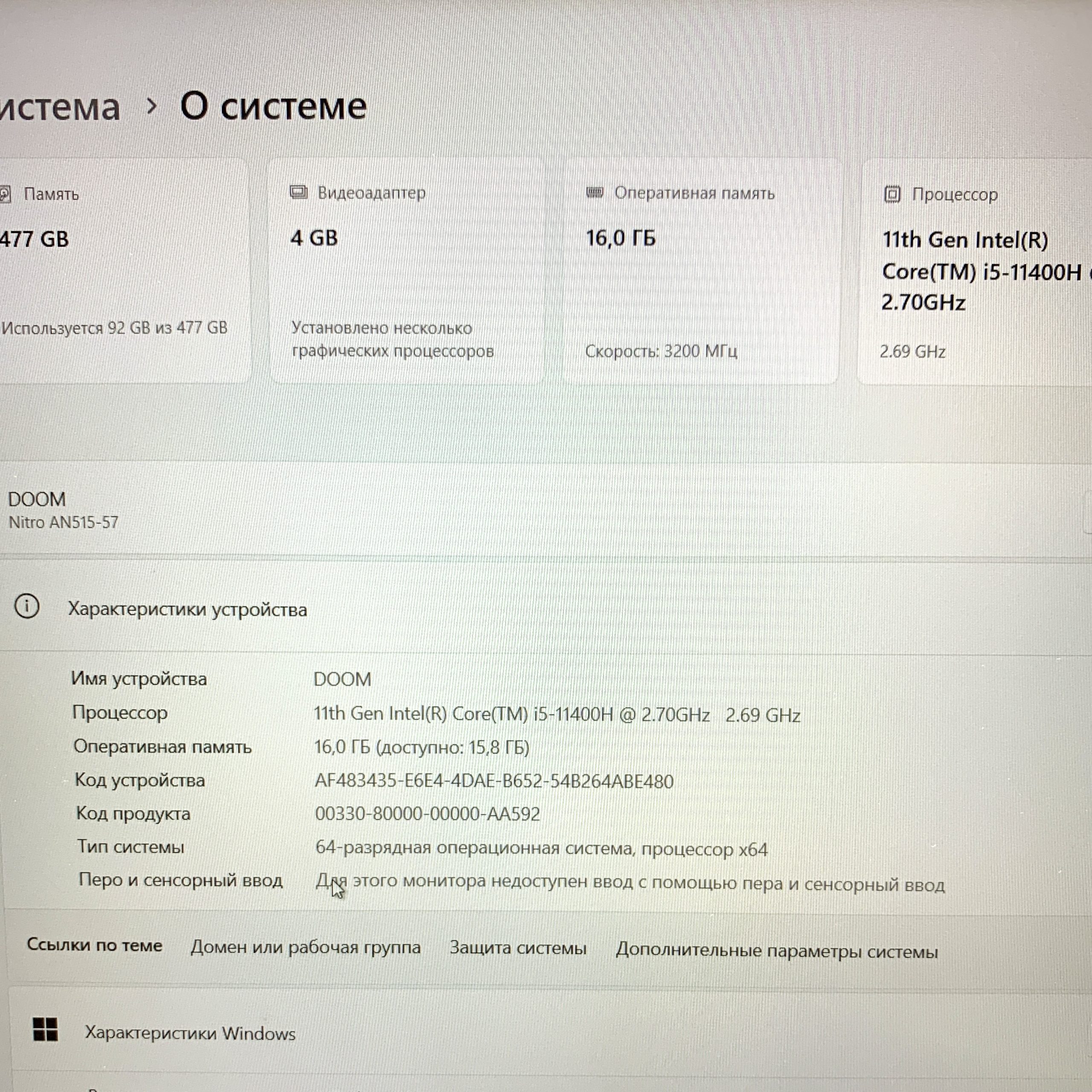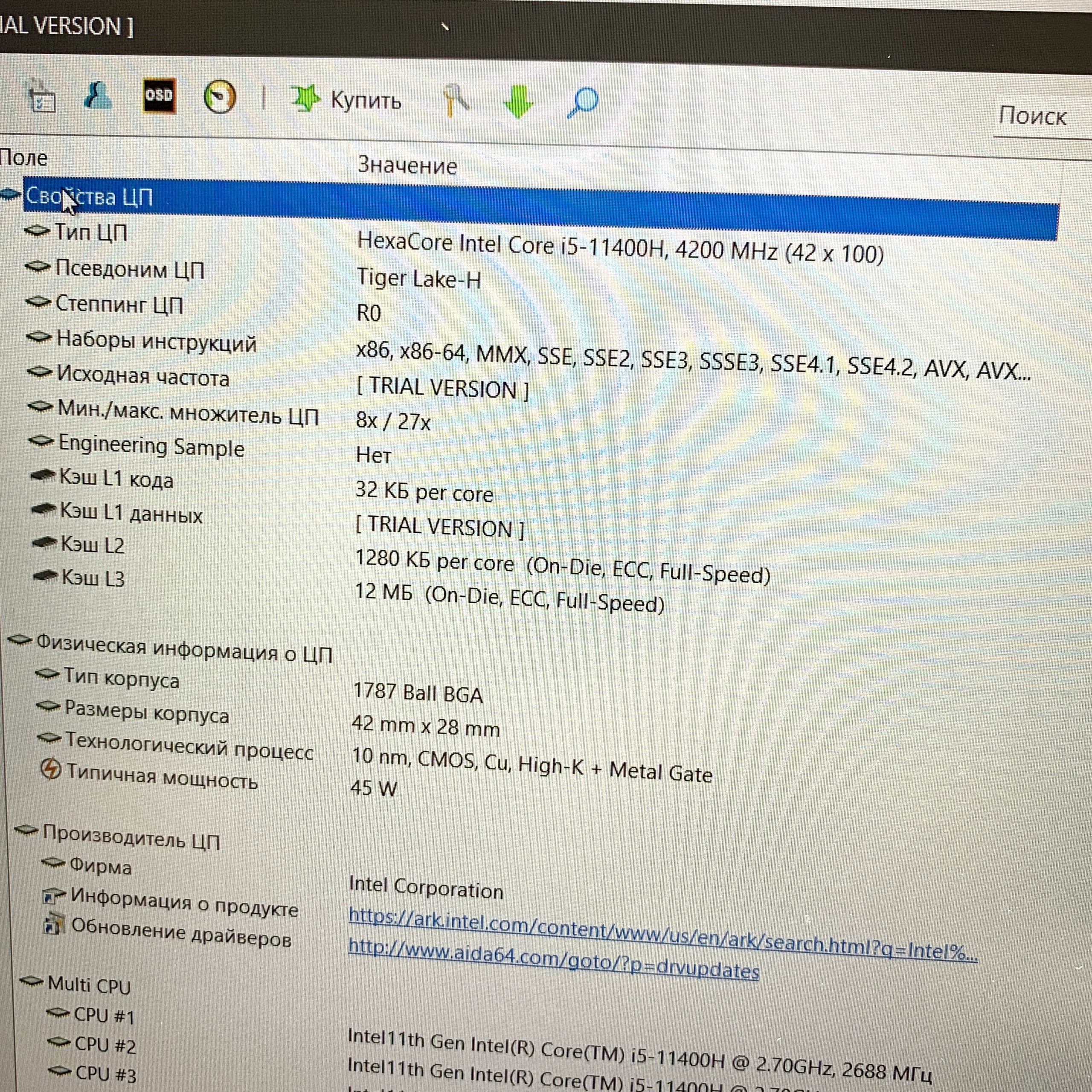 | Процессор Ггц | Intel Core i5-11400H, 2.7 ГГц |