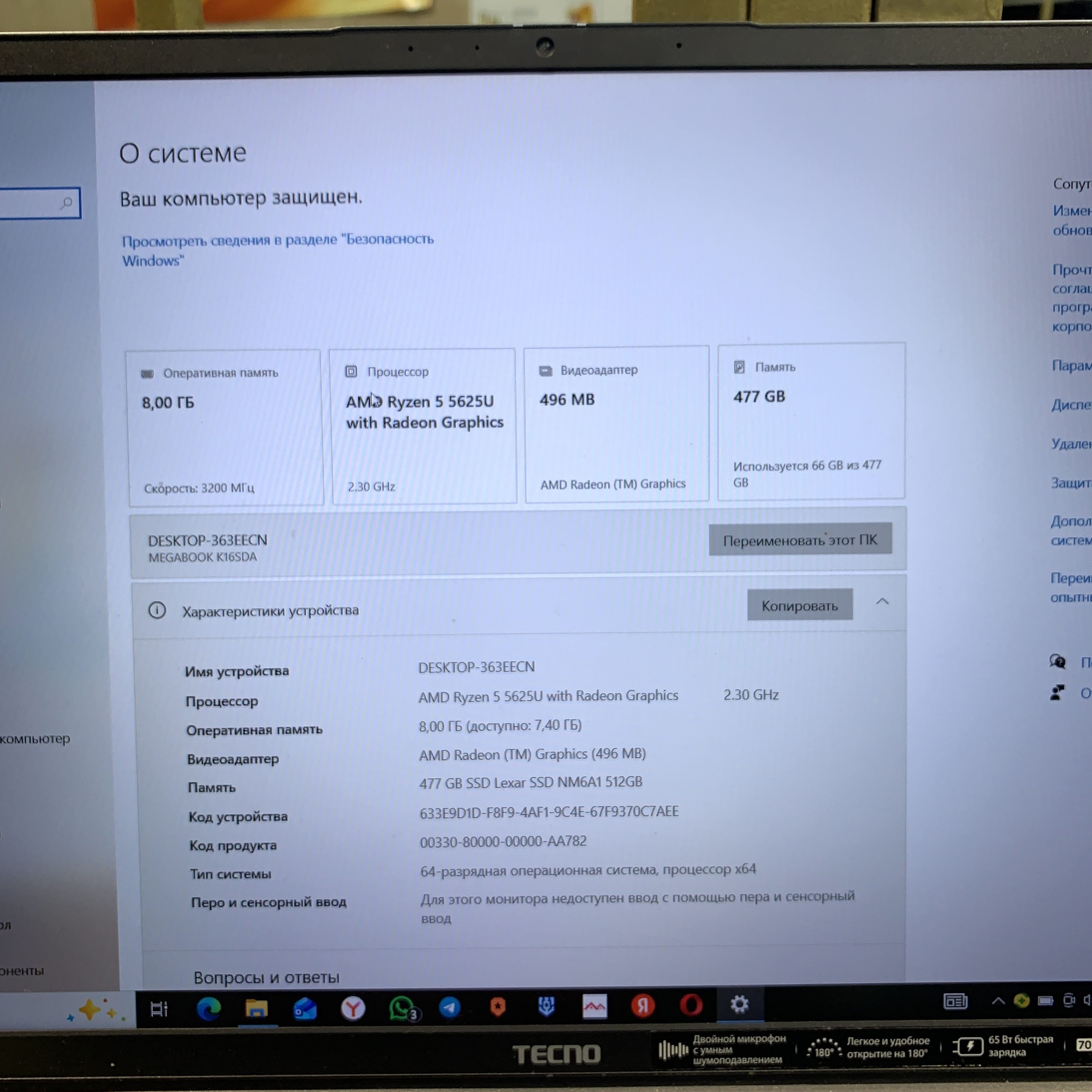 Ноутбук Tecno Megabook K16SDA, AMD Ryzen 5 5625U