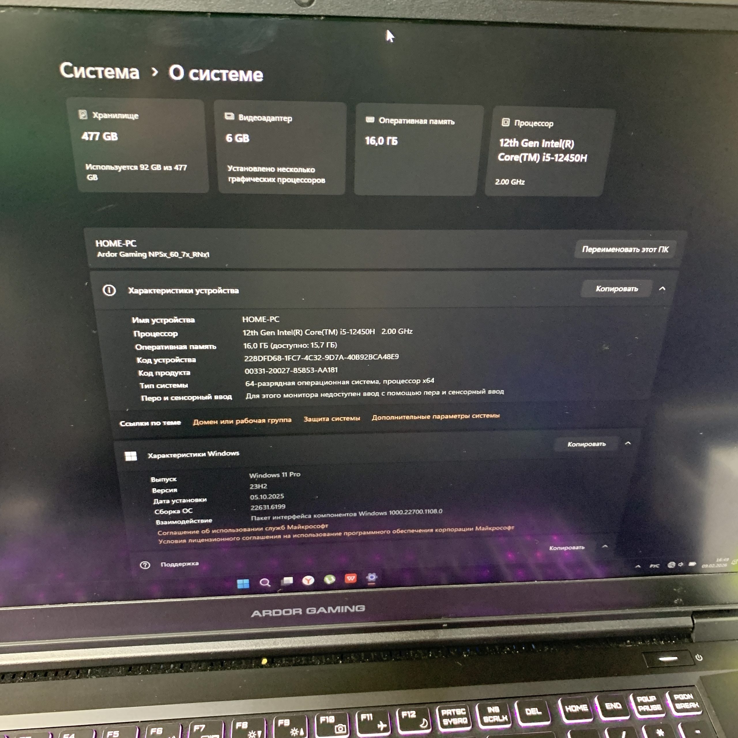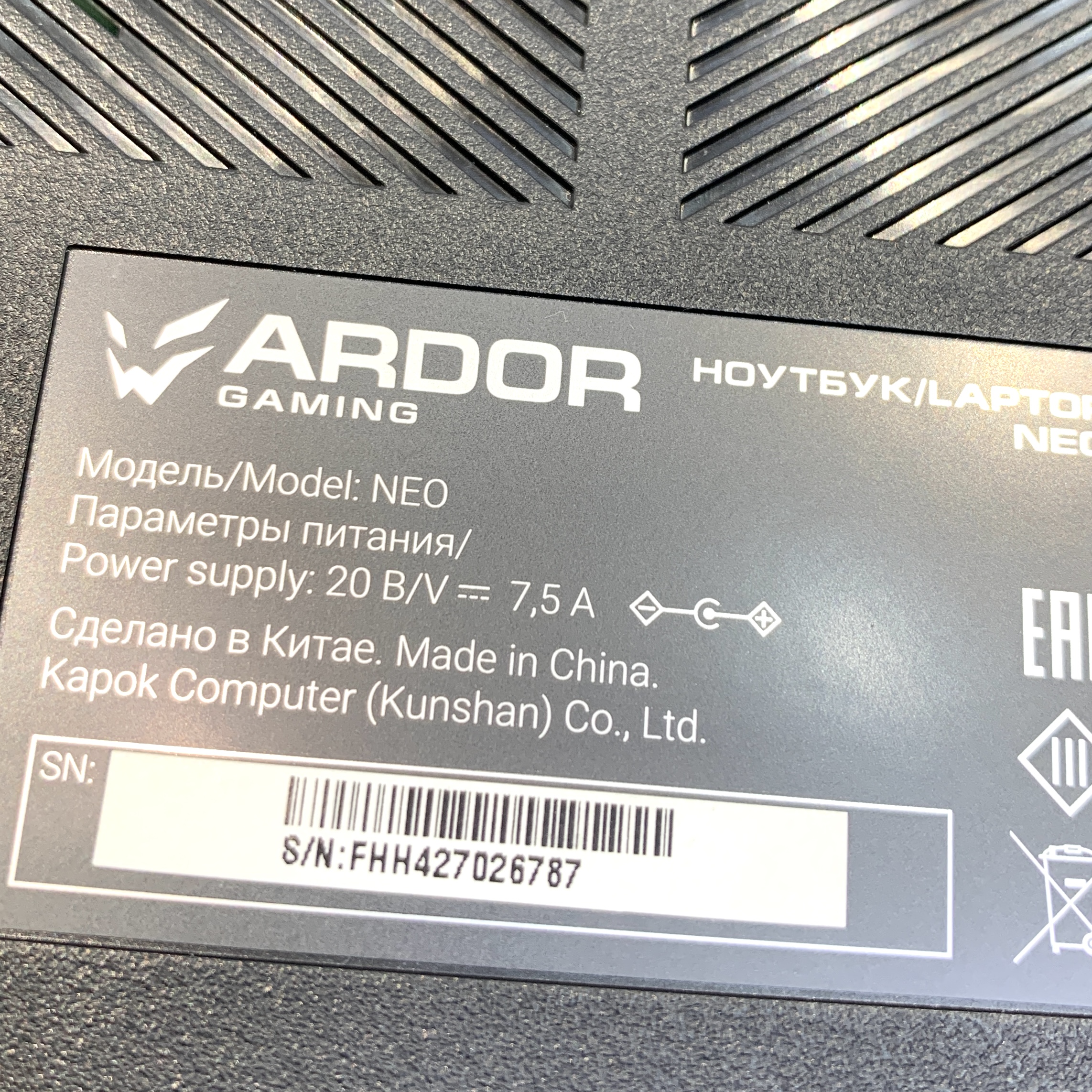 | Производитель ноутбука | ARDOR GAMING |