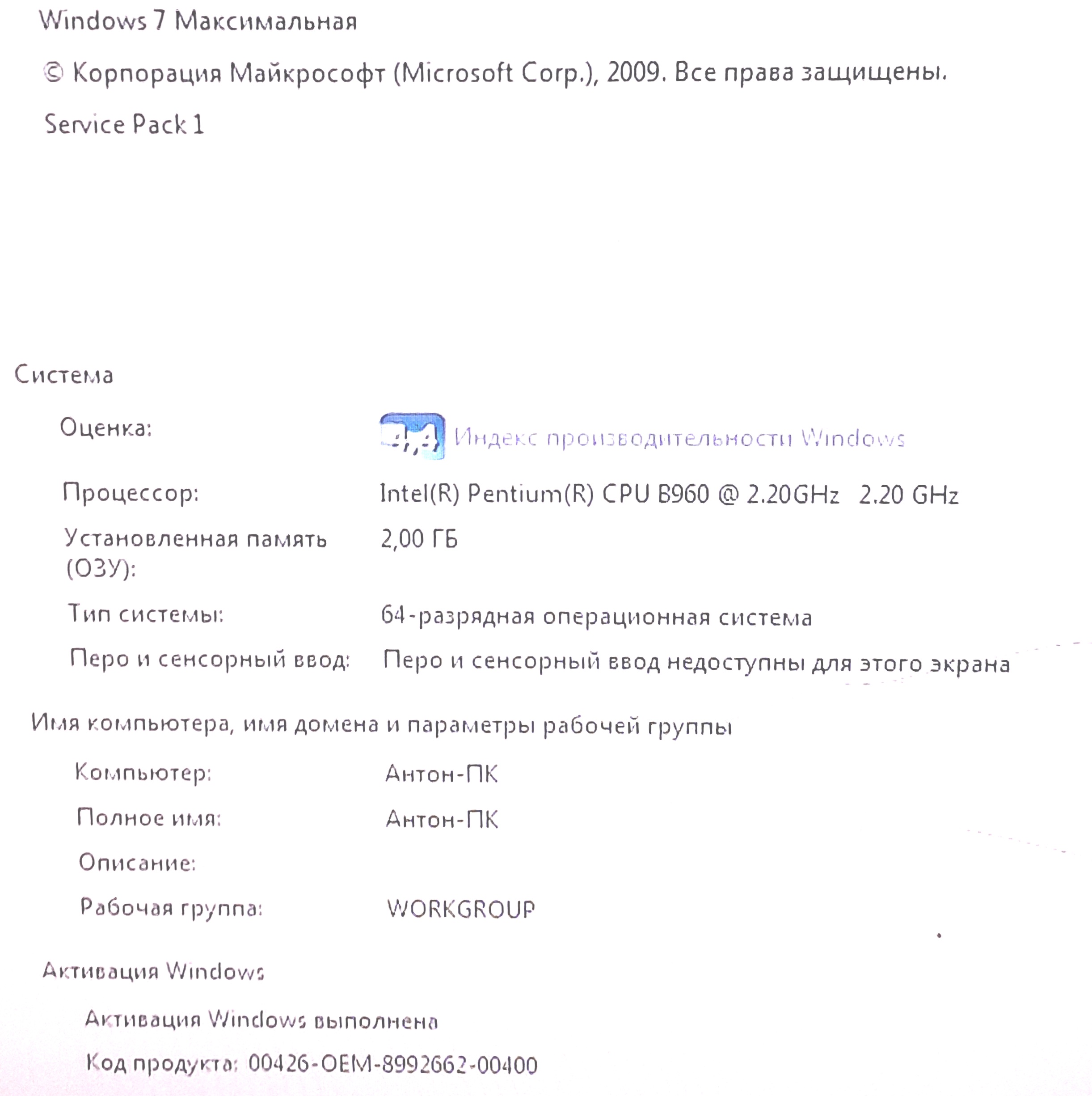 Intel Pentium B960, 2.2 ГГц |
