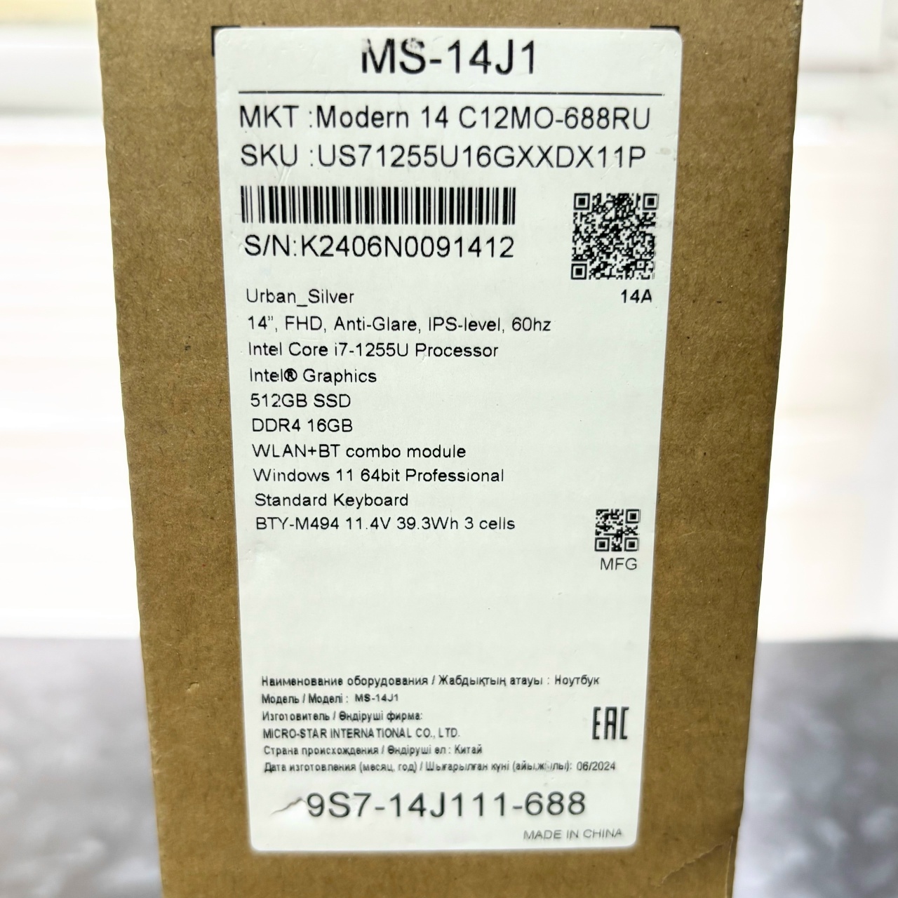 | Модель ноутбука | Modern 14 C12MO-688RU |