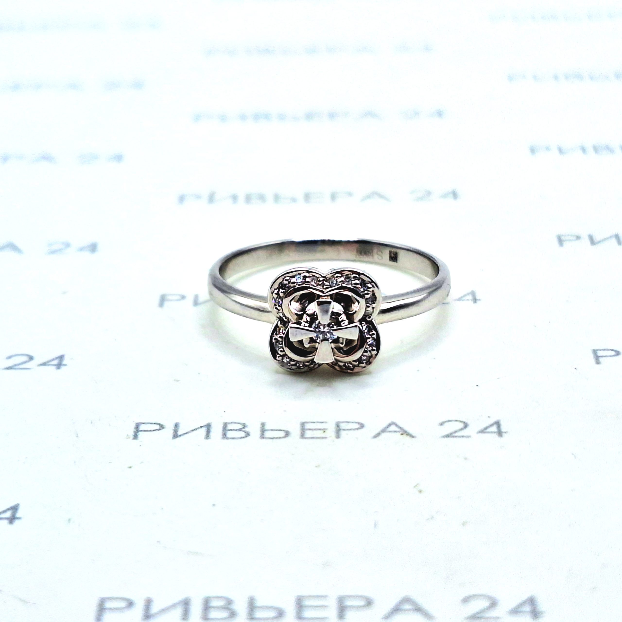 Золотое кольцо белое золото с бриллиантами 585 проба 2.48 грамм Золото 585 пробы.