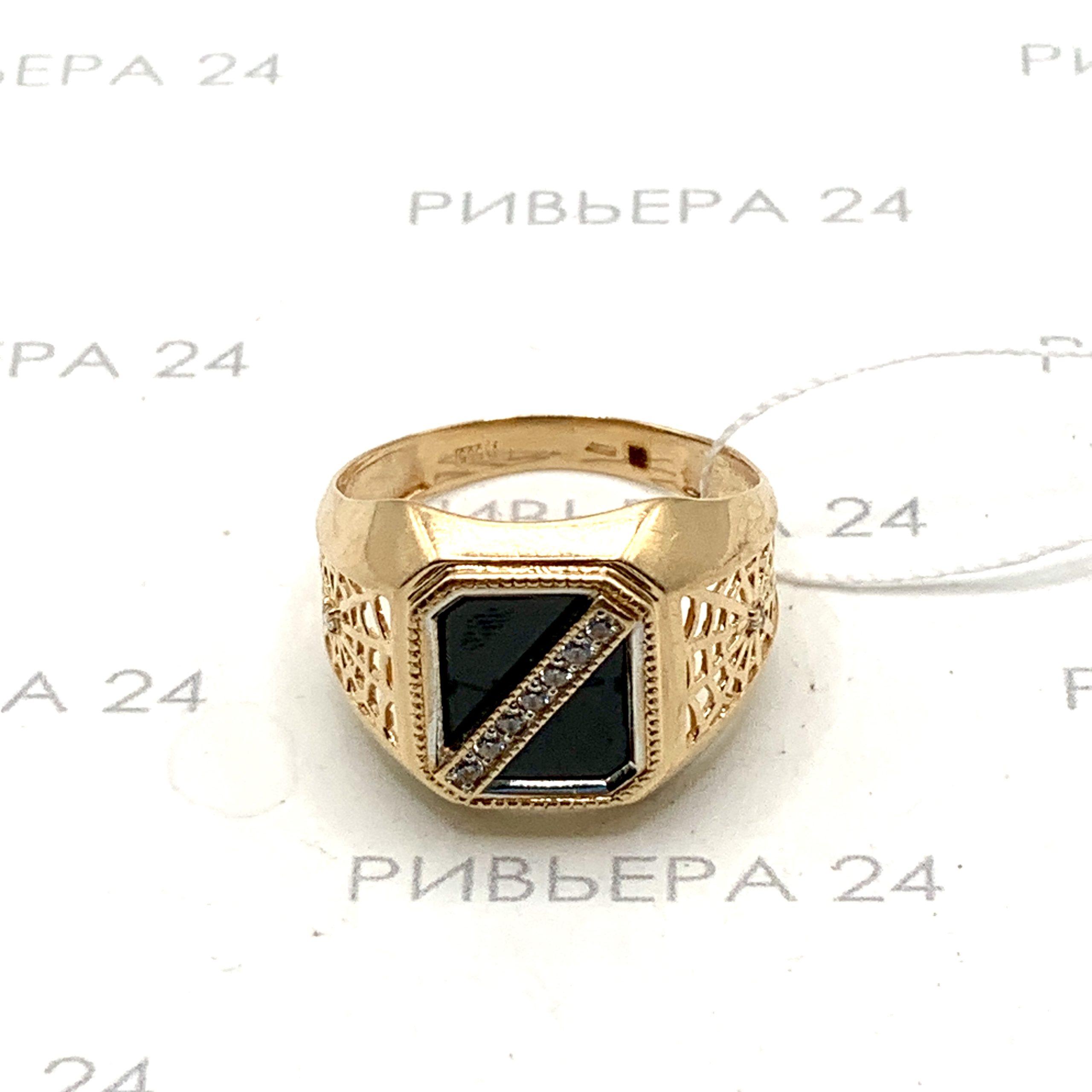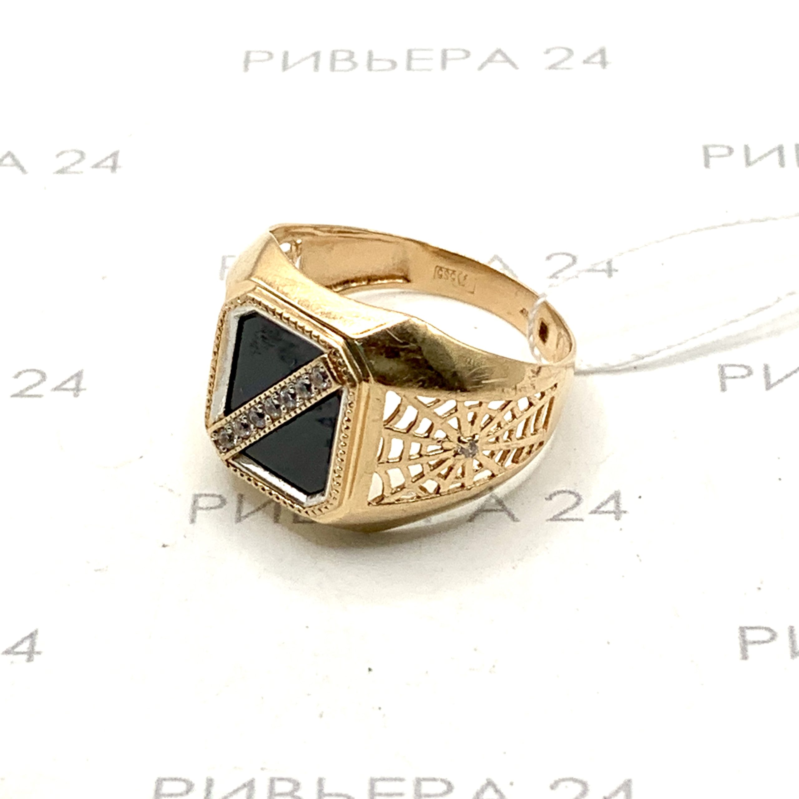 Золотое кольцо печатка с агатом 585 пробы 4.72 грамма р. 20 Золото 585 пробы.
