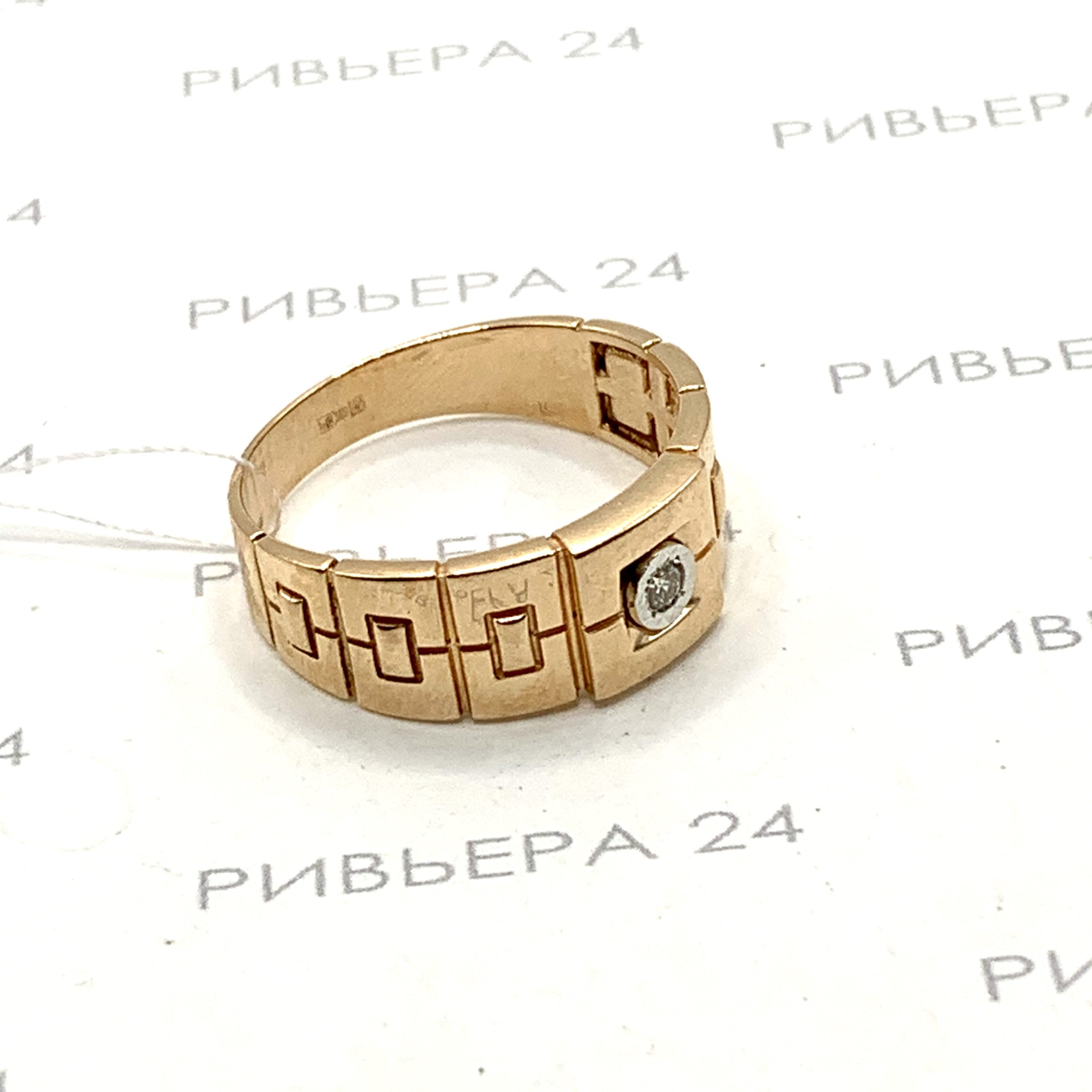 Золотое кольцо печатка с бриллиантом 585 пробы 6.61 грамма р. 22 Золото 585 пробы.