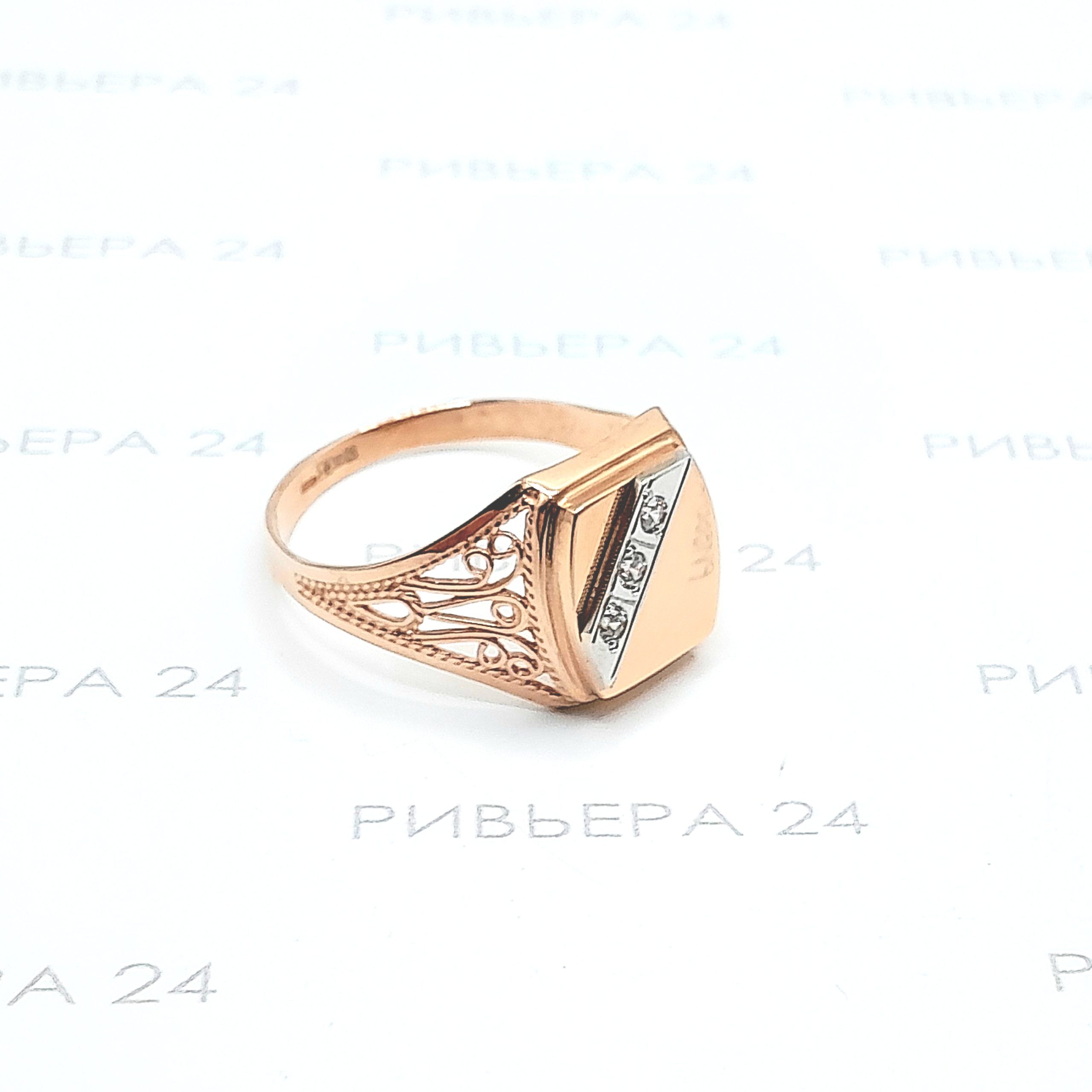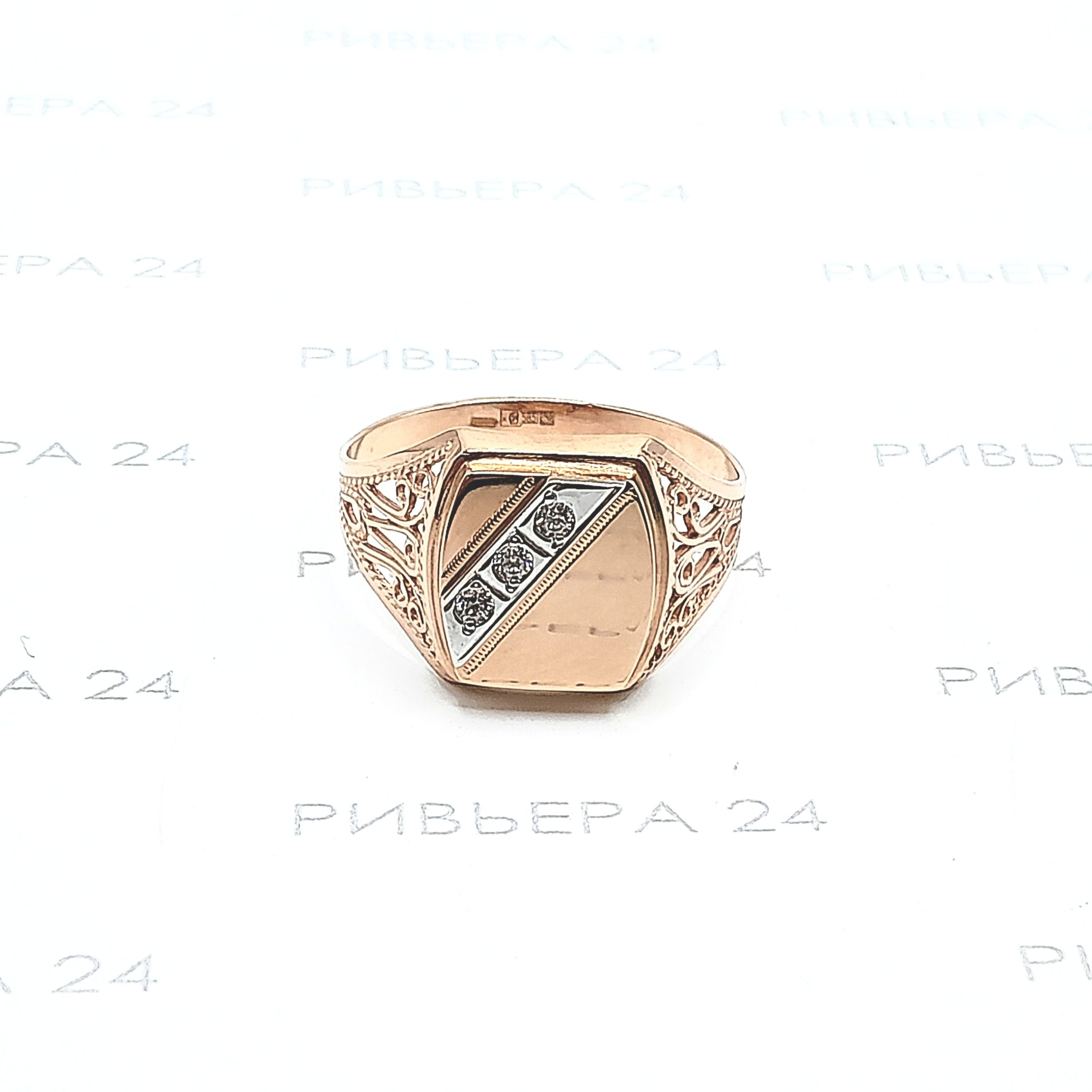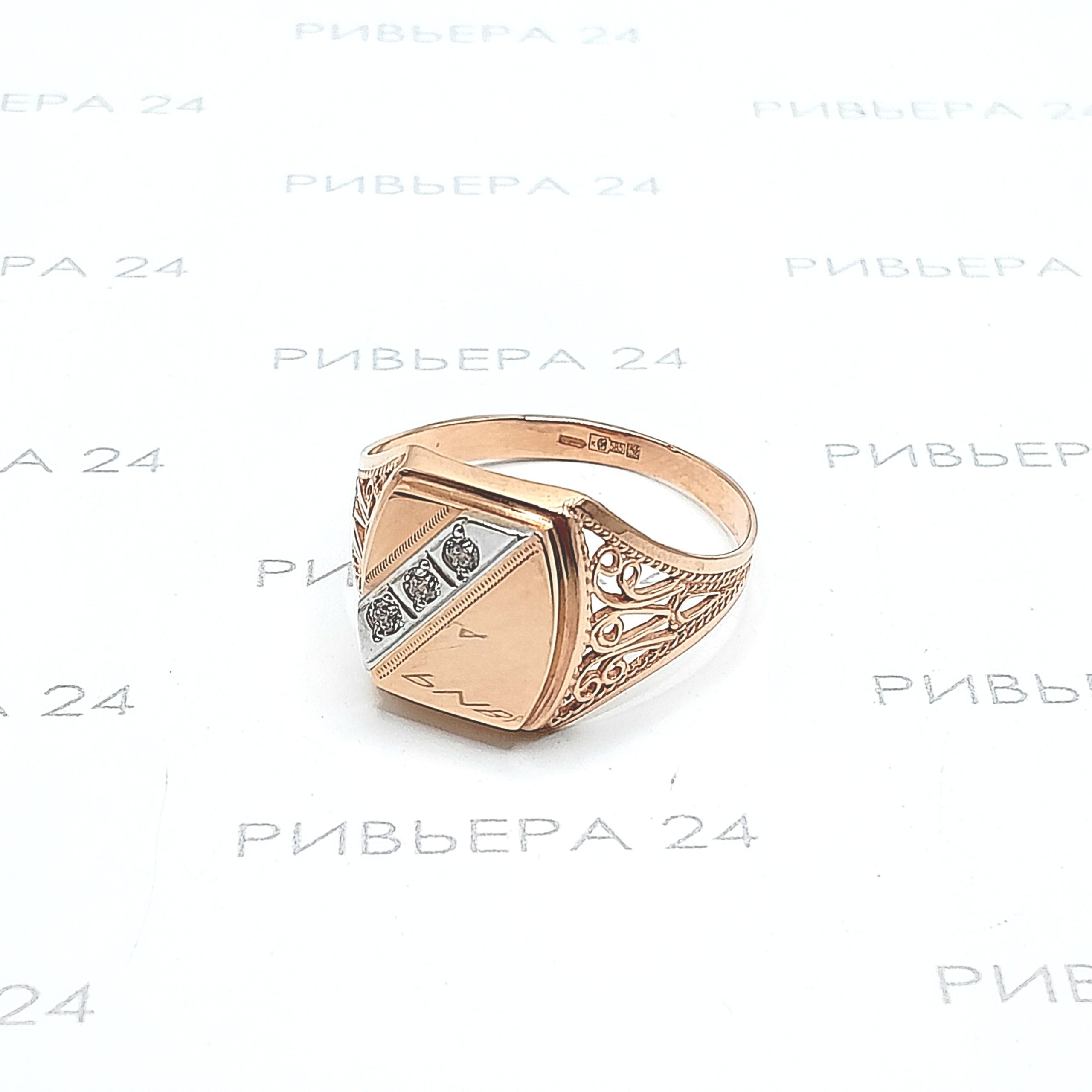 Золотое кольцо печатка с фианитами мужская 585 пробы 4,44 грамм 23 р-р Золото 585 пробы.