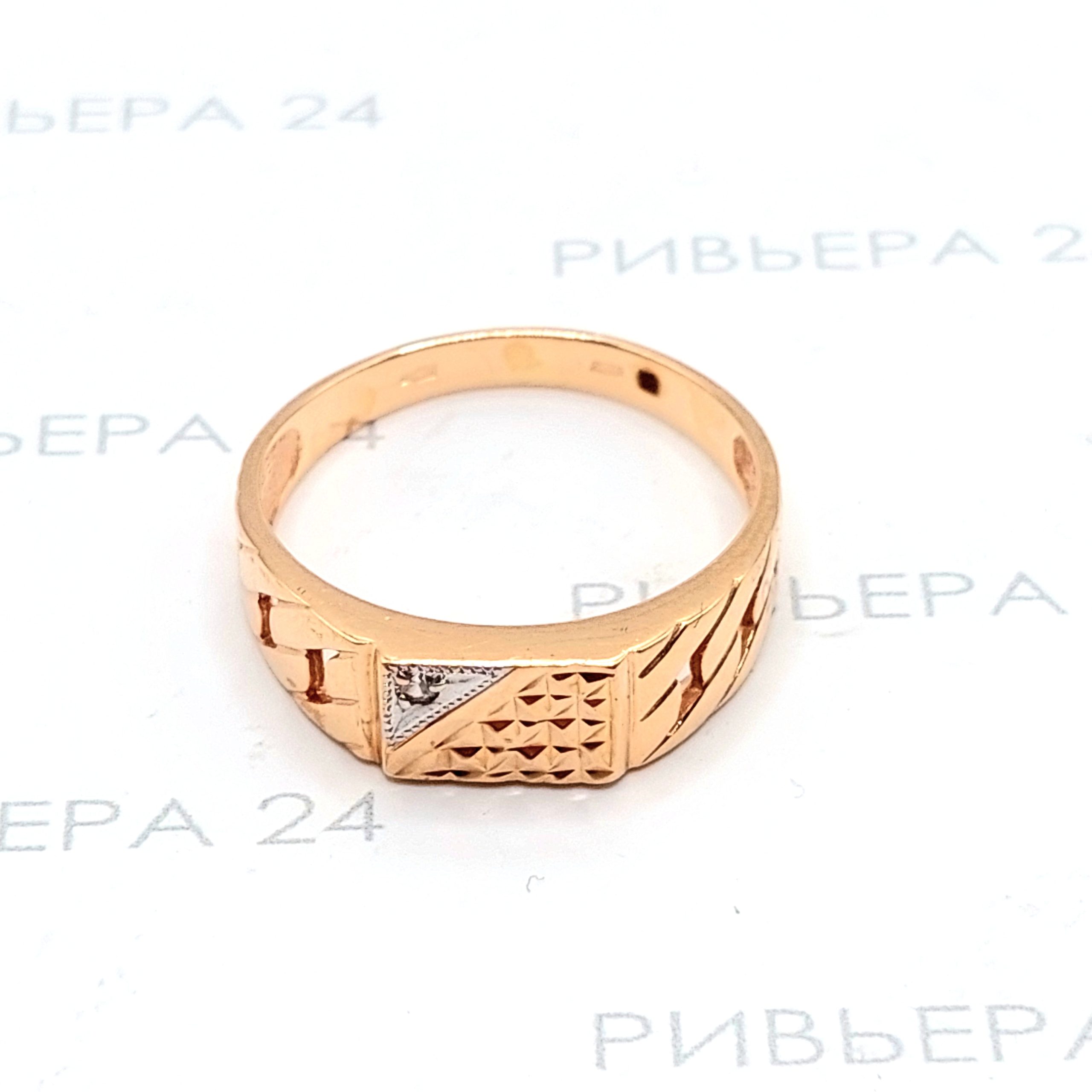Золотое кольцо-печатка с фианитом 585 пробы 4.20 грамм 21 размер Золото 585 пробы.