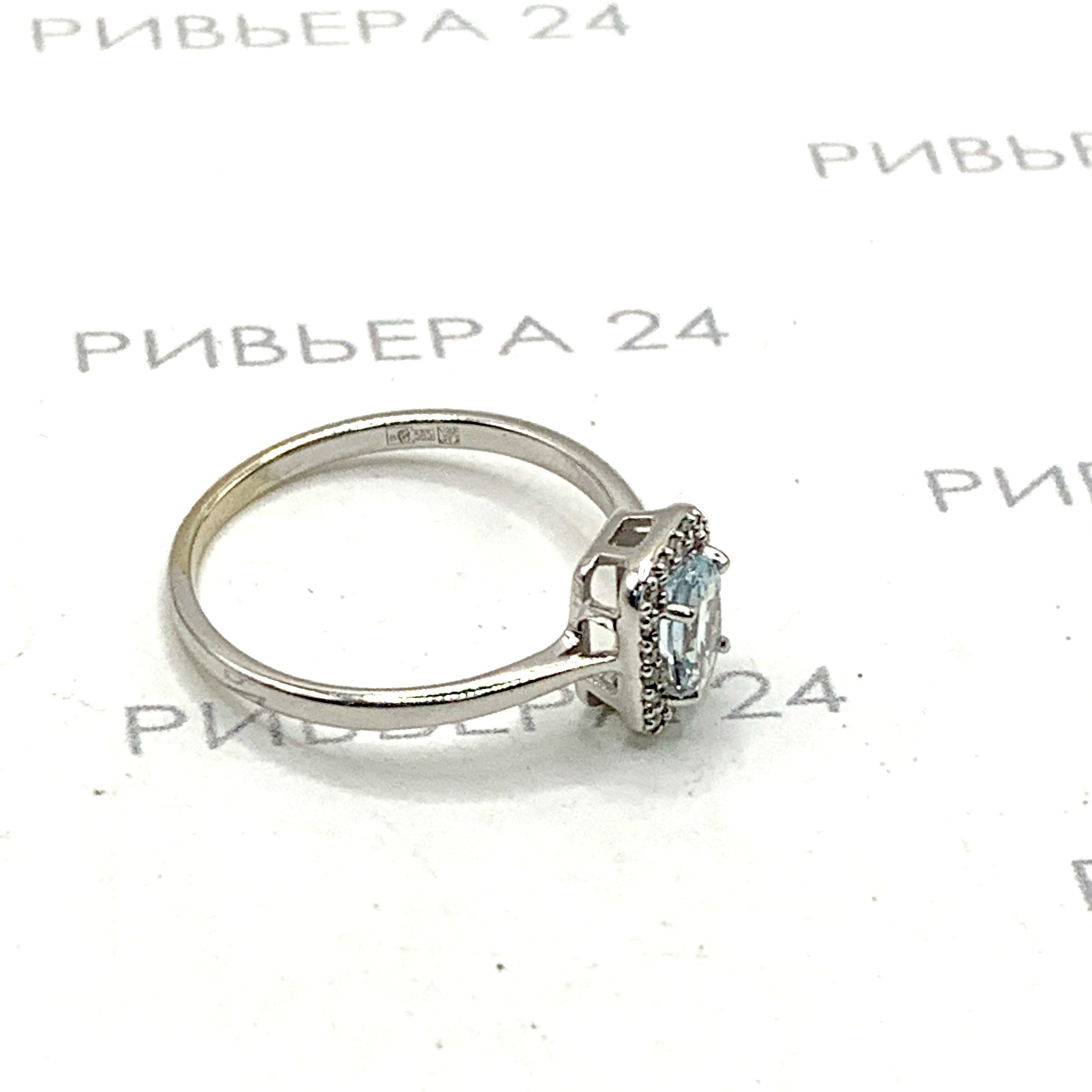 Золотое кольцо с бриллиантами и аквамарином 585 пробы 1.71 грамма р. 16,5