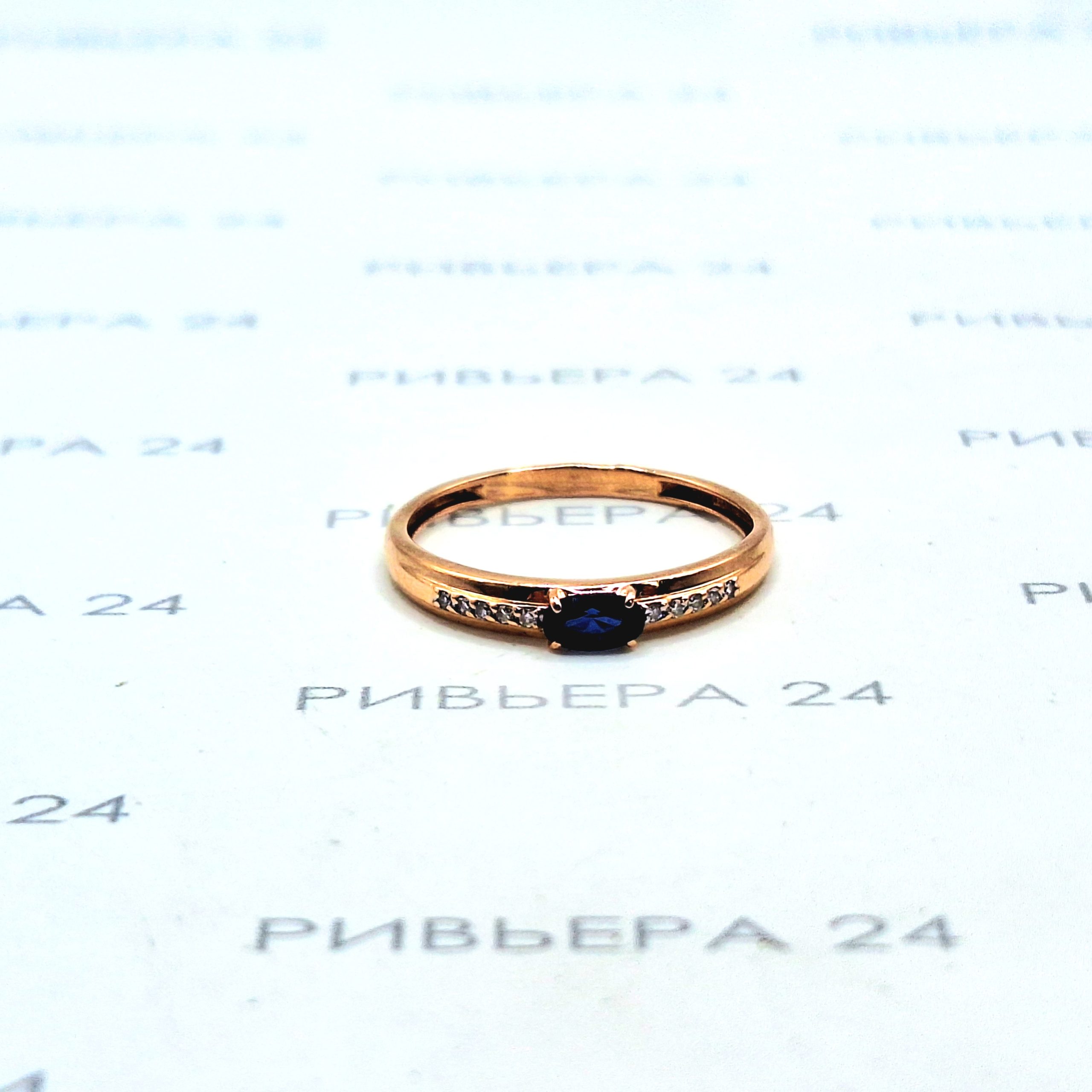 Золотое кольцо с бриллиантами и корундом 585 проба 1.37 грамм Золото 585 пробы.