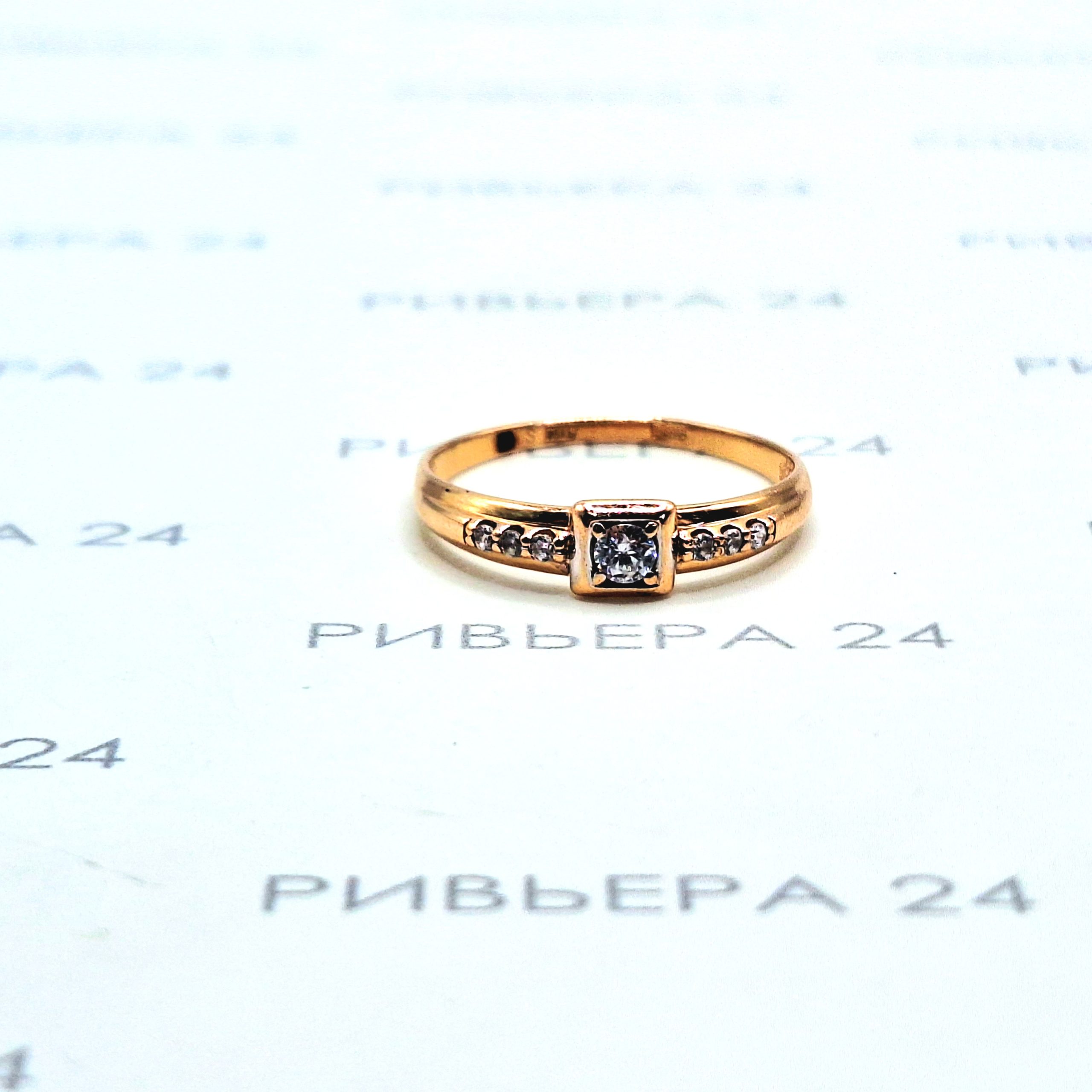 Золотое кольцо с фианитами 585 проба 1.28 грамм 17 р.