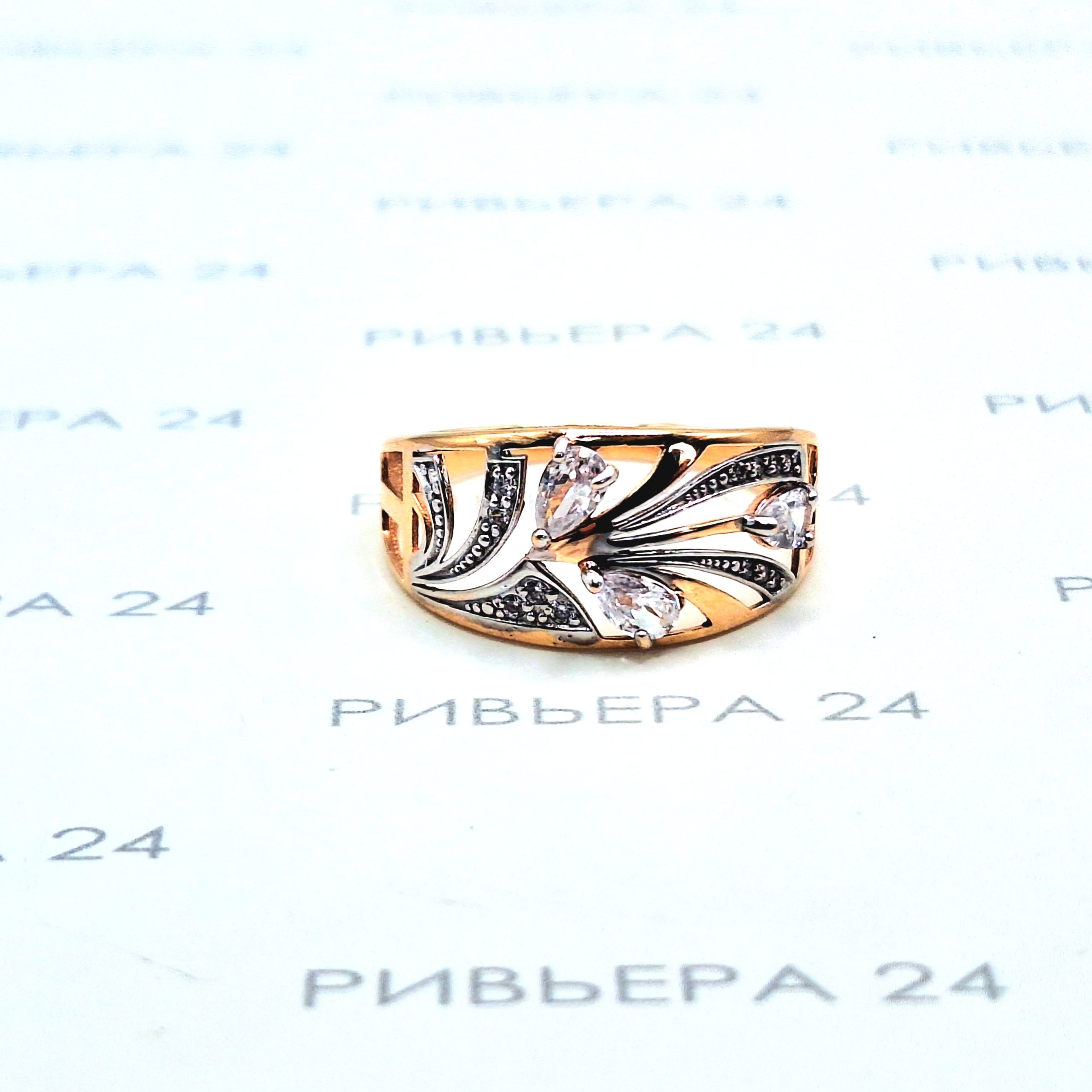 Золотое кольцо с фианитами 585 проба 2.70 грамм 20,5 р. Золото 585 пробы.