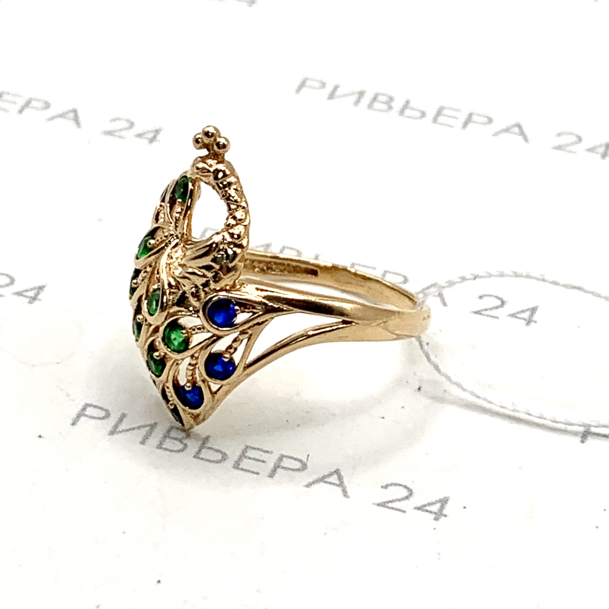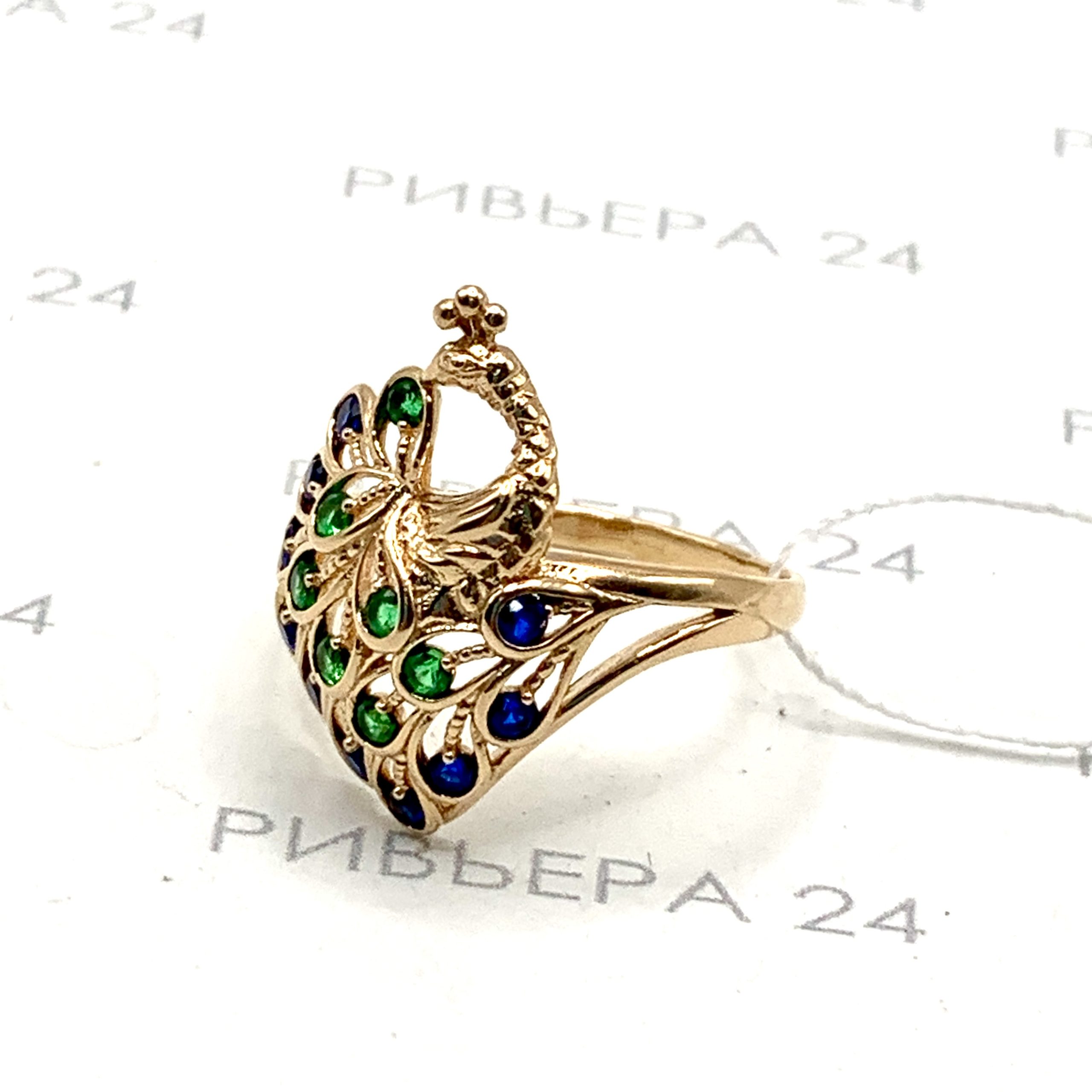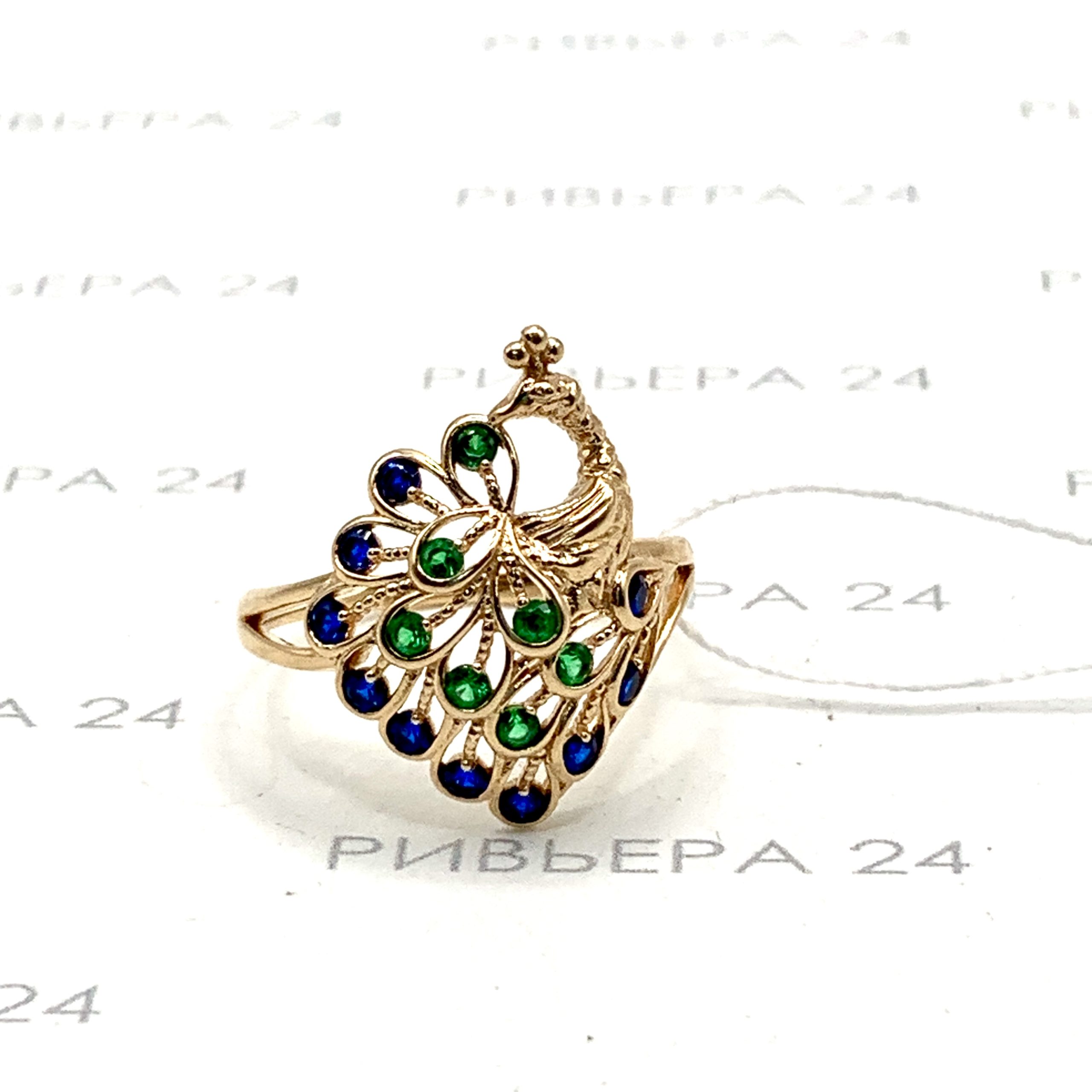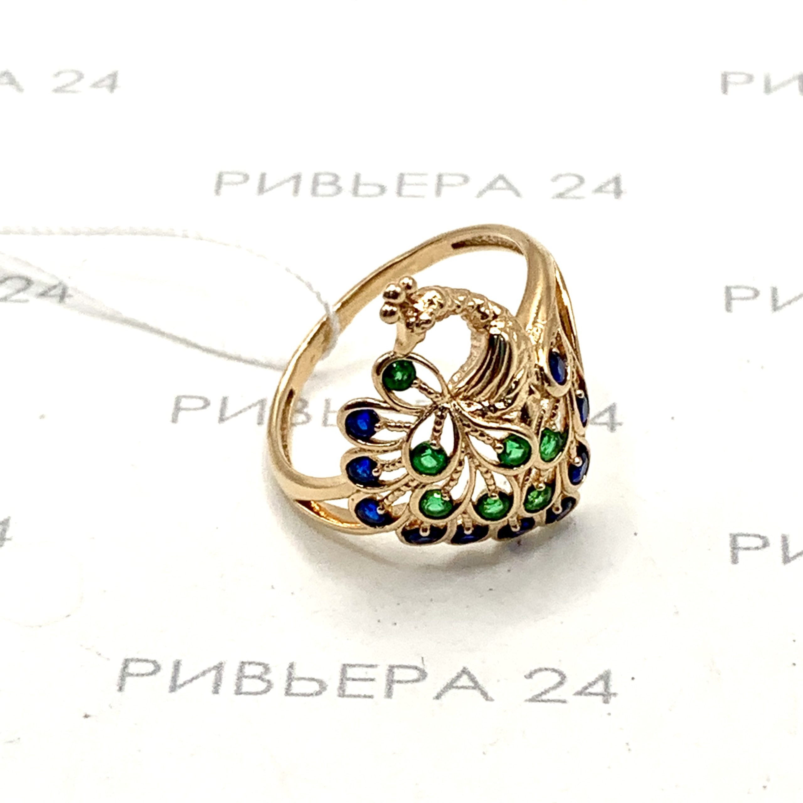 Золотое кольцо с фианитами Жар-птица 585 пробы 3.22 грамма р. 18 Золото 585 пробы.