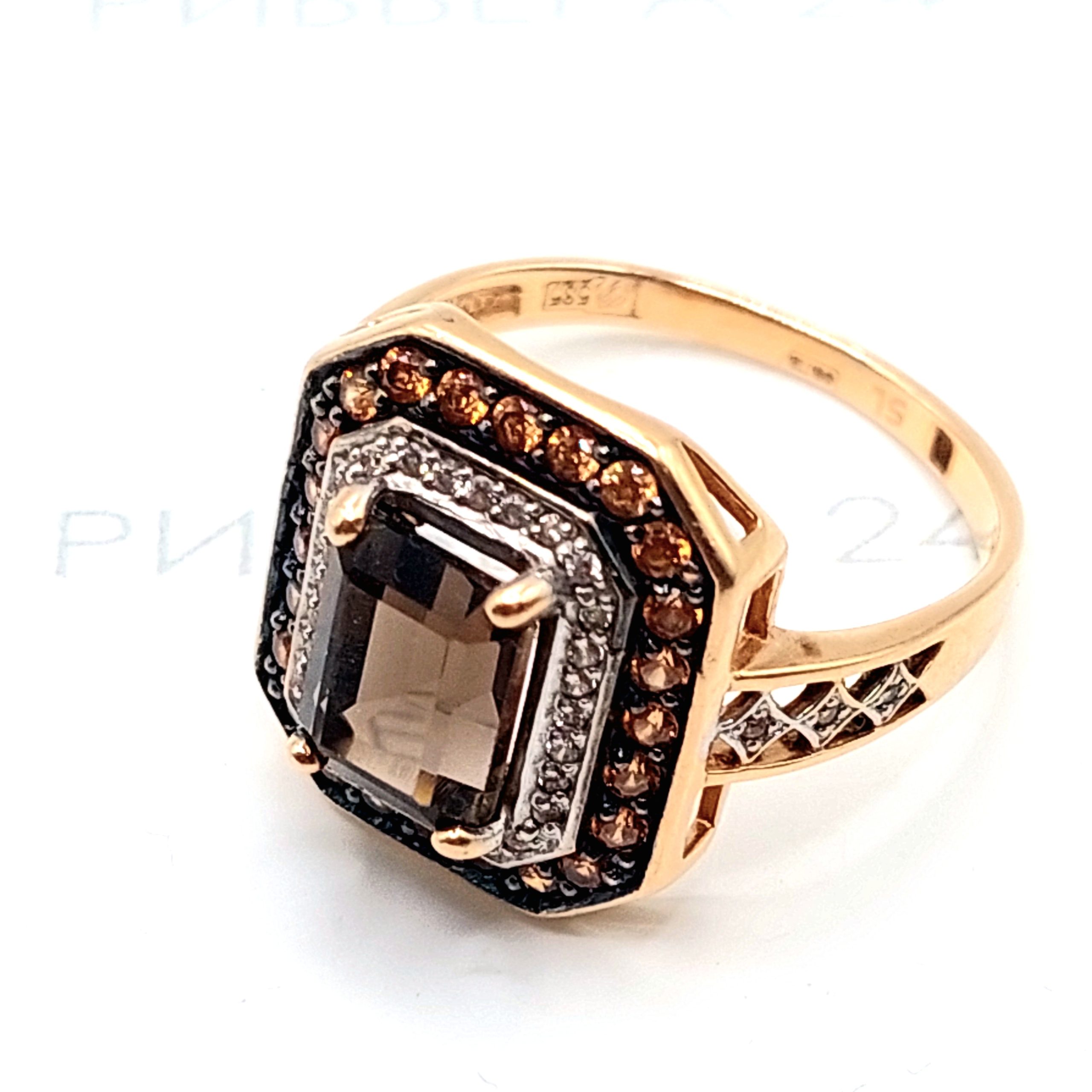 Золотое кольцо с раухтопазом 585 пробы 4.16 грамм