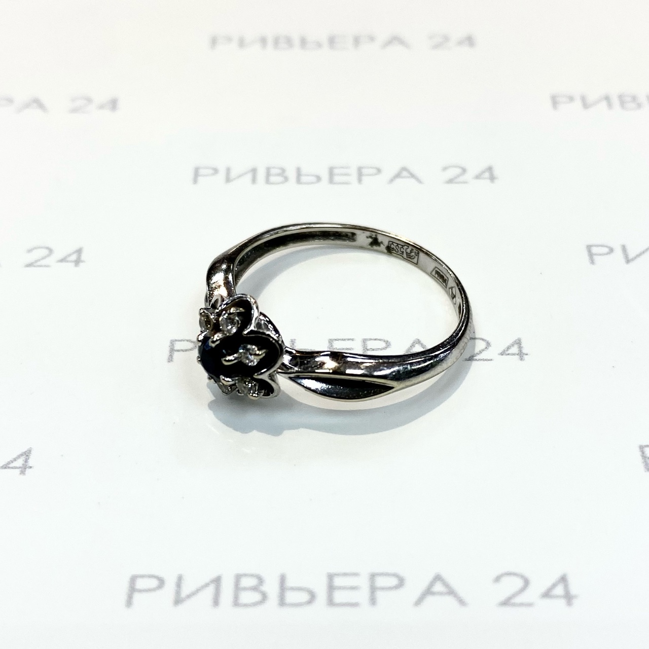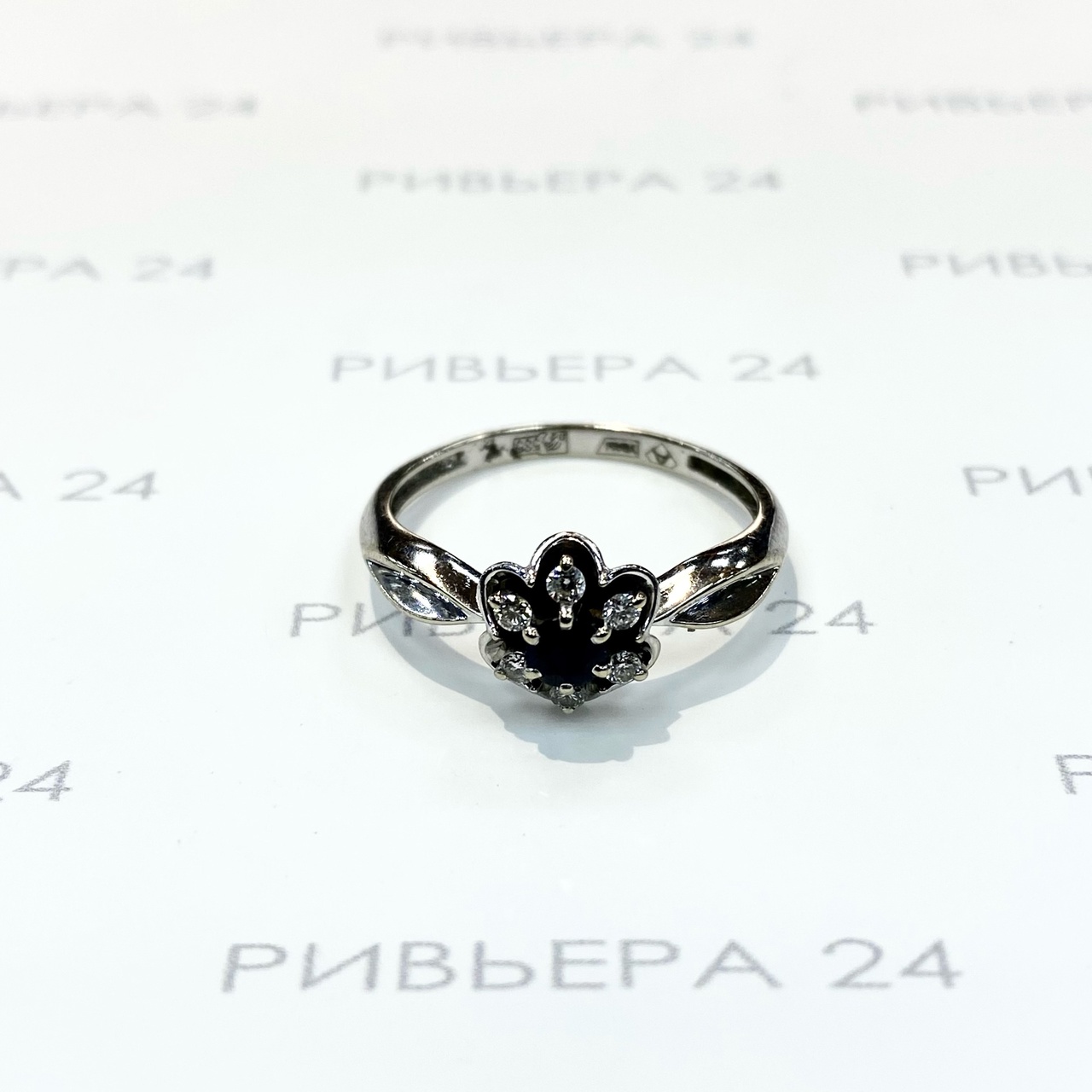 Золотое кольцо с сапфиром и бриллиантами 585 пробы 2,52 грамма Золото 585 пробы.