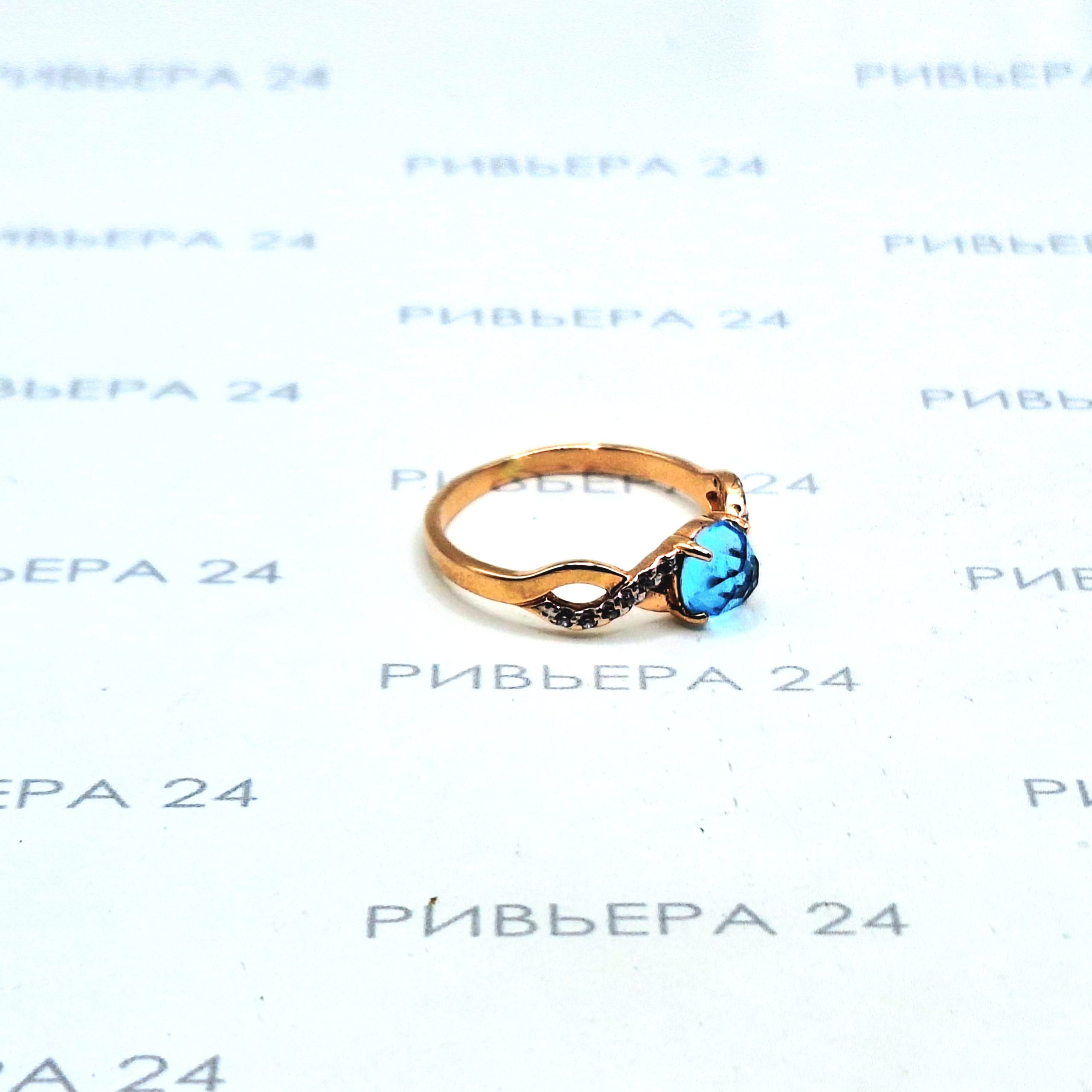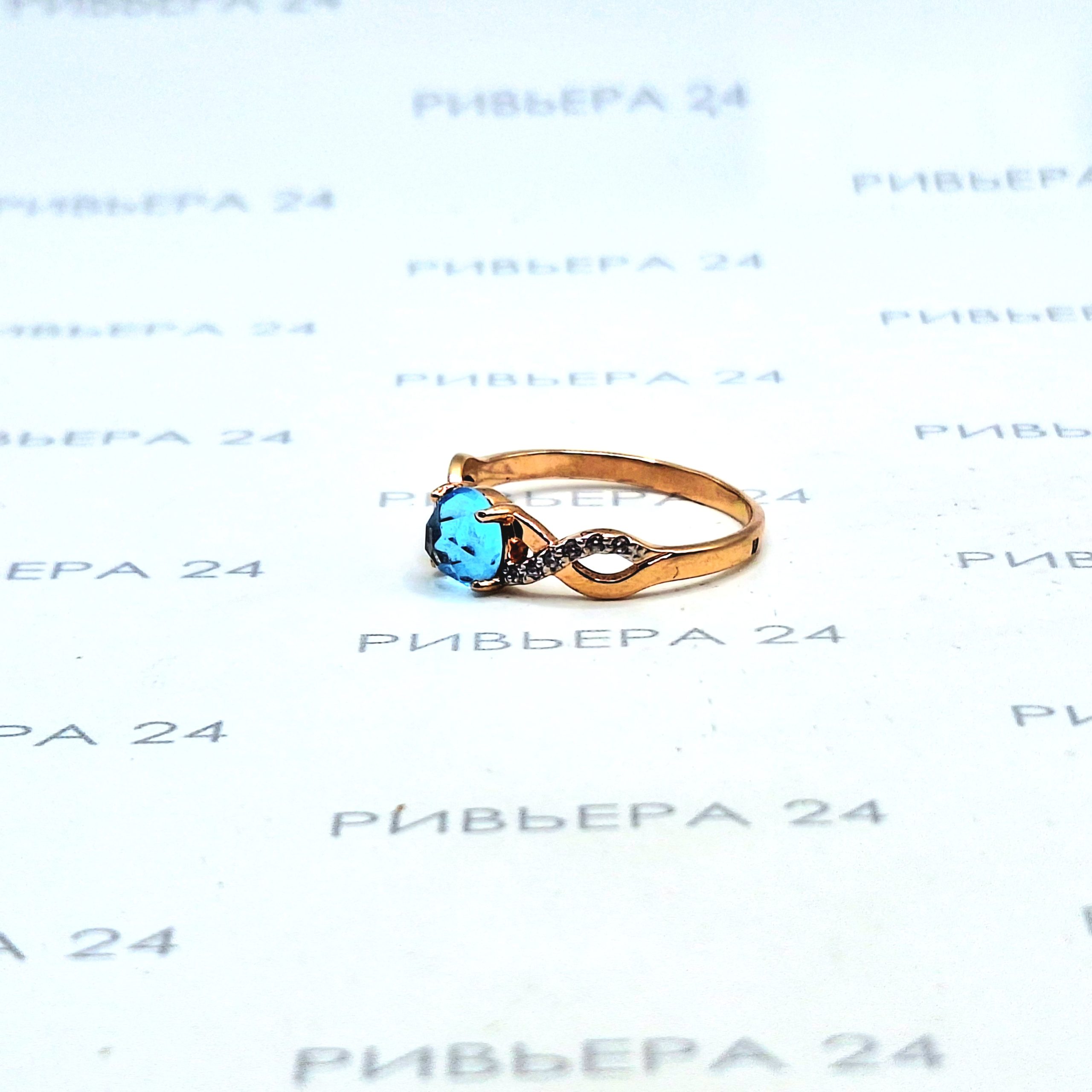 Золотое кольцо с топазом и фианитами 585 проба 2.13 грамм Золото 585 пробы.