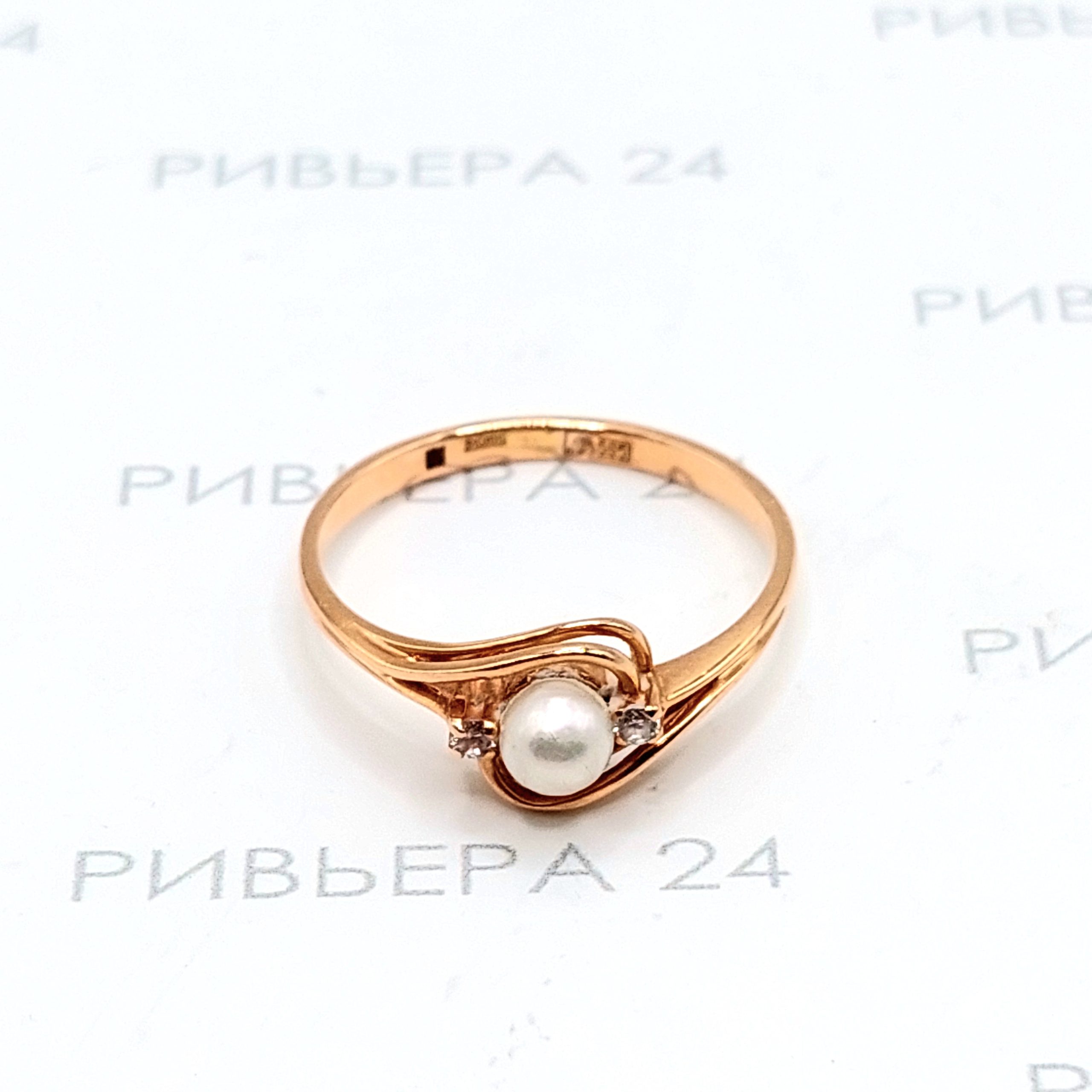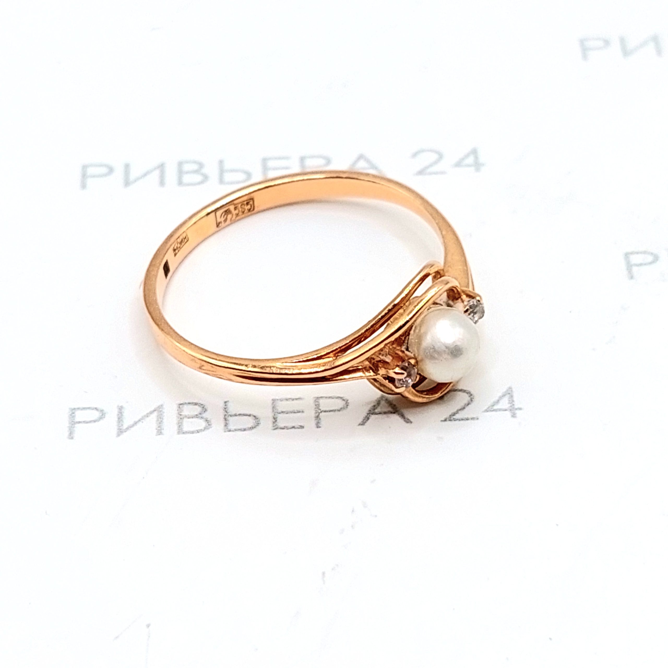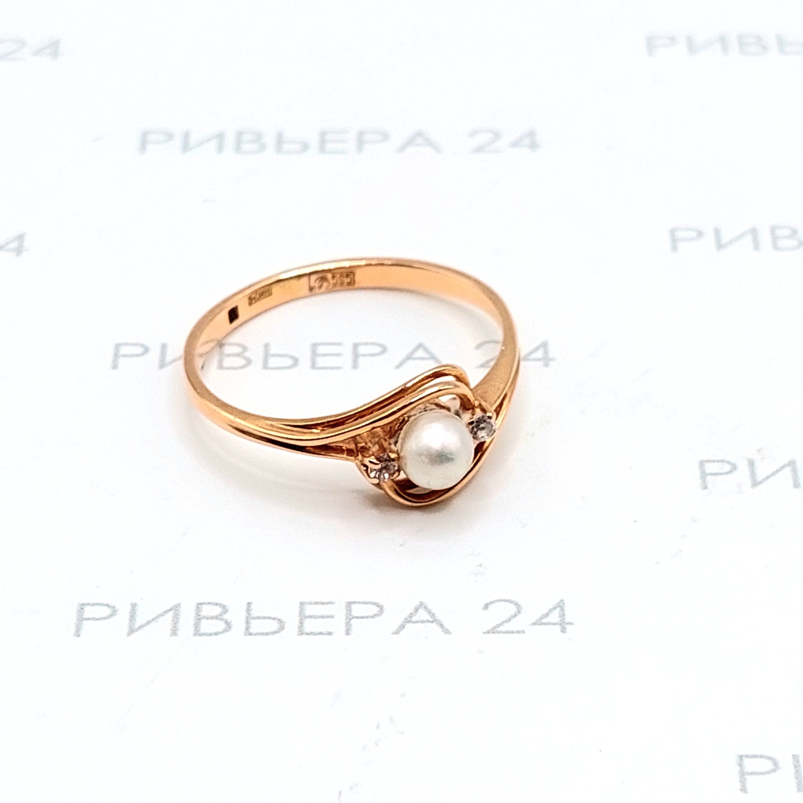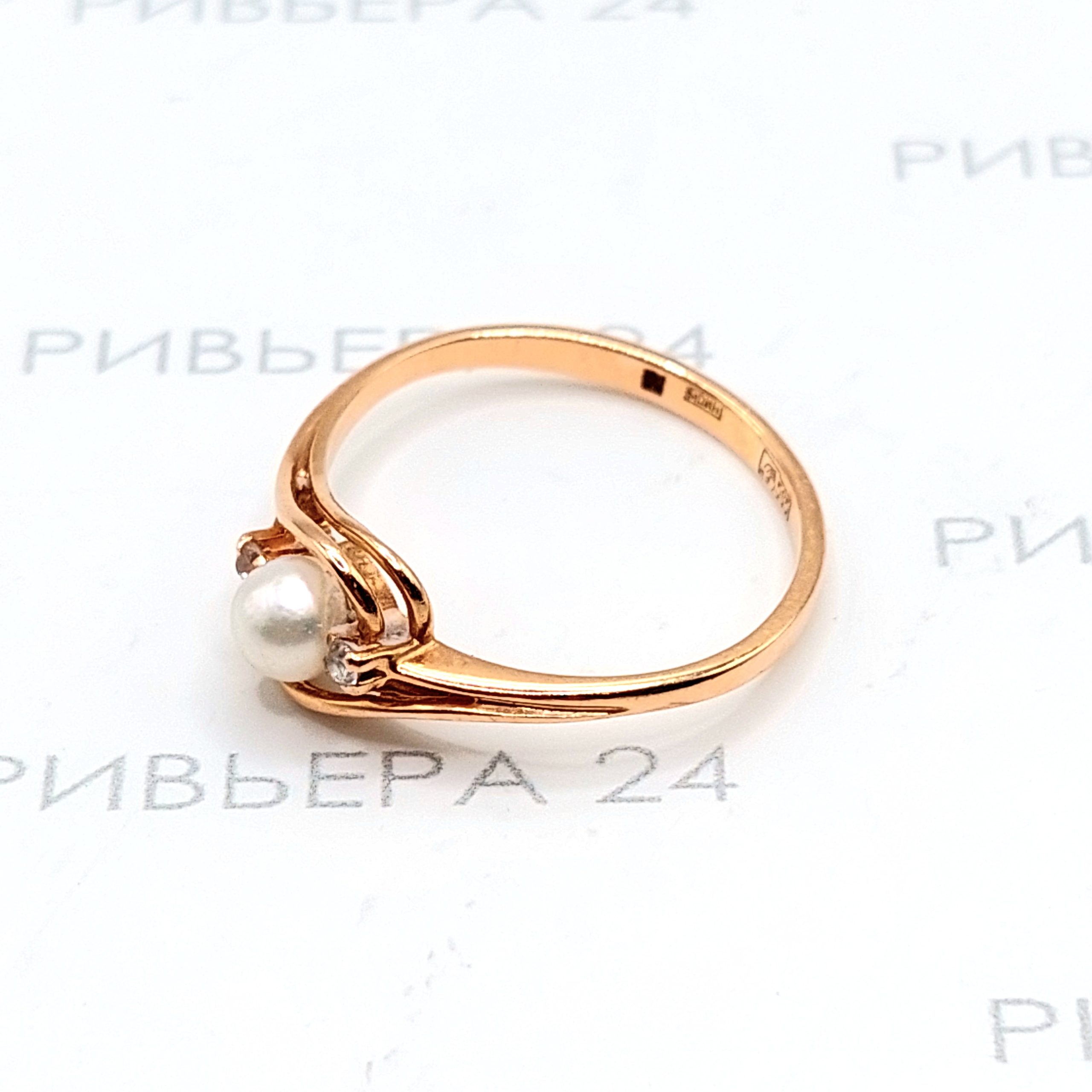 Золотое кольцо с жемчугом и фианитами 585 пробы 2.03 грамм Золото 585 пробы.