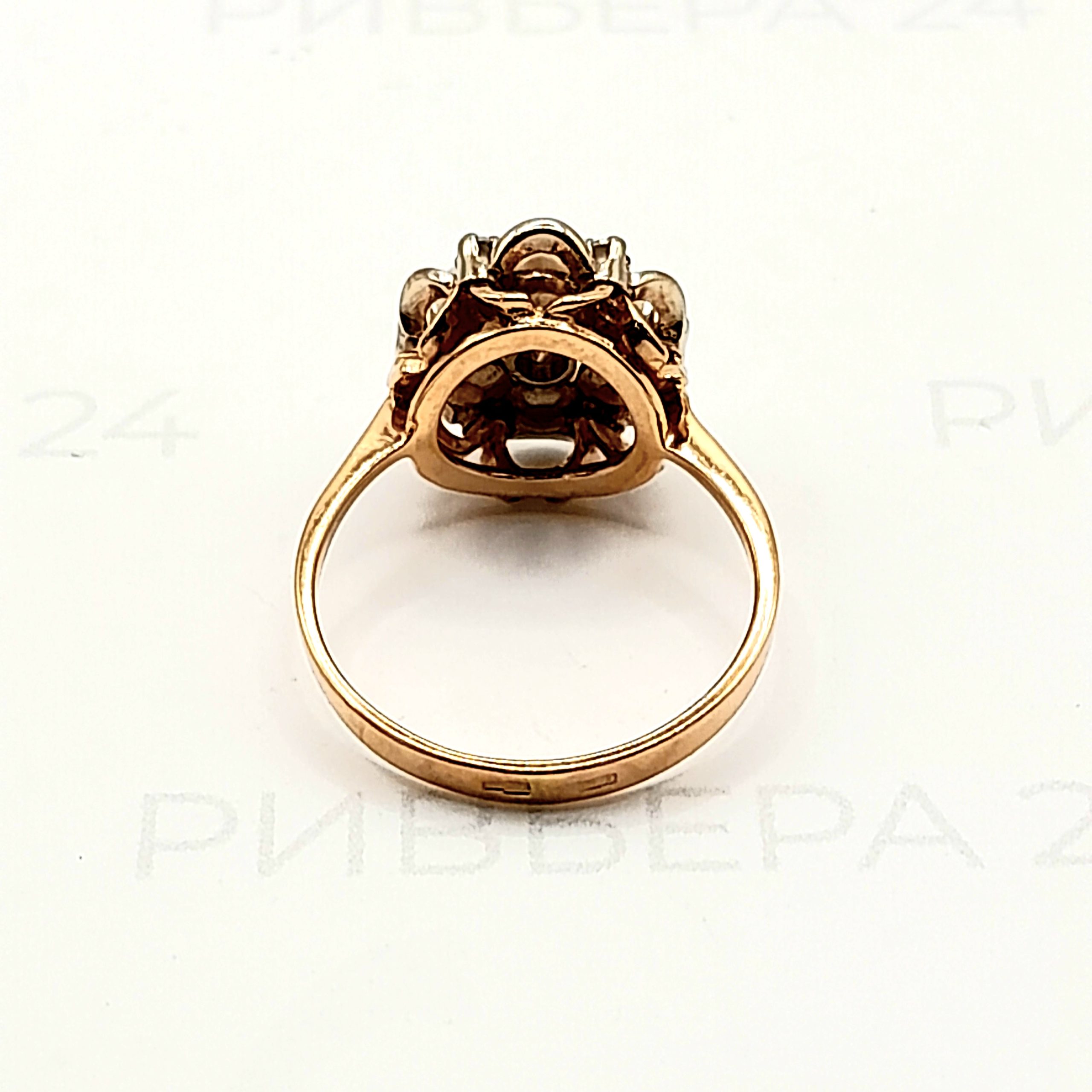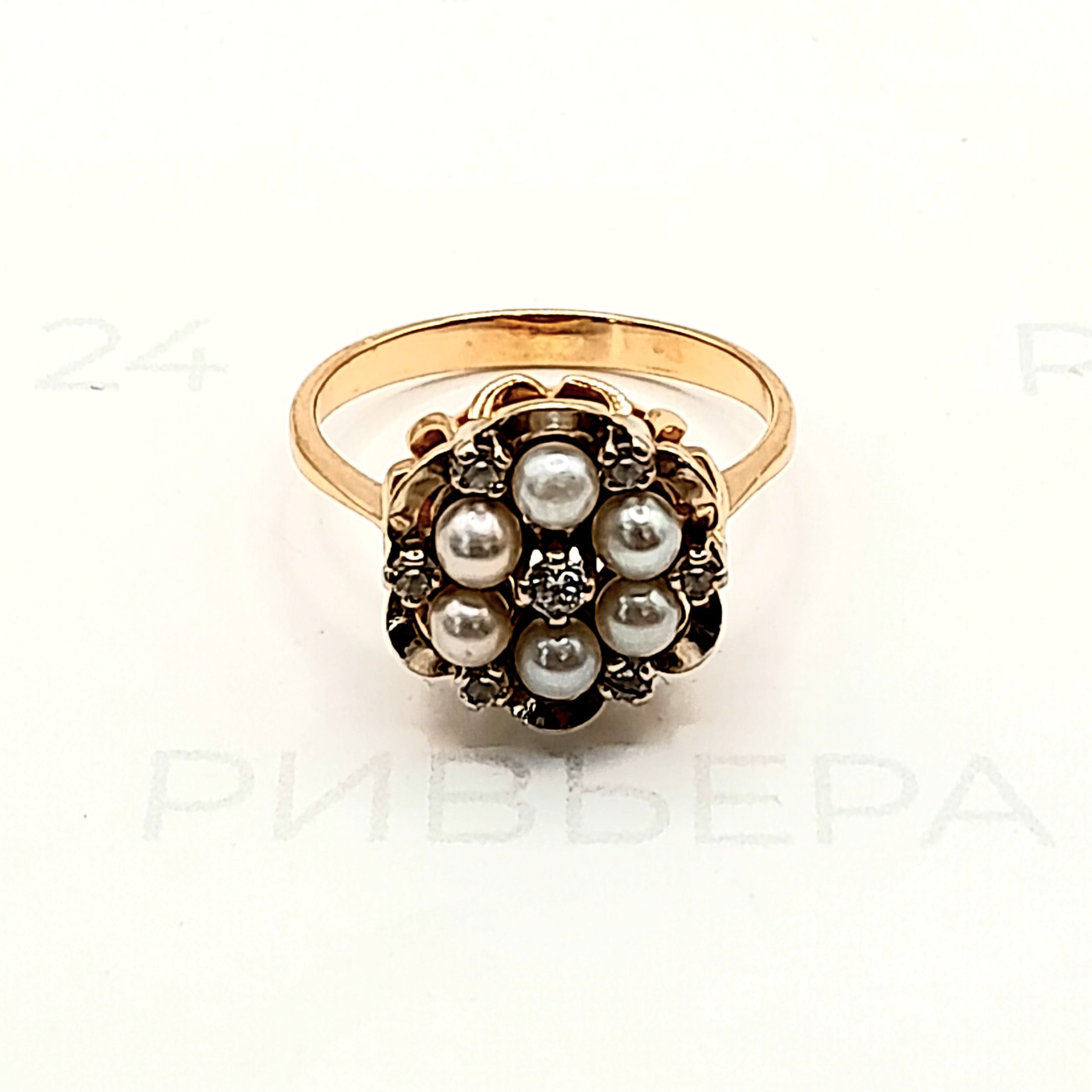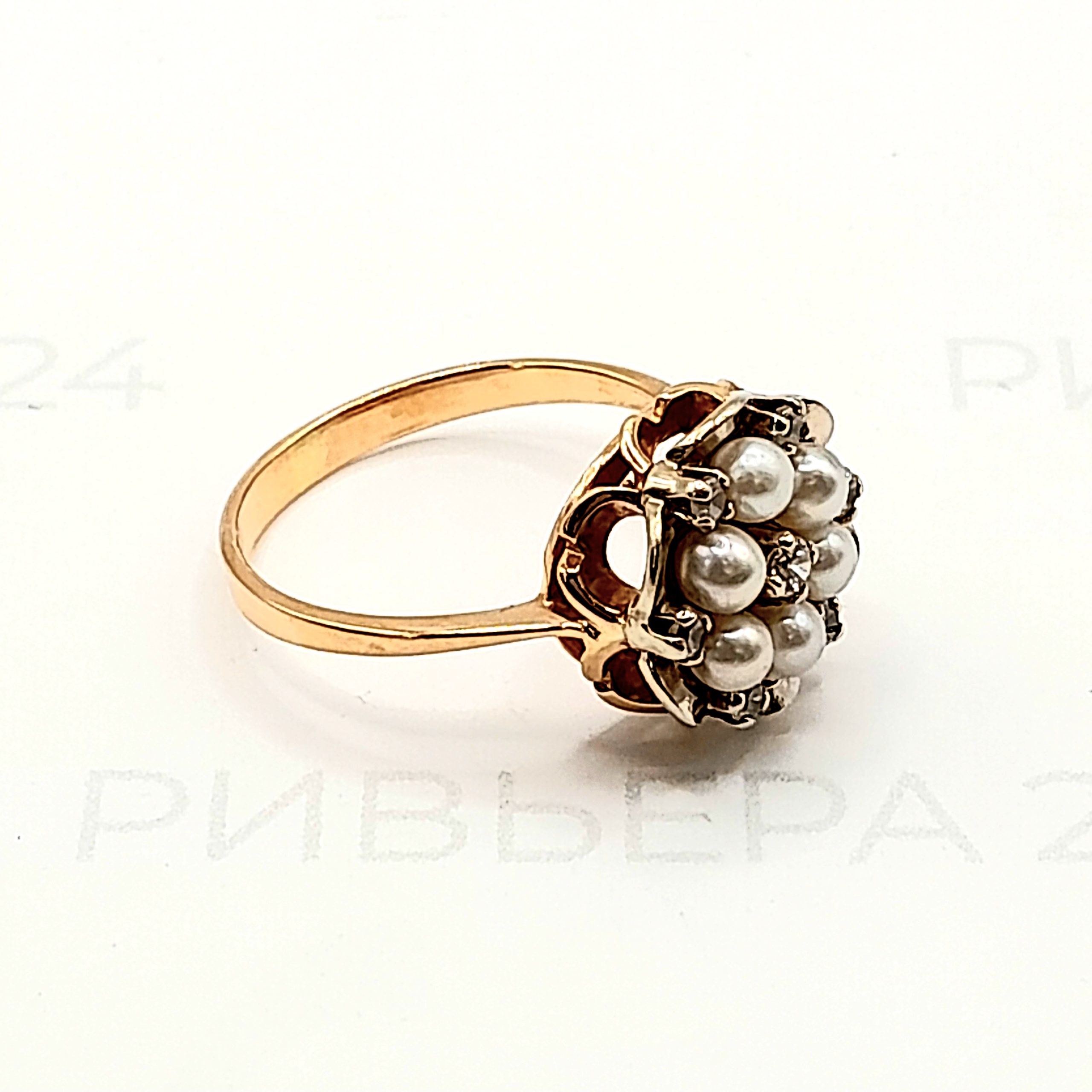 Золотое кольцо с жемчугом и фианитами 585 пробы 3.55 грамм р.17,5 Золото 585 пробы.