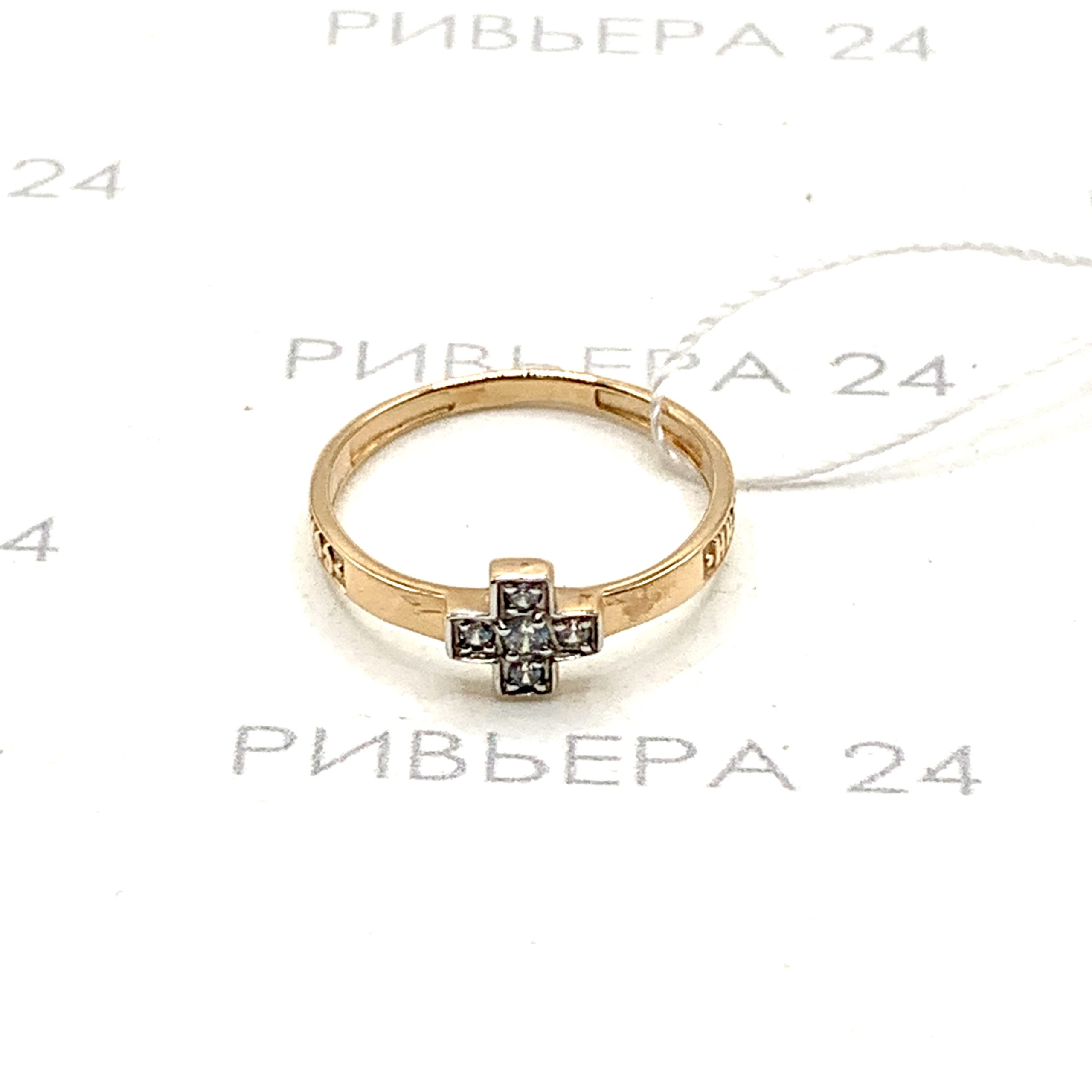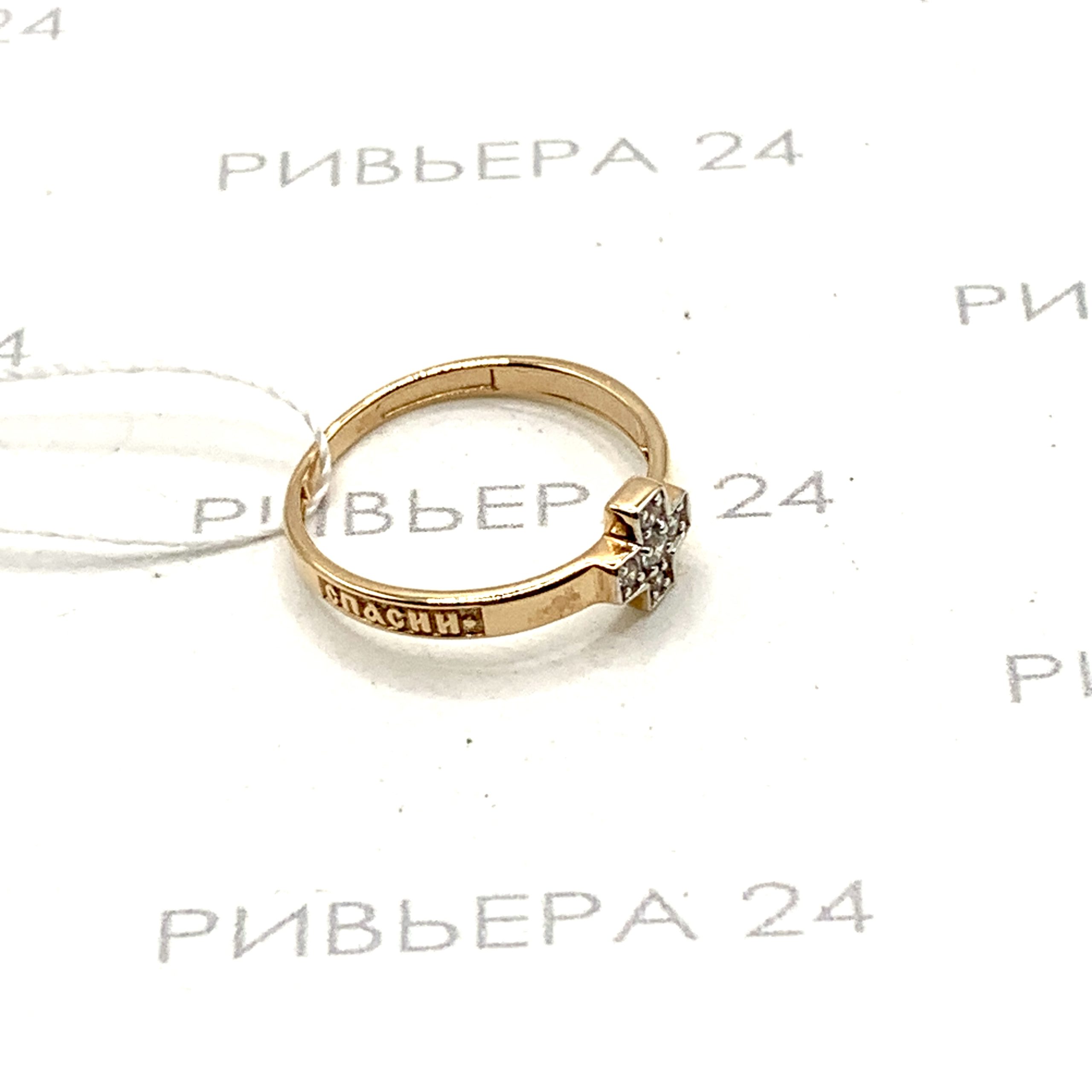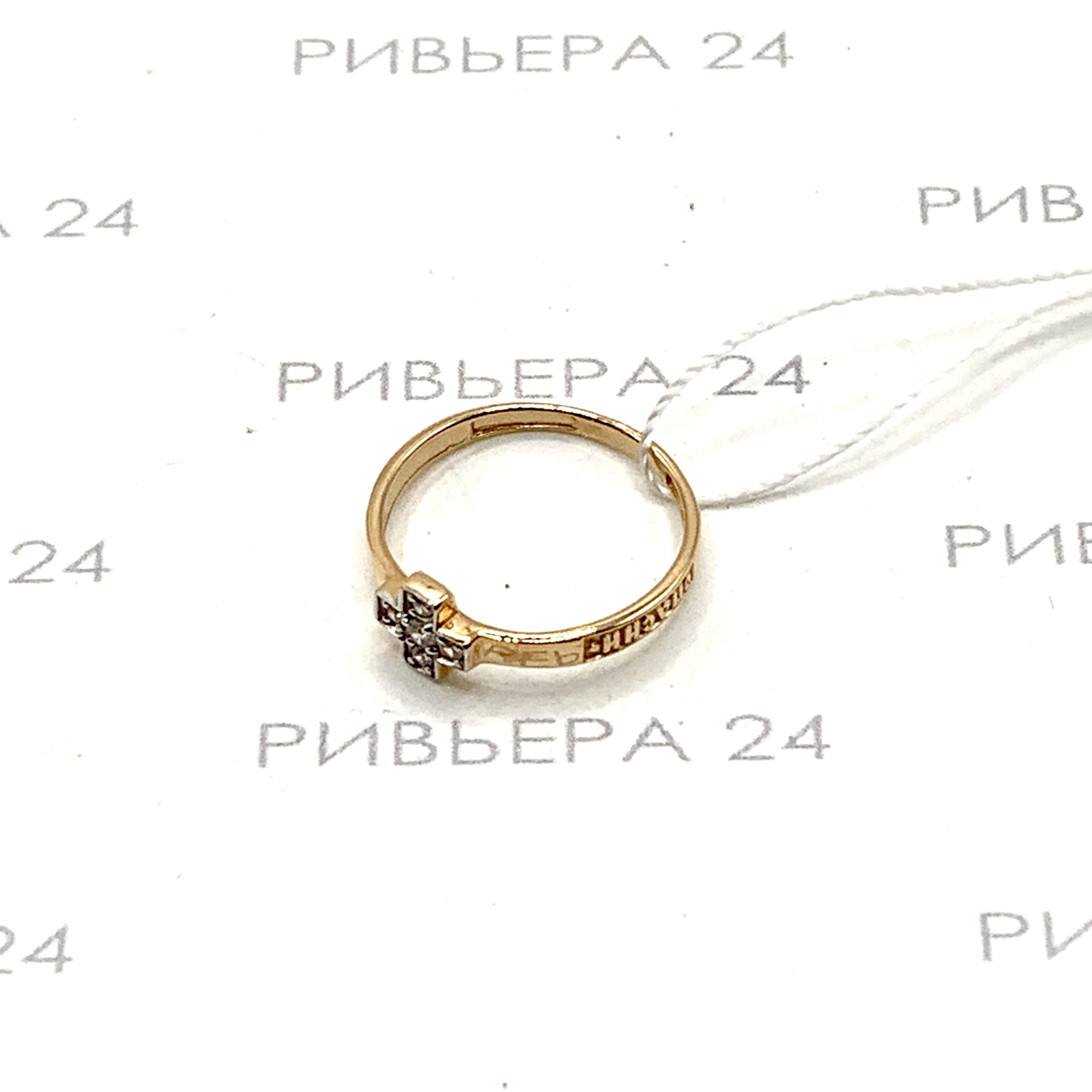 Золотое кольцо Спаси-сохрани с фианитами 585 пробы р.15 Золото 585 пробы.
