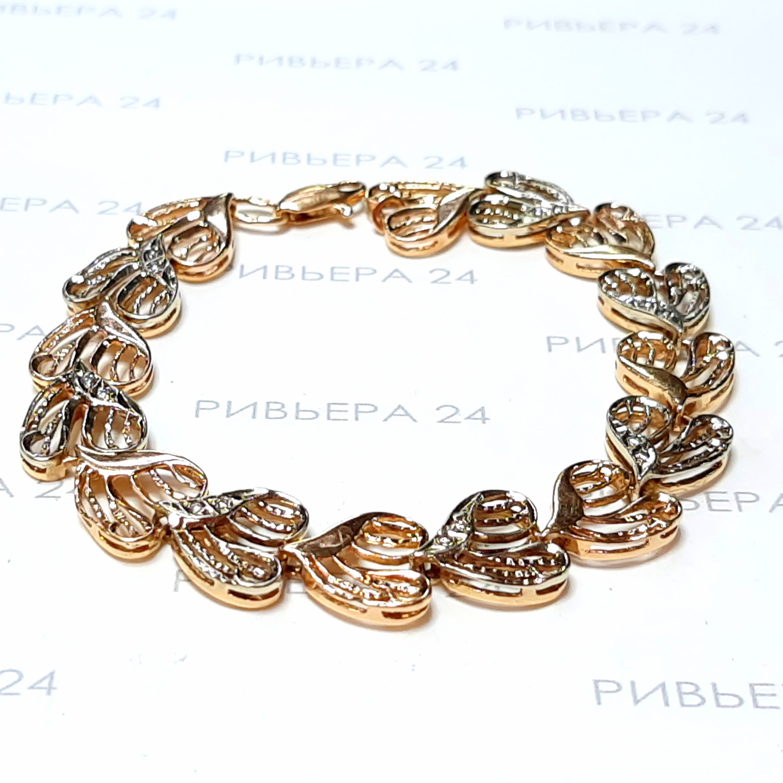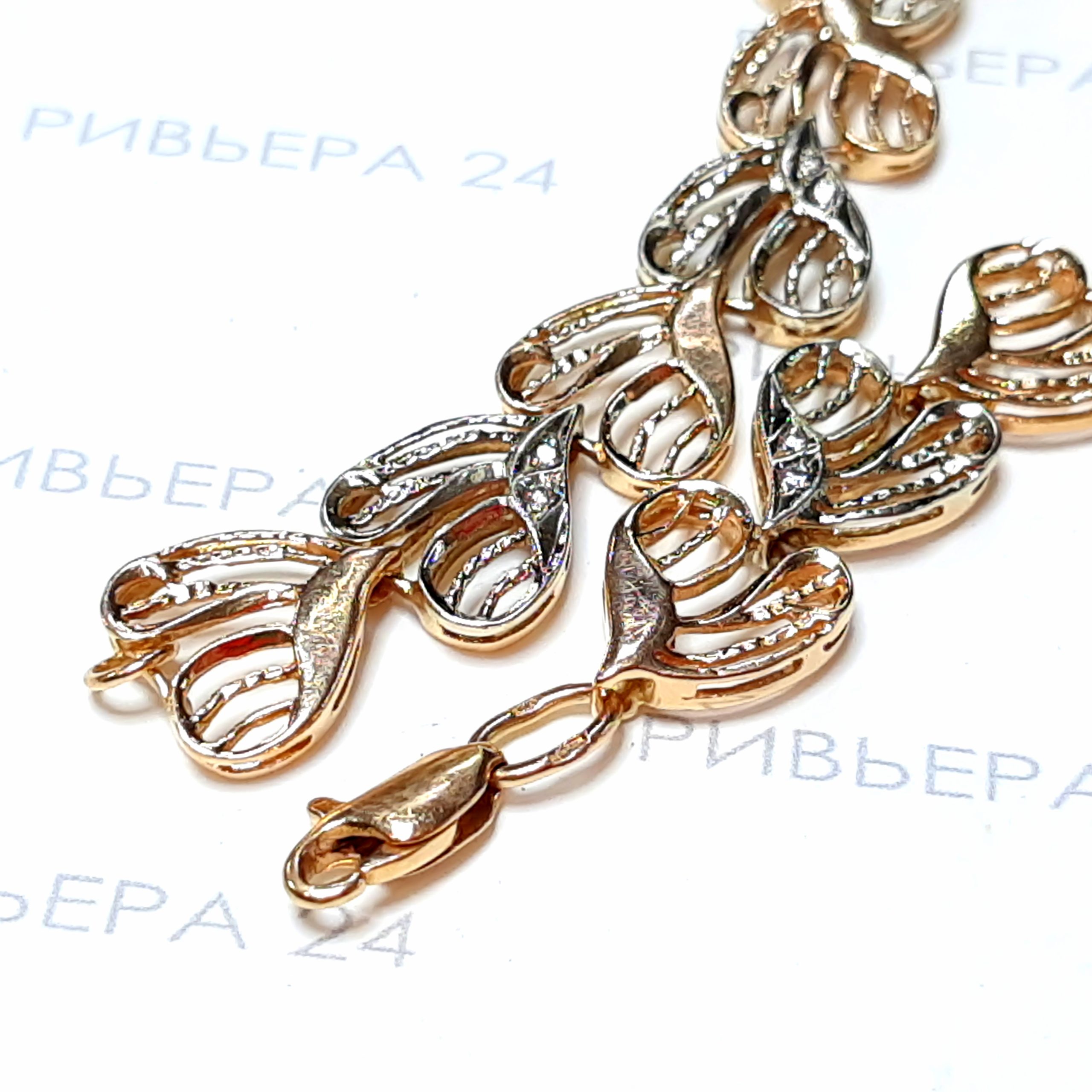 Золотой браслет с бриллиантами 585 пробы 16.27 грамм Размер 19. Золото 585 пробы.