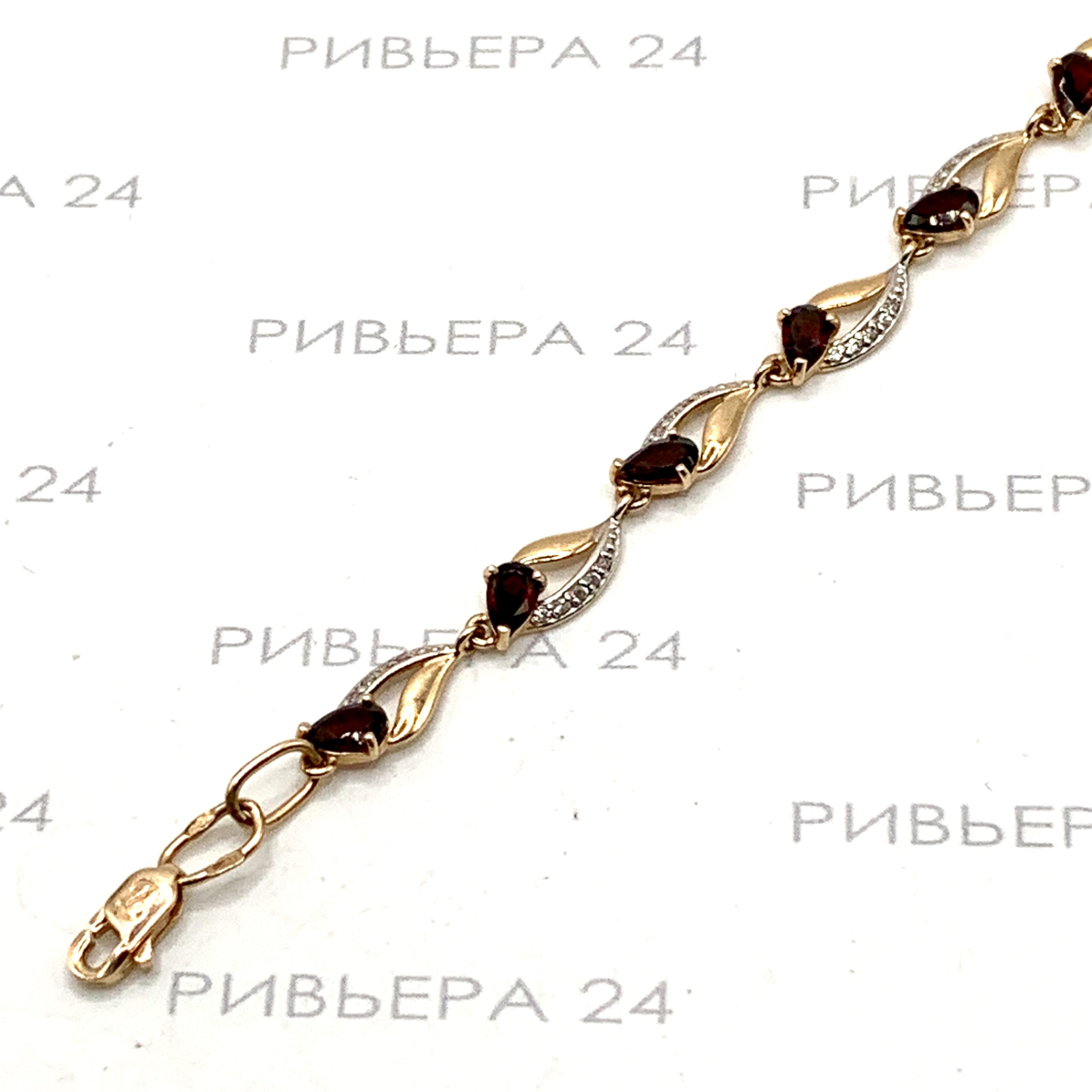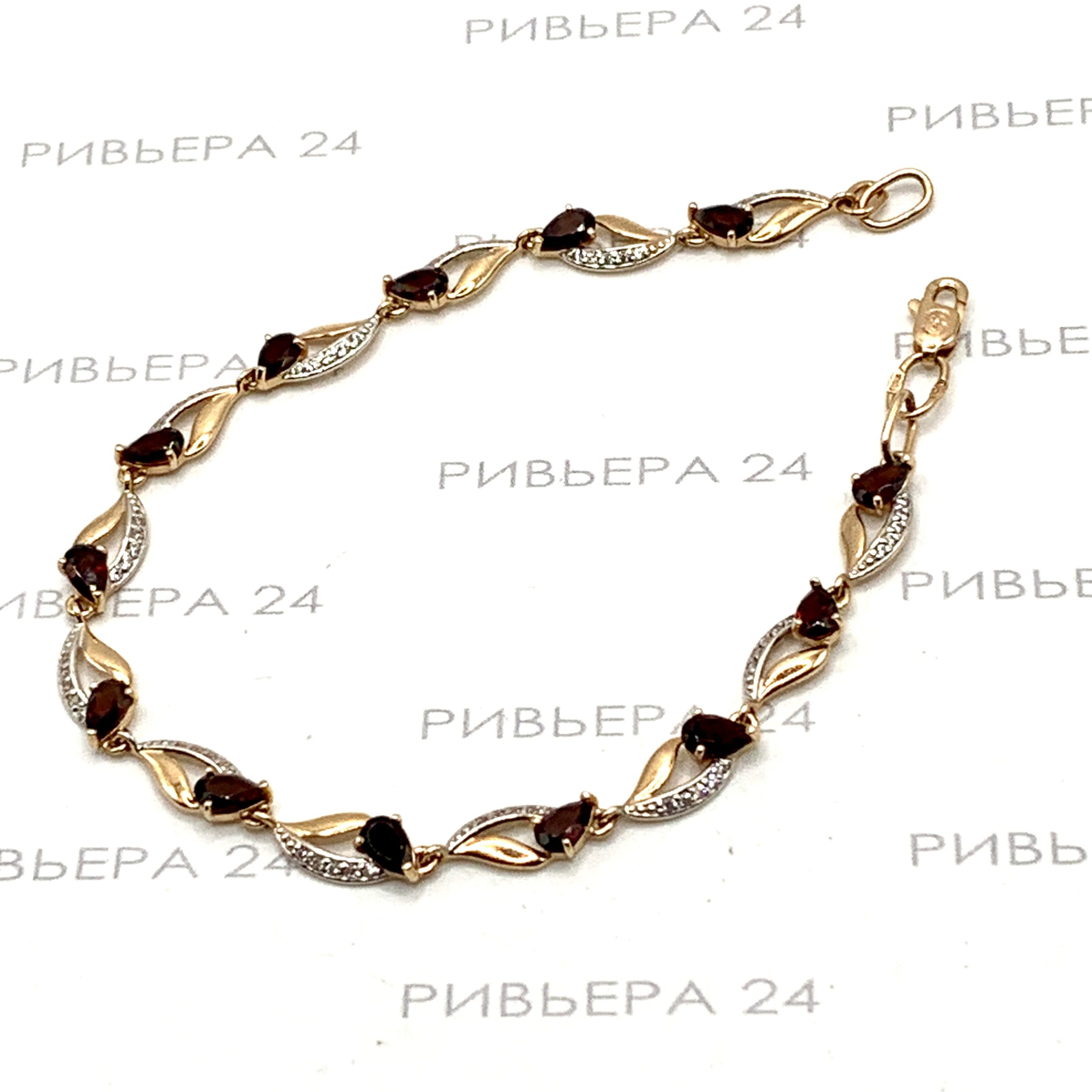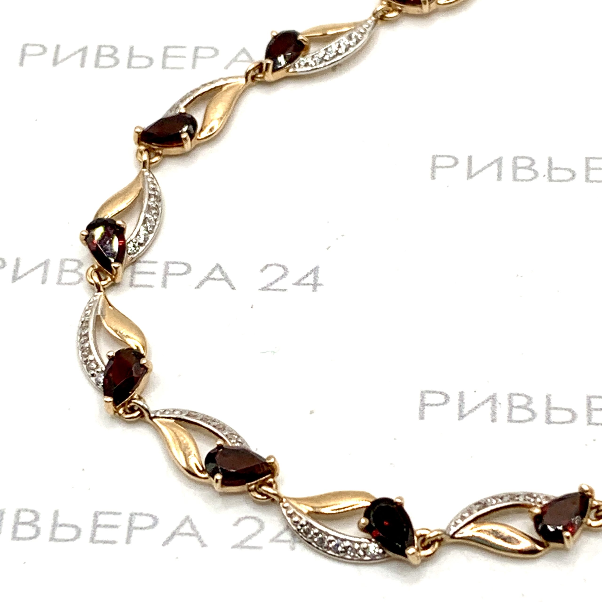 Золотой браслет с гранатами 585 пробы 4.82 грамма 18,5 см Размер 18,5. Золото 585 пробы.