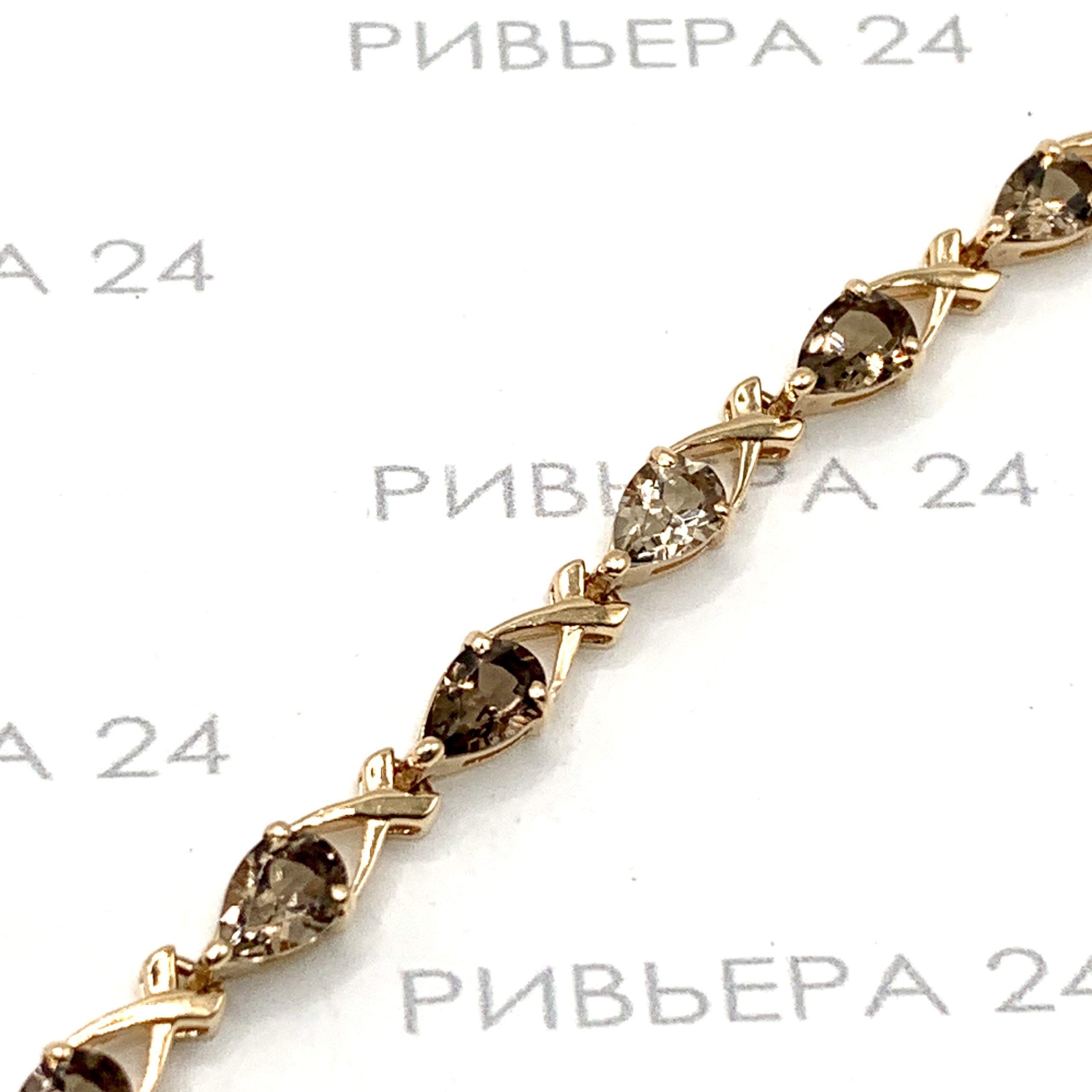 Золотой браслет с раухтопазом 585 пробы 8.23 грамма 19 см Размер 19. Золото 585 пробы.