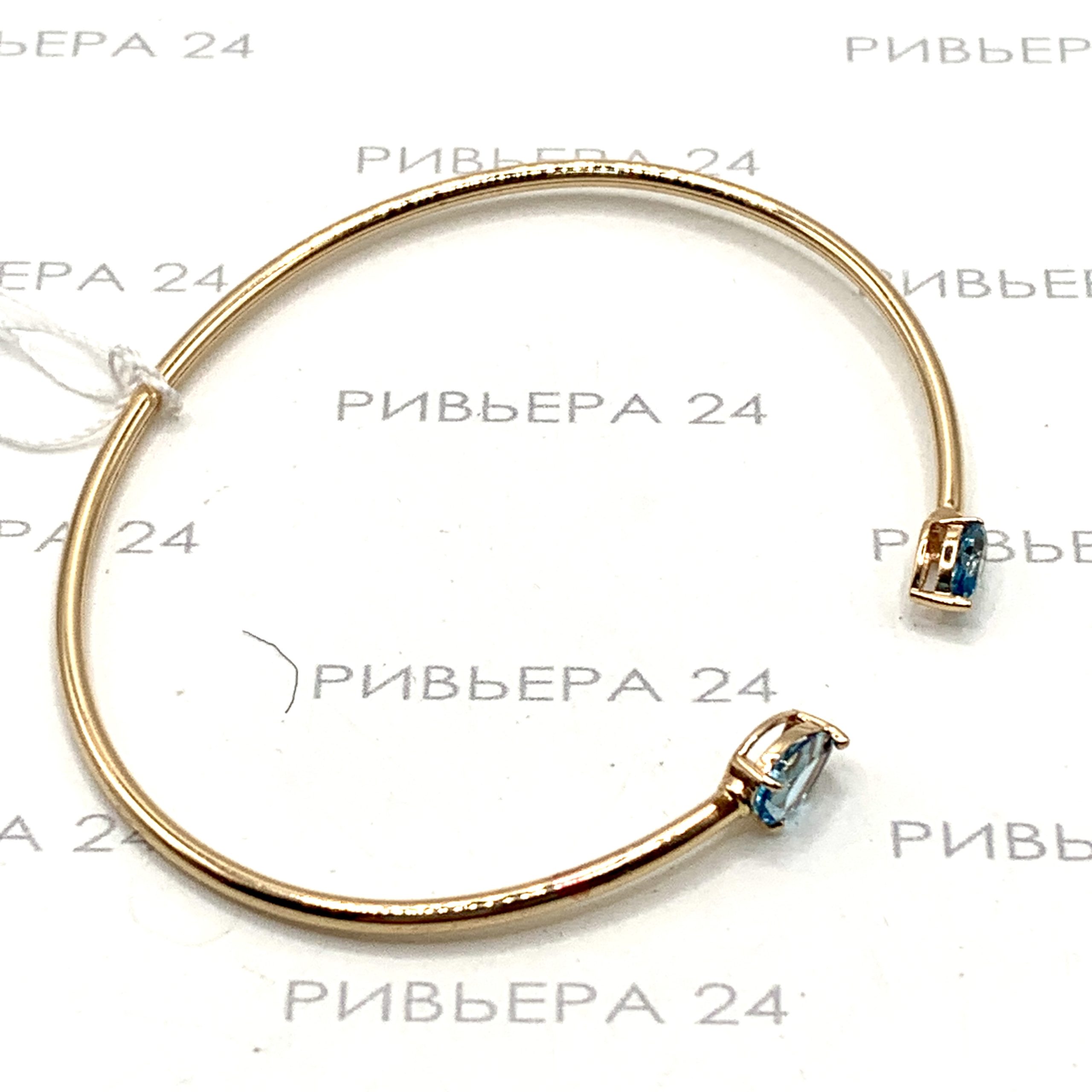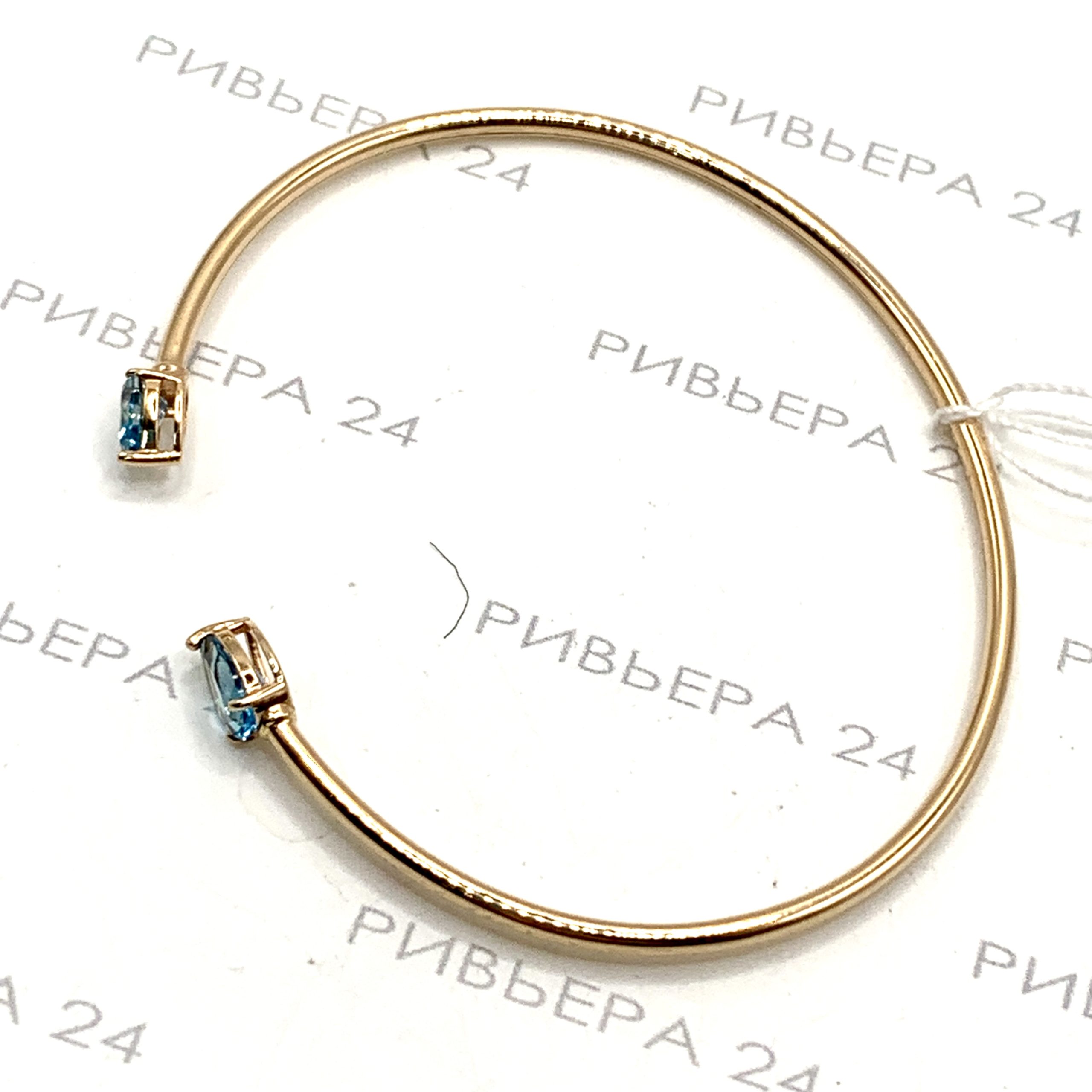 Золотой жесткий браслет с топазами 585 пробы 3.19 грамма р.17,5 Размер 17,5. Золото 585 пробы.