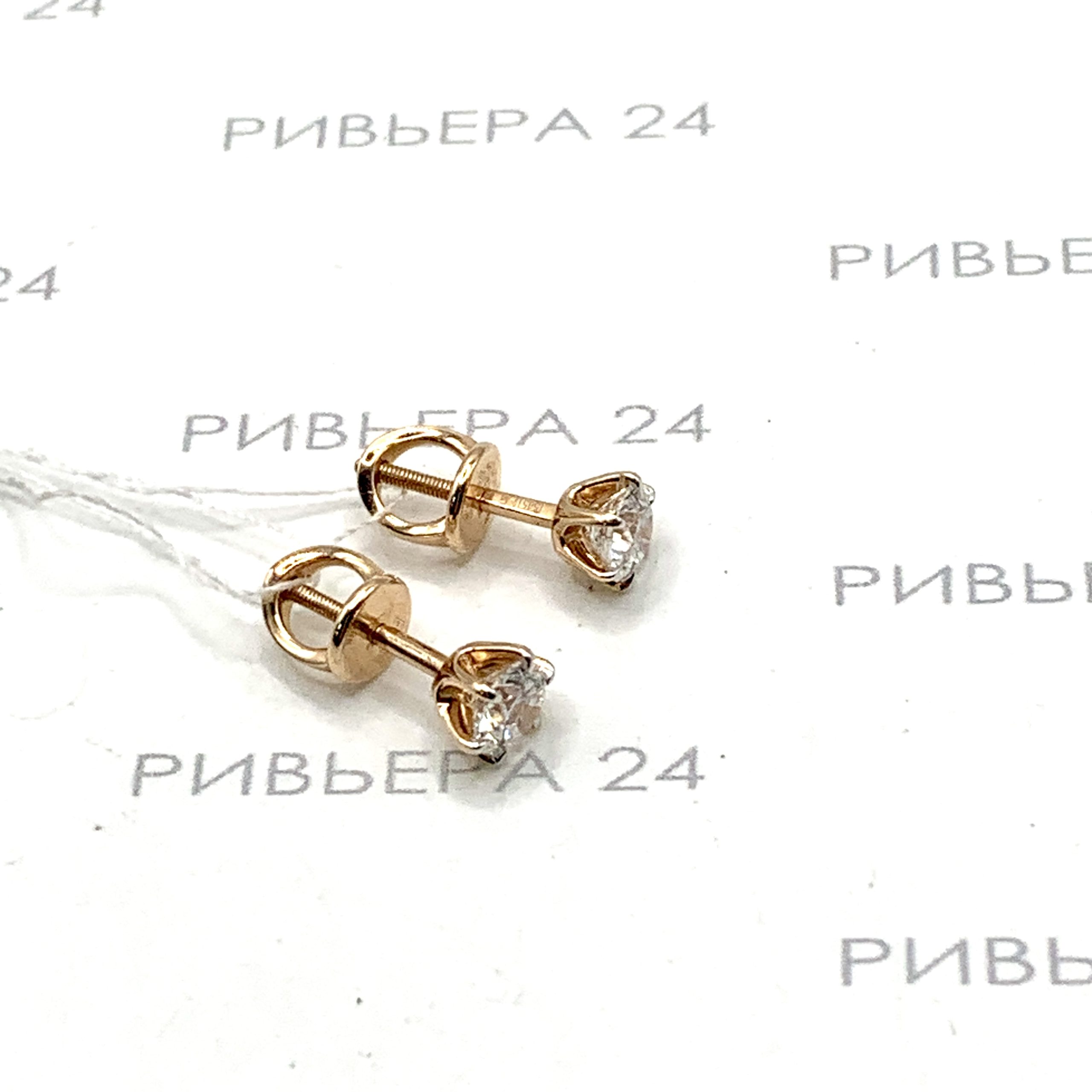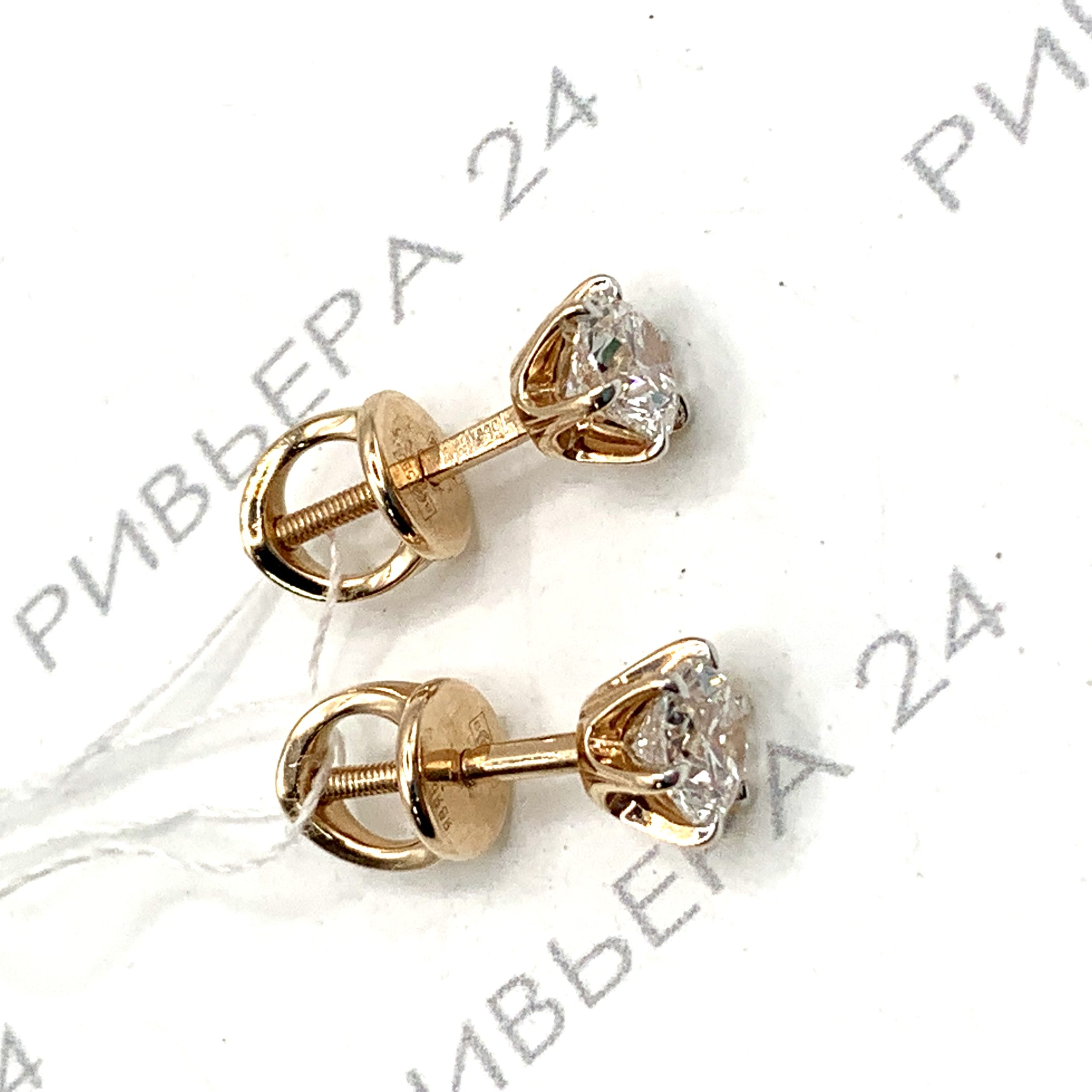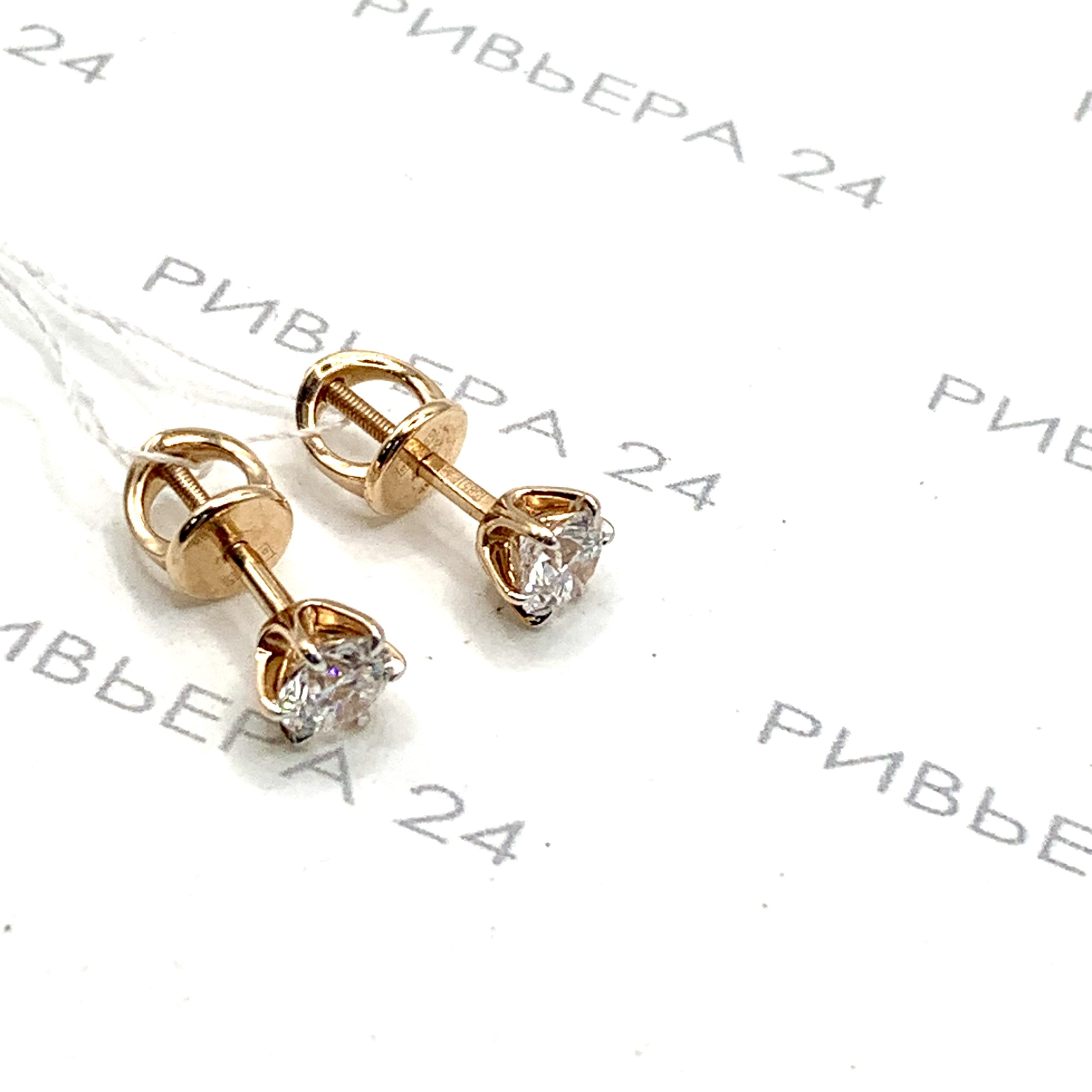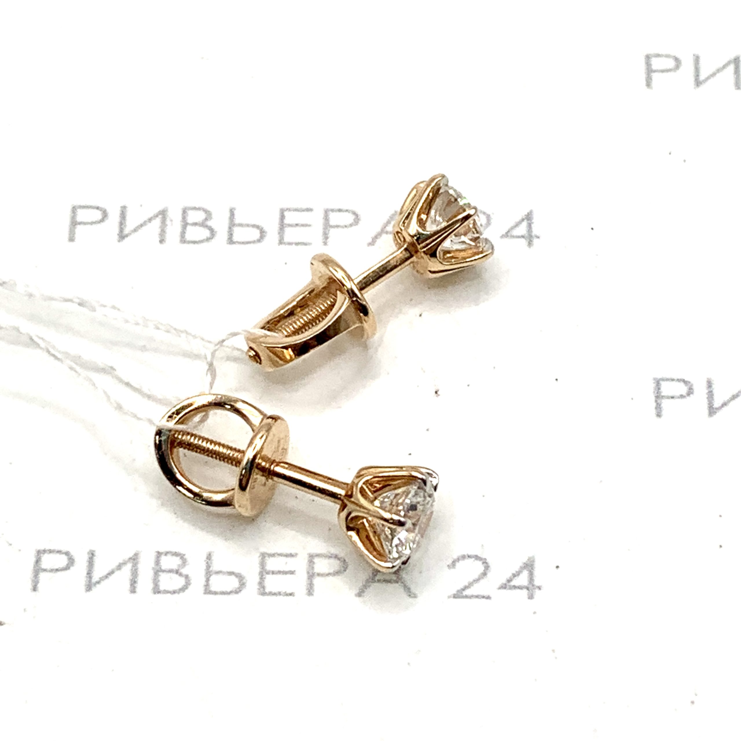 Золотые серьги гвоздики с бриллиантами выращенными 585 пробы 2.24 грамма Золото 585 пробы.
