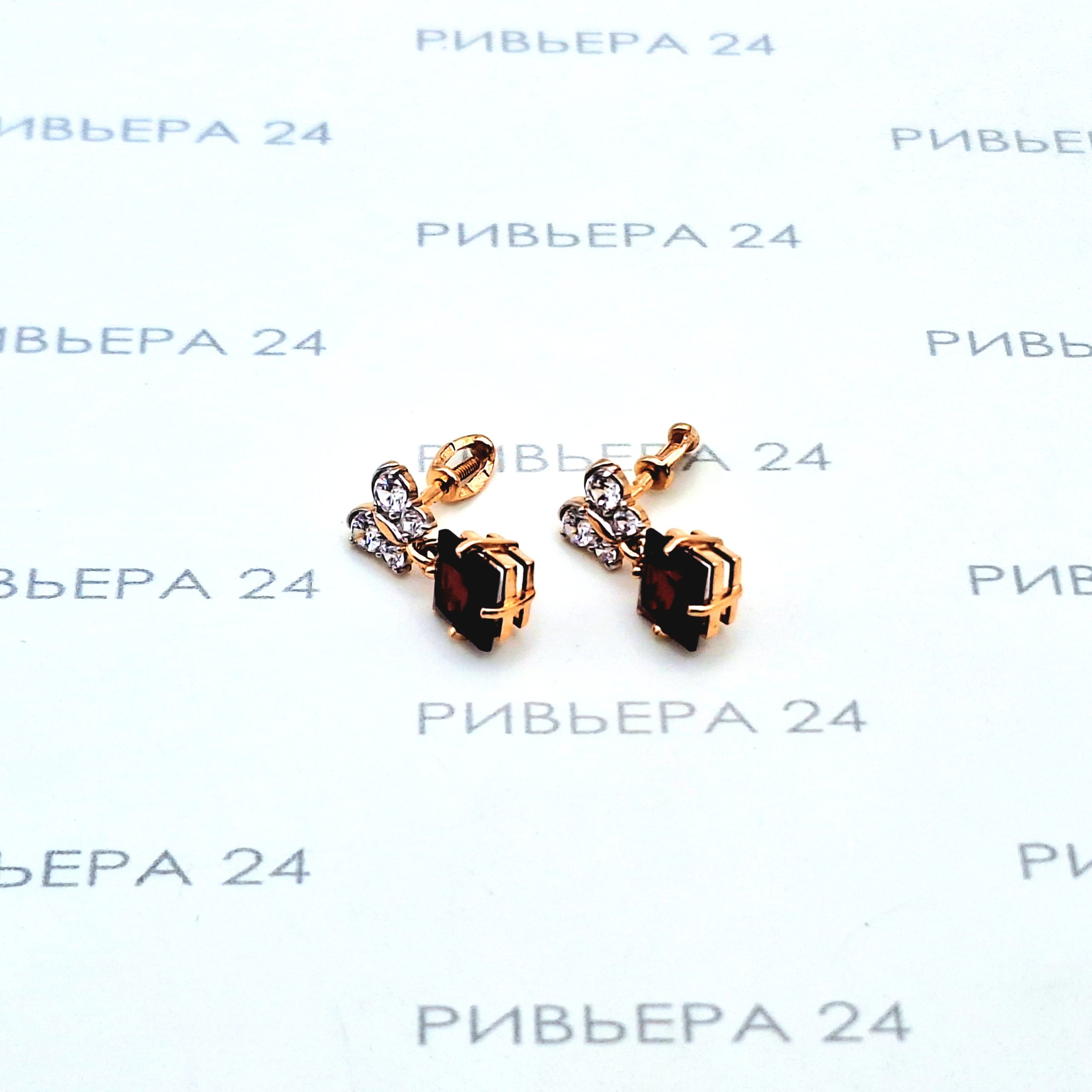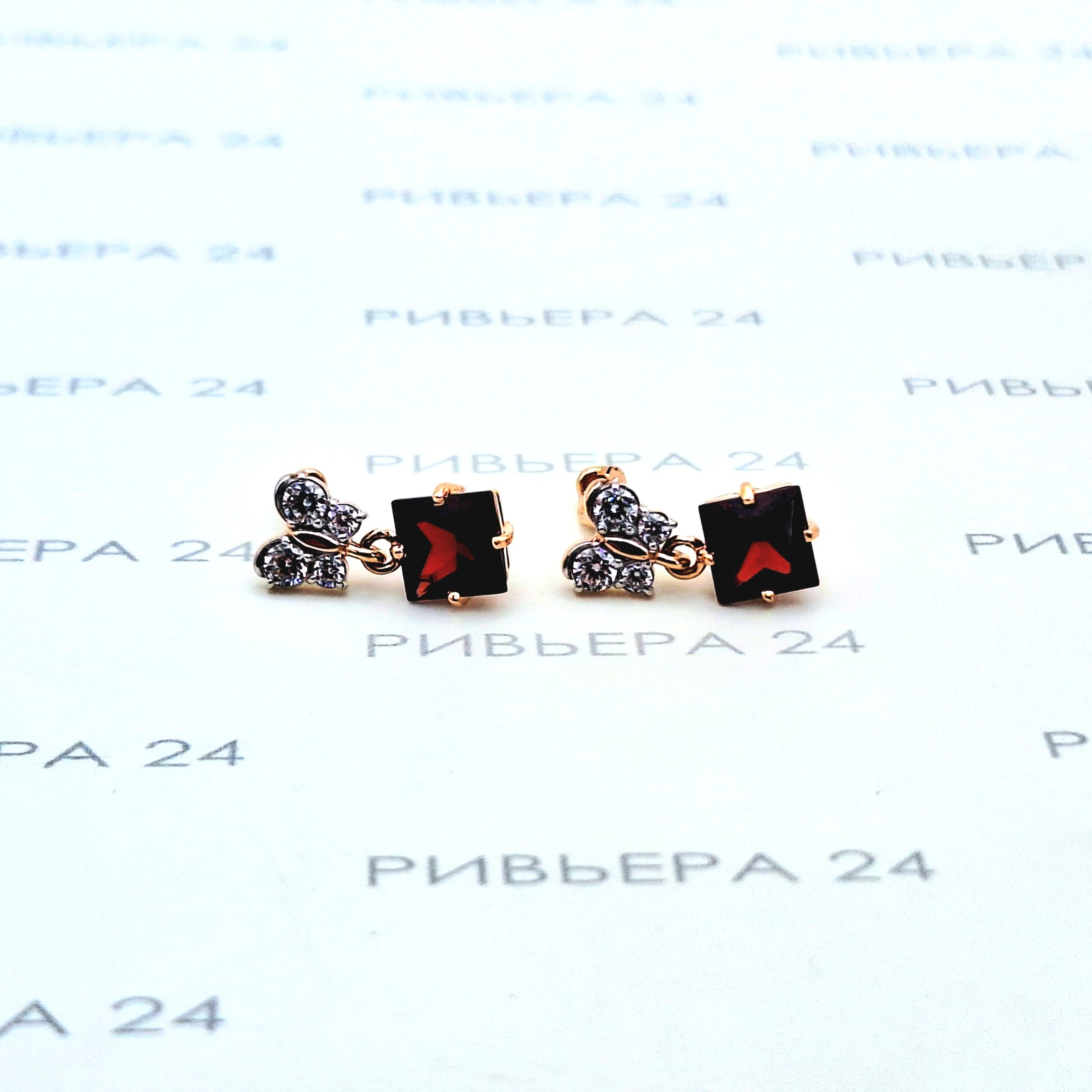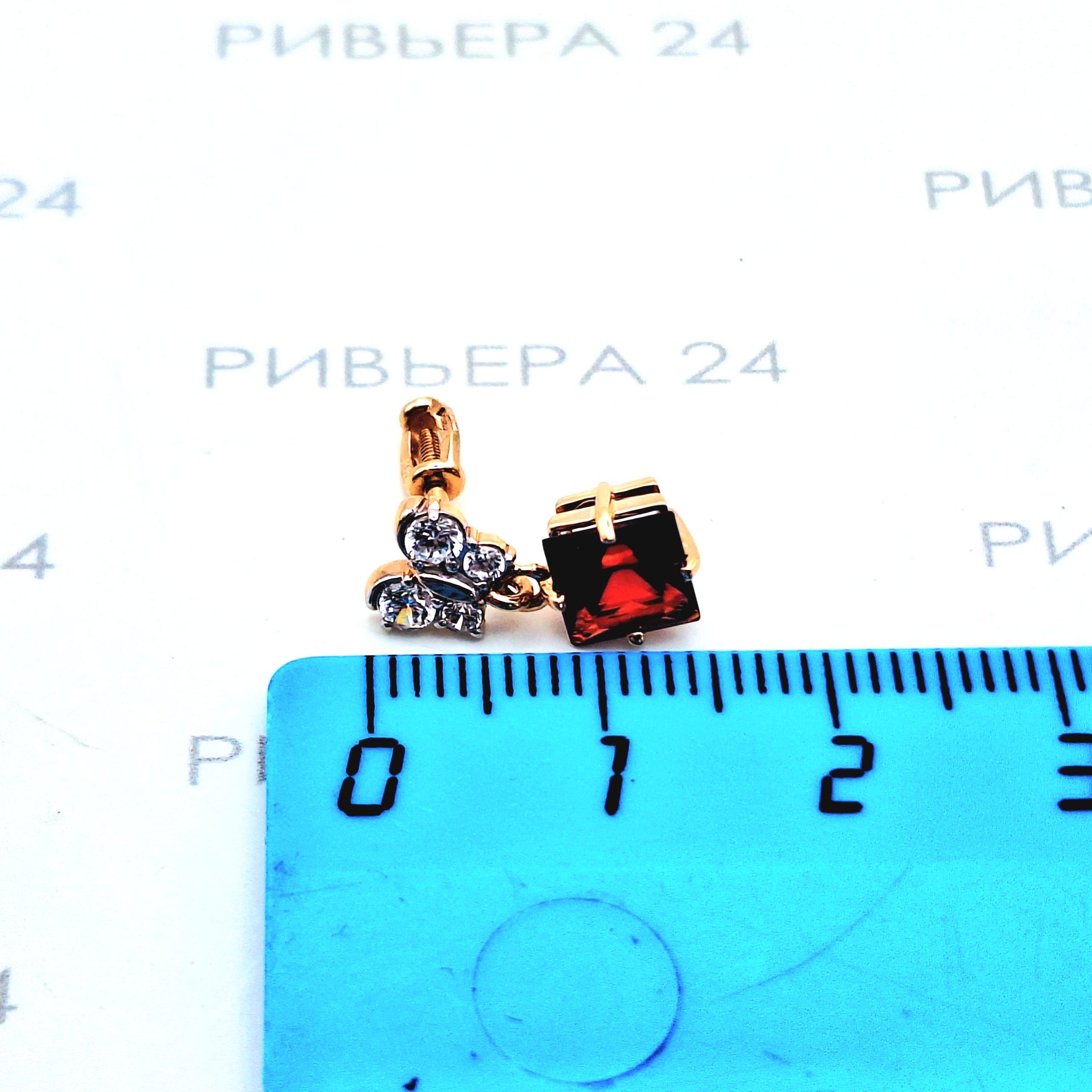 Золотые серьги пусеты с корундом и фианитами 585 проба 2.42 грамм Золото 585 пробы.