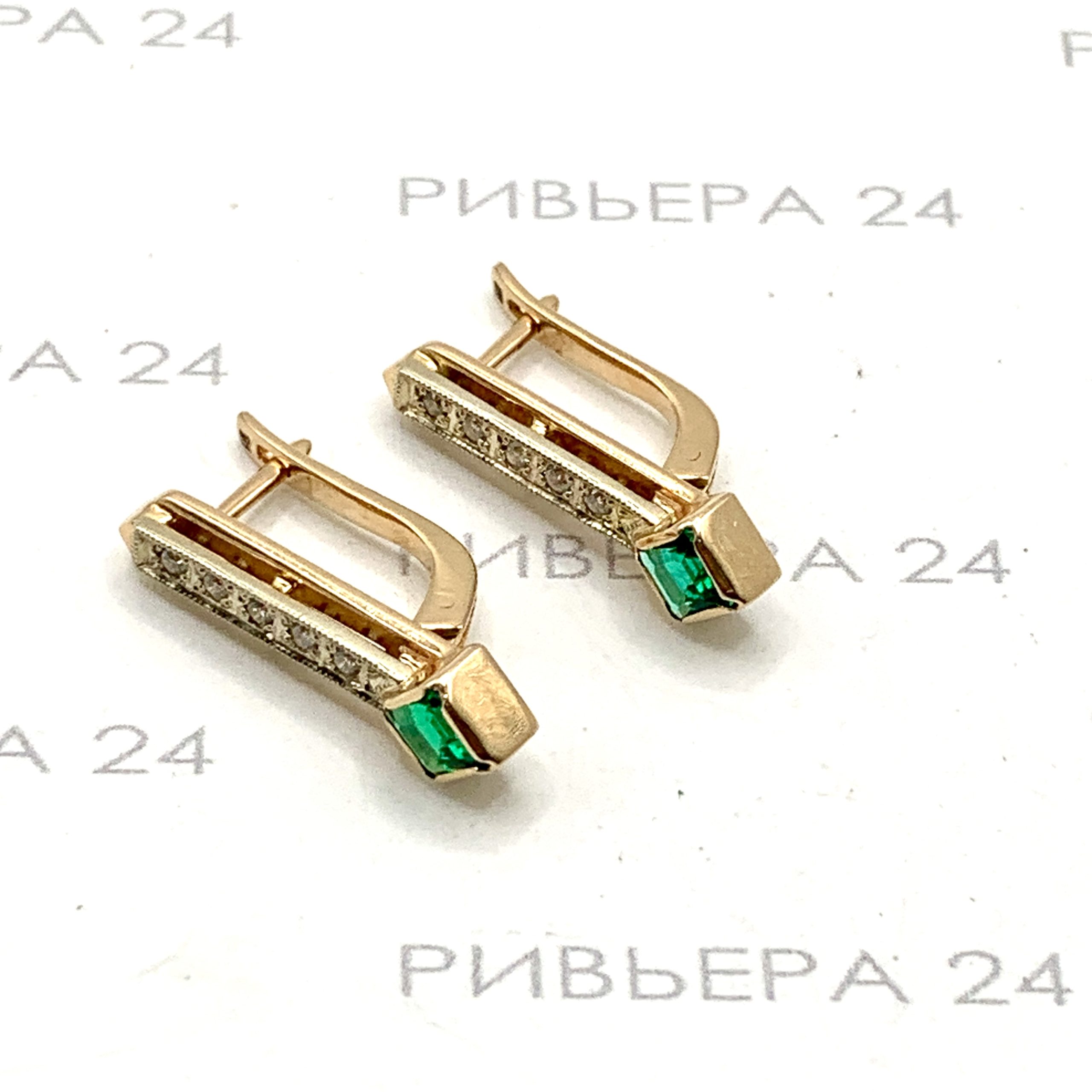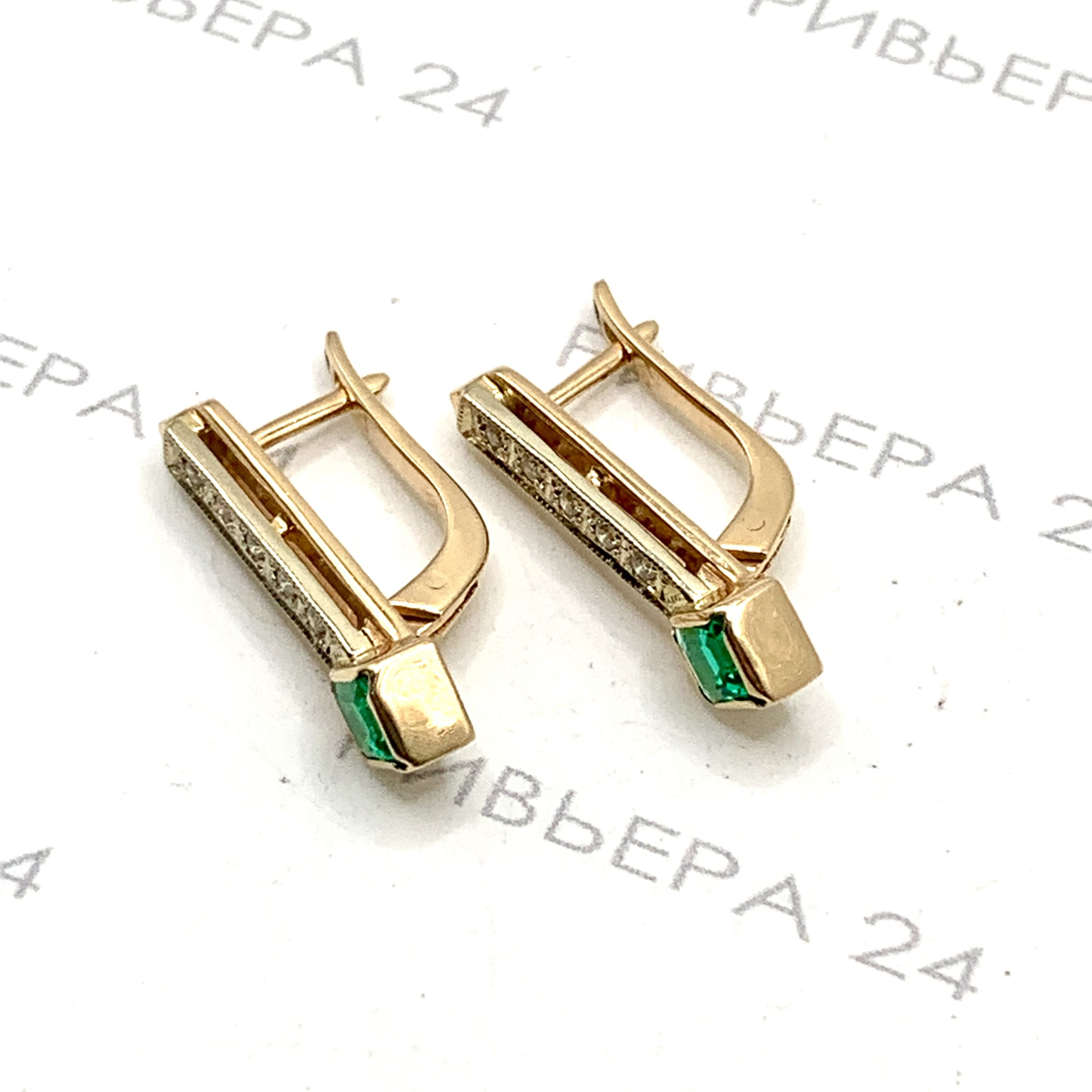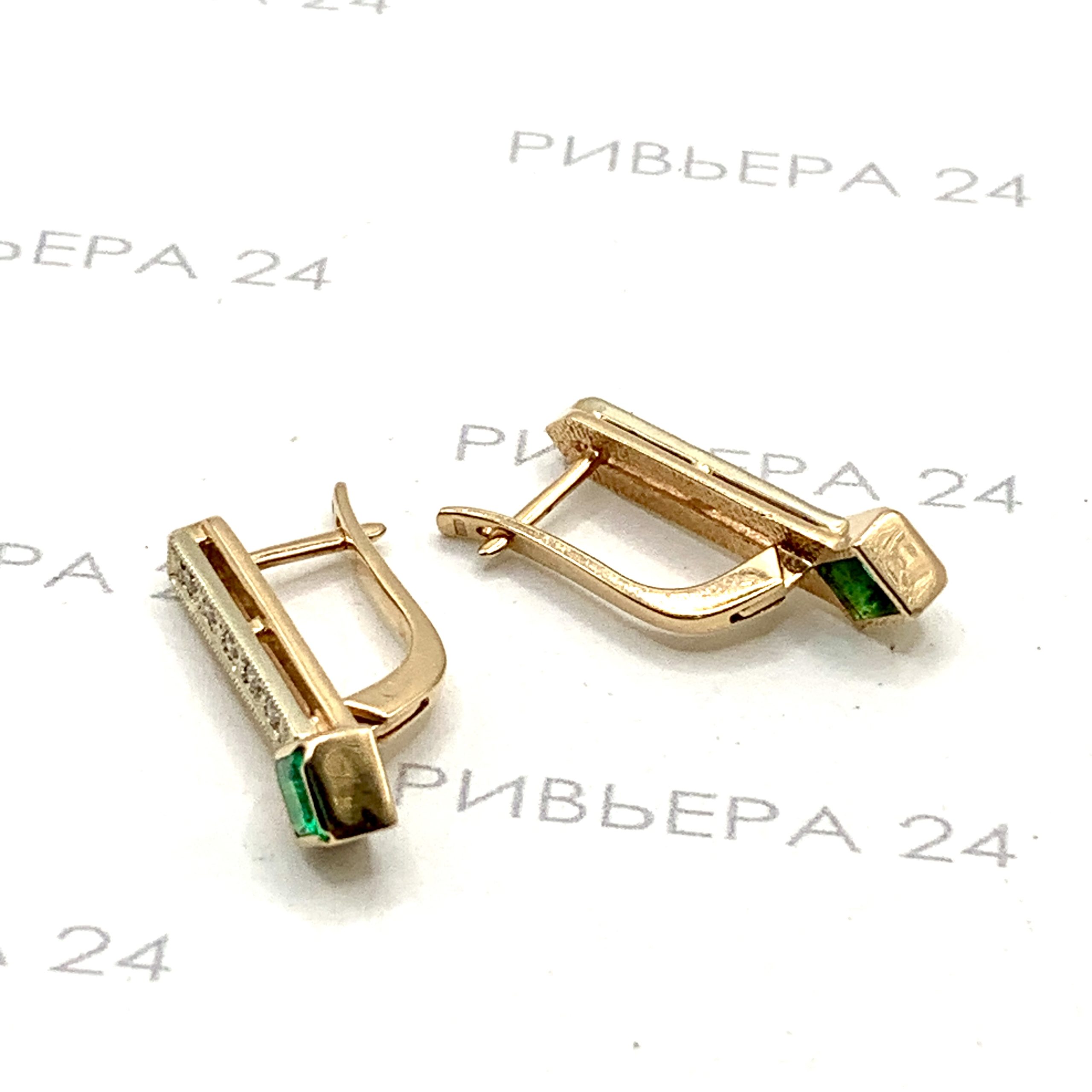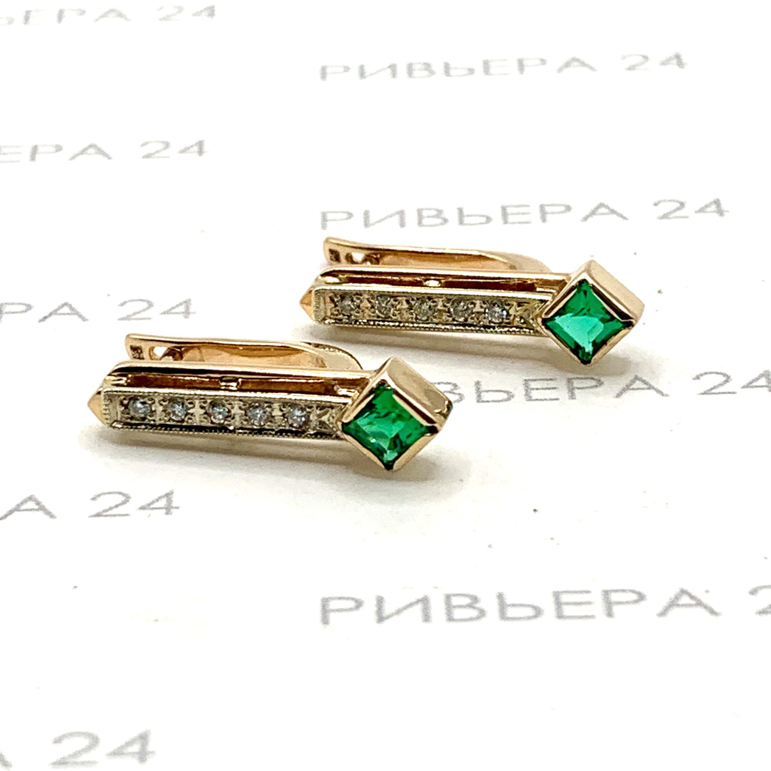 Золотые серьги с бриллиантами 585 пробы 4.36 грамма