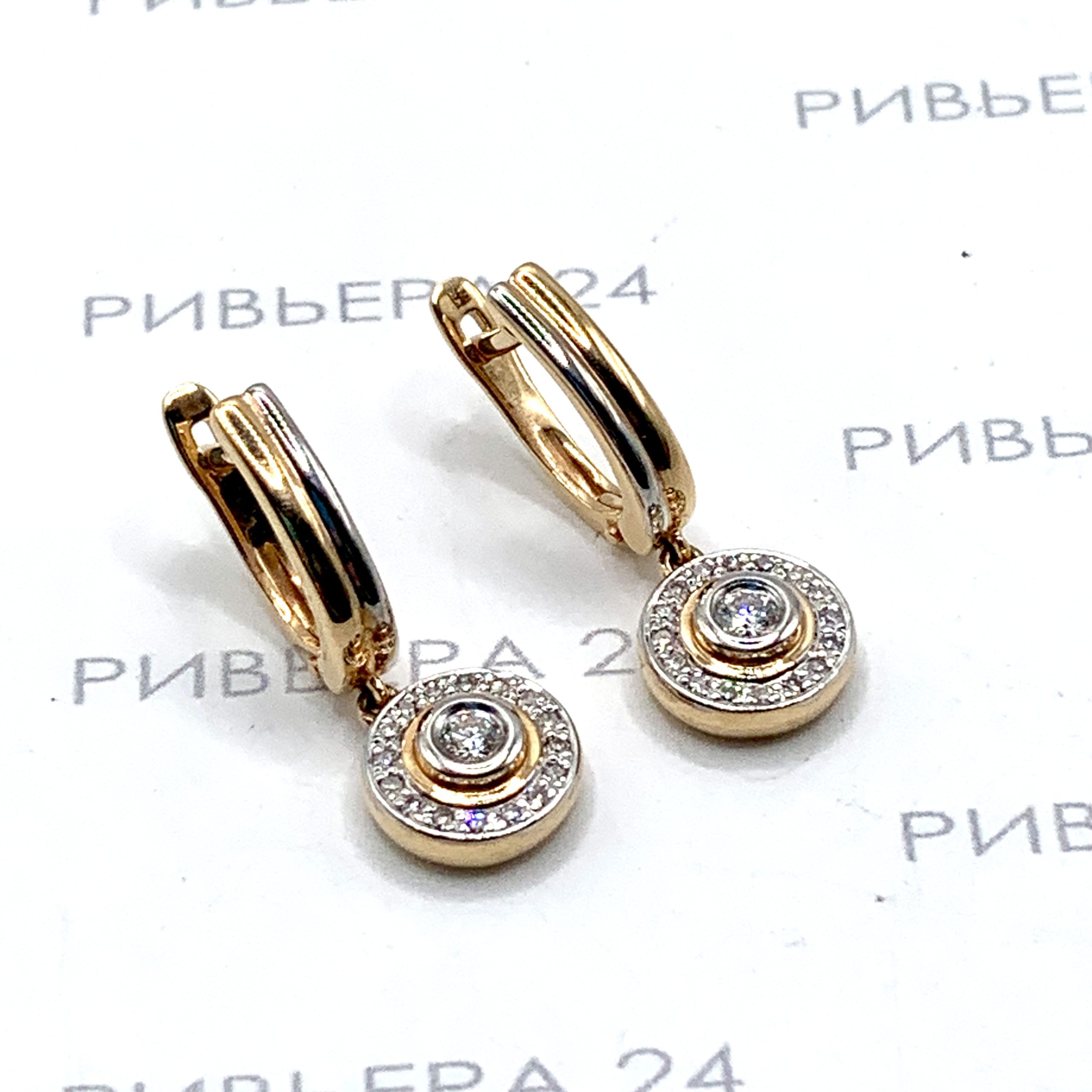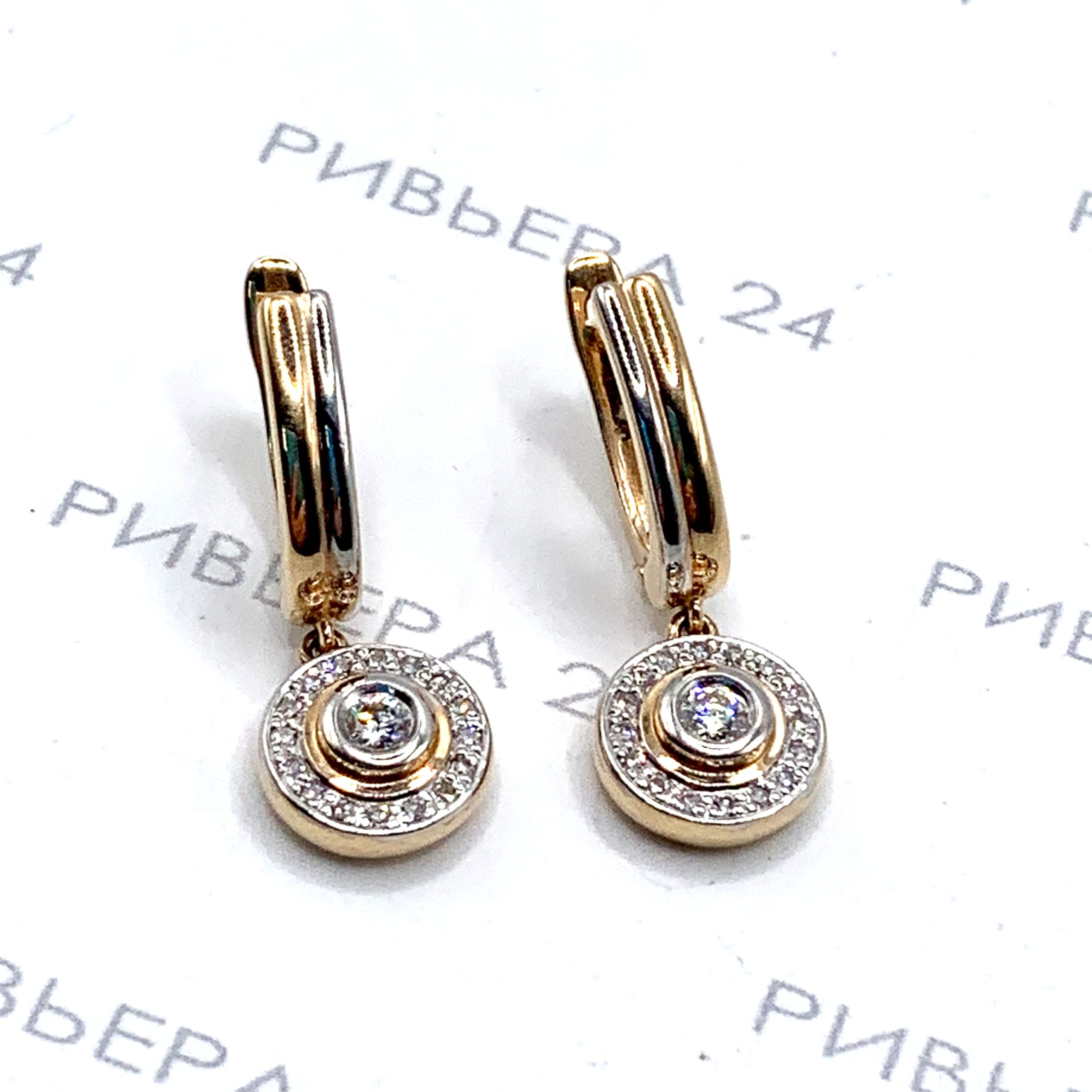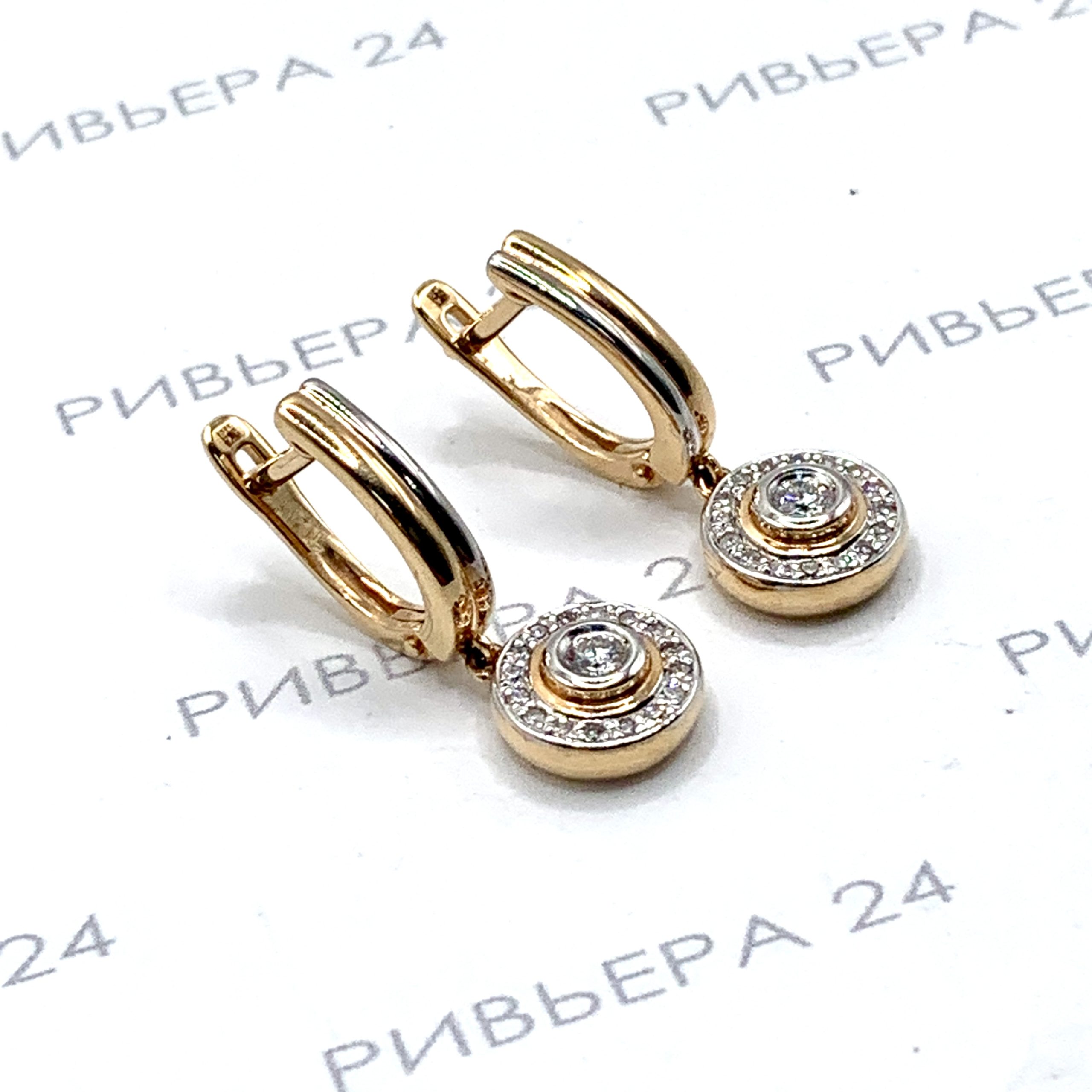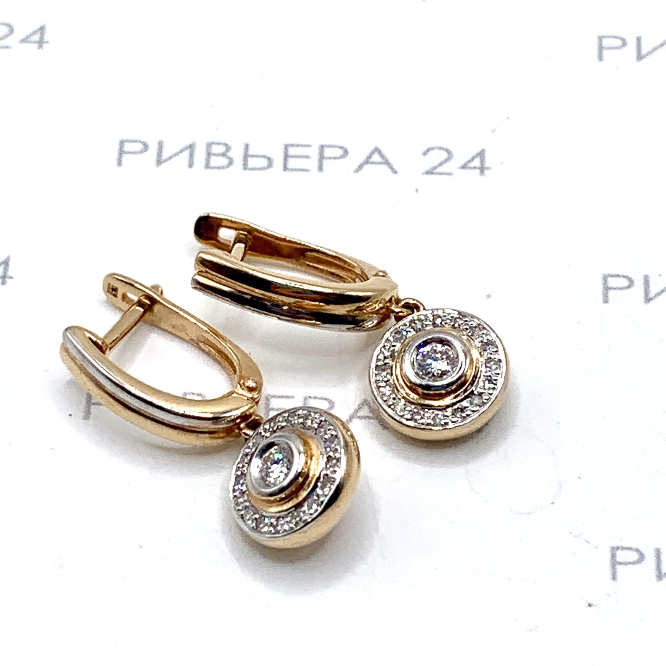 Золотые серьги с бриллиантами 585 пробы 5.35 грамма