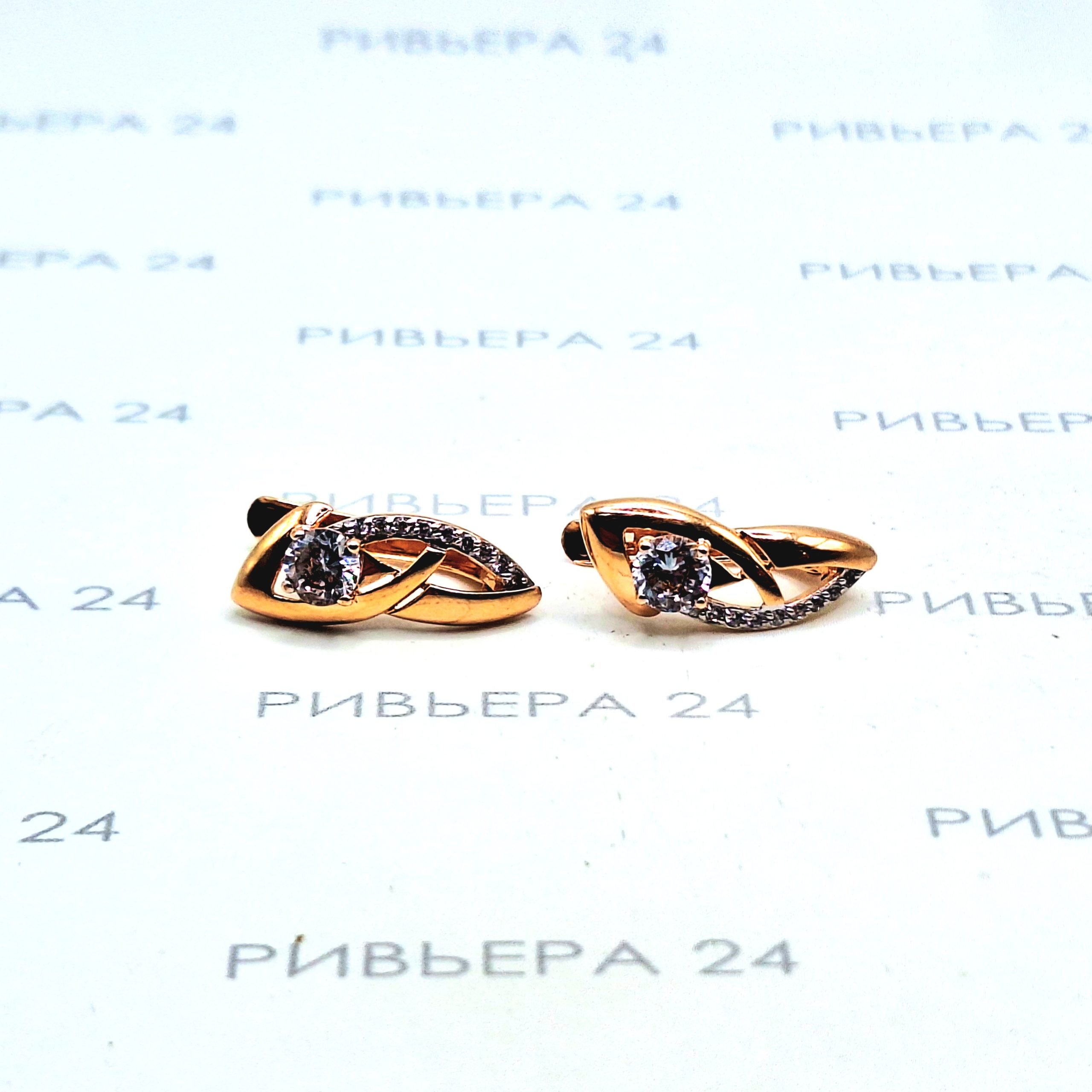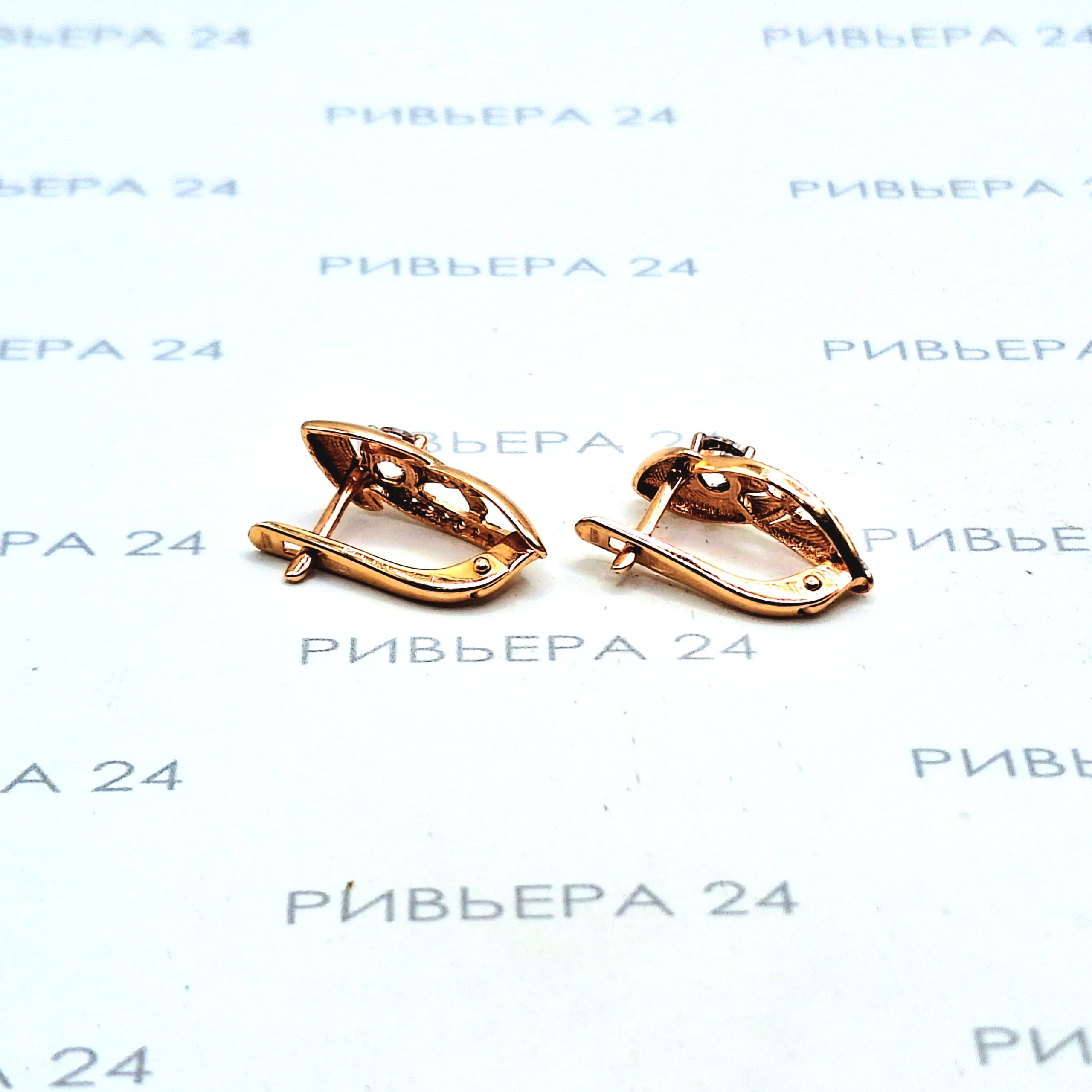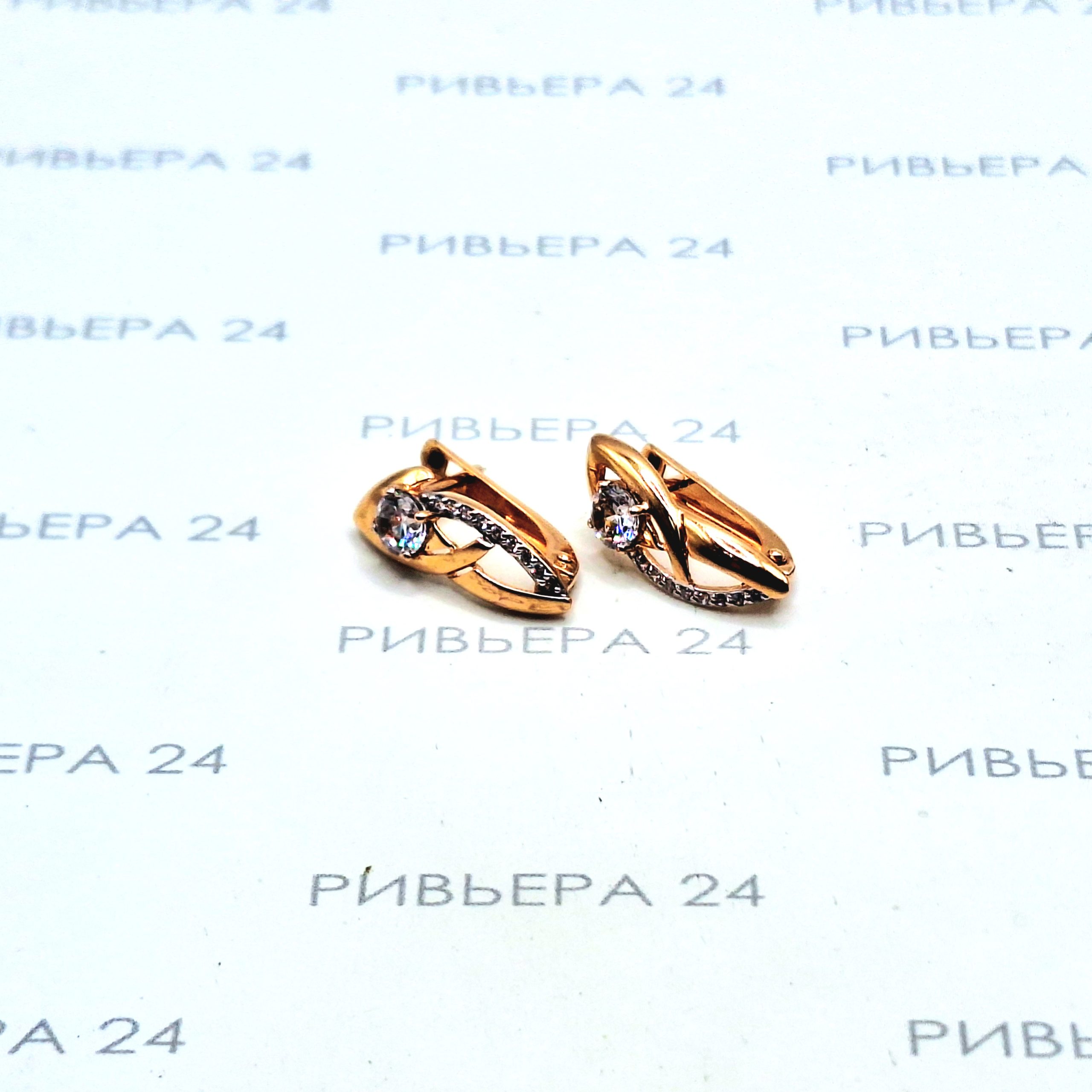 Золотые серьги с фианитами 585 проба 2.54 грамм Золото 585 пробы.