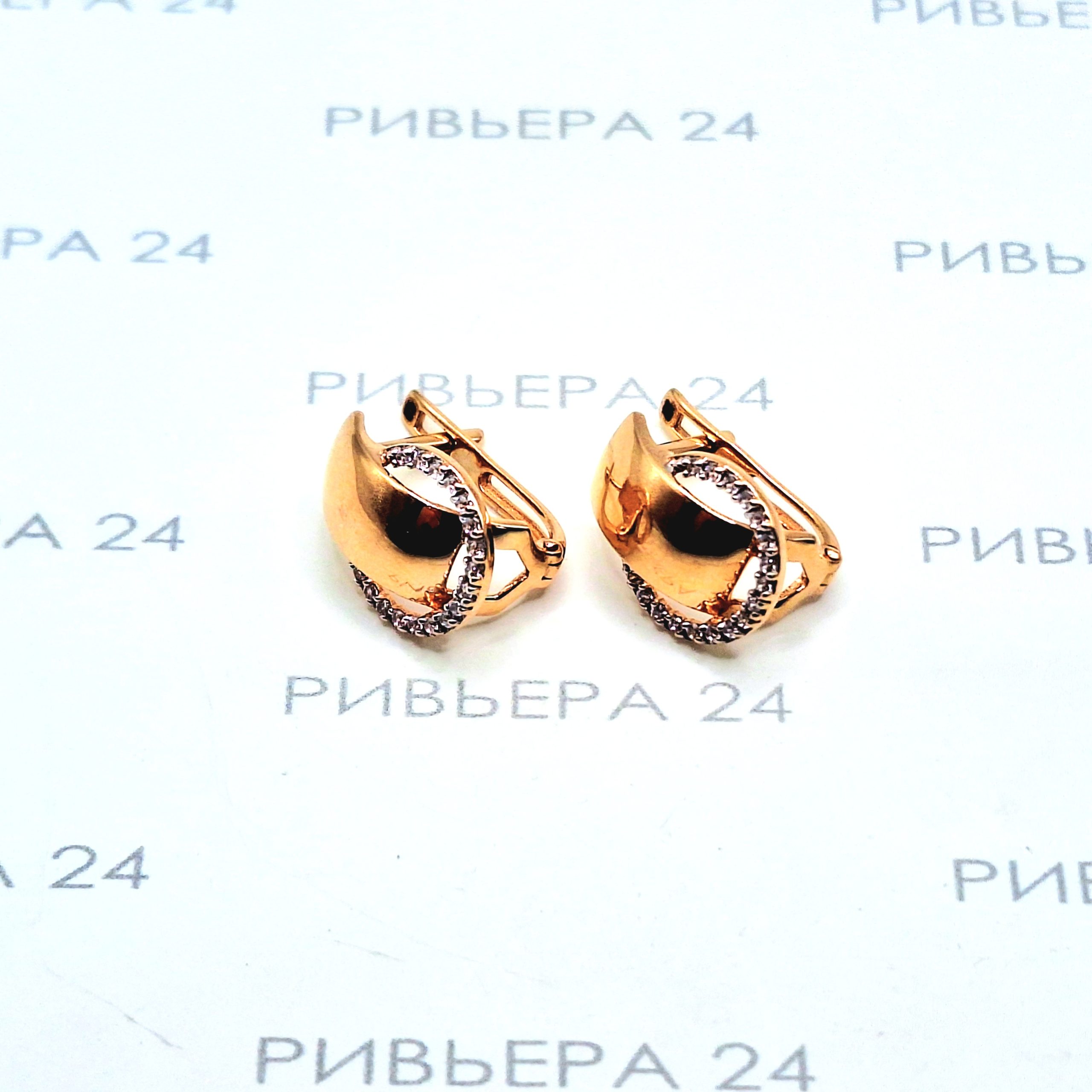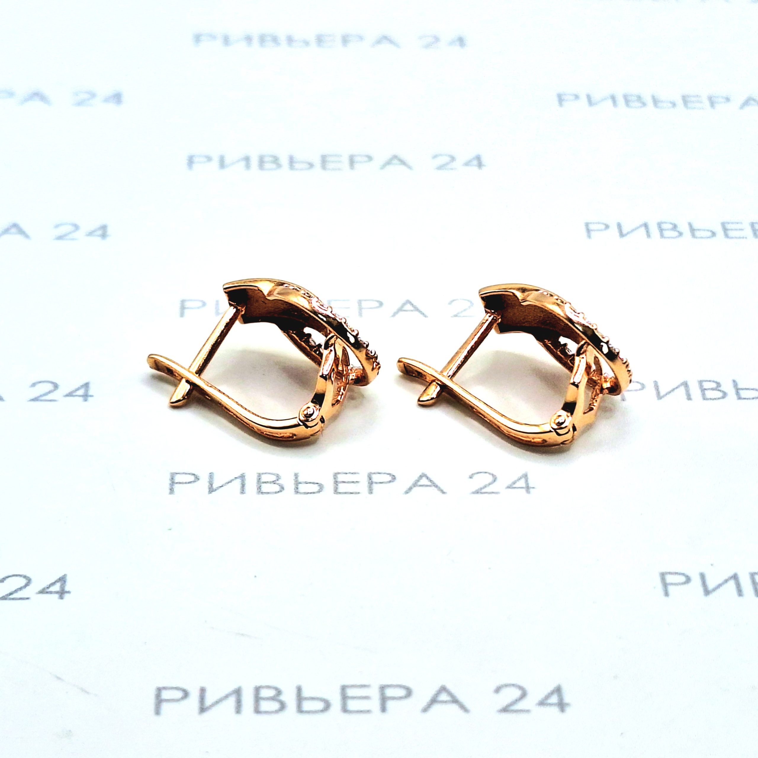 Золотые серьги с фианитами 585 проба 3.06 грамм Золото 585 пробы.