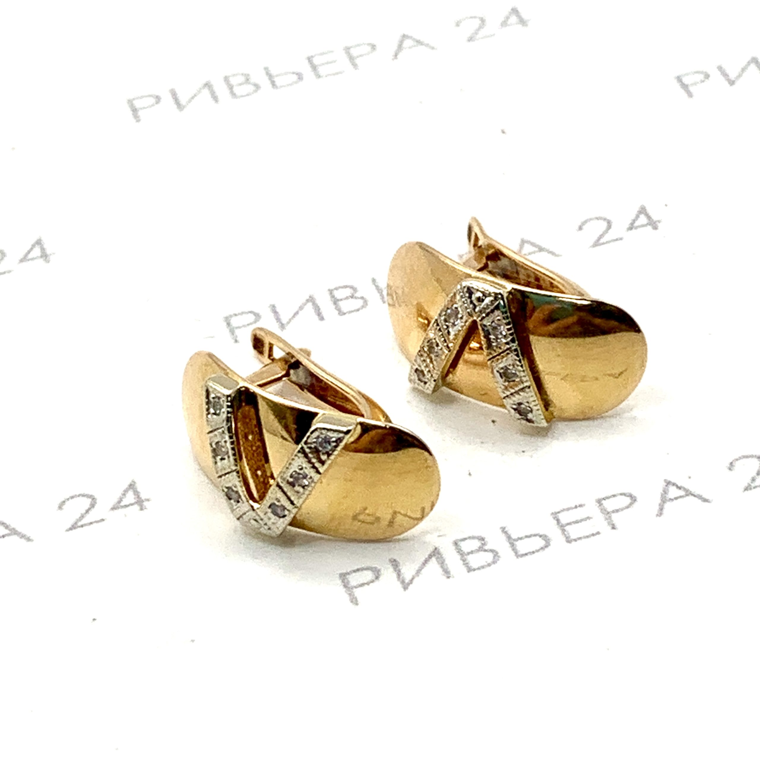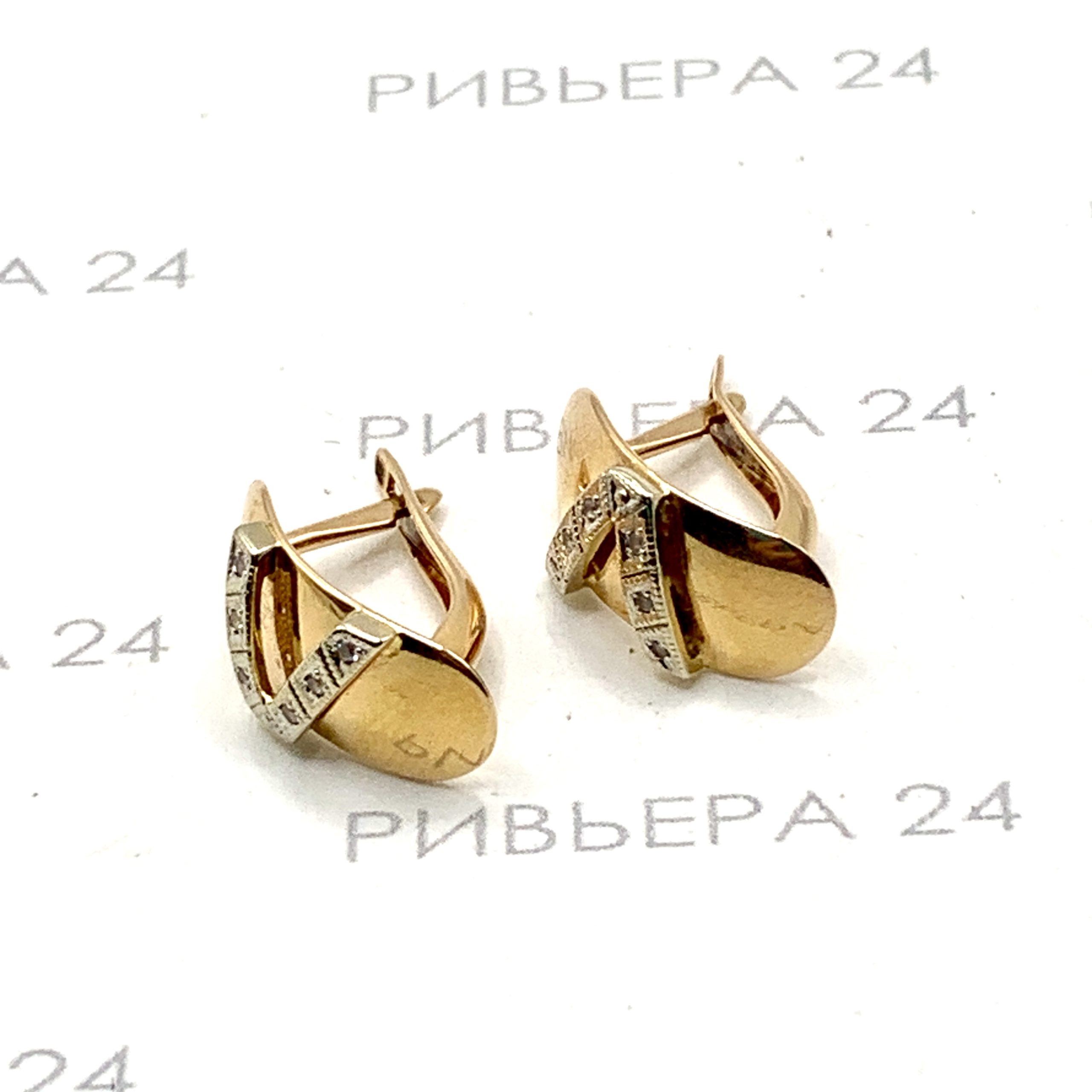 Золотые серьги с фианитами 585 пробы 3.44 грамма Золото 585 пробы.