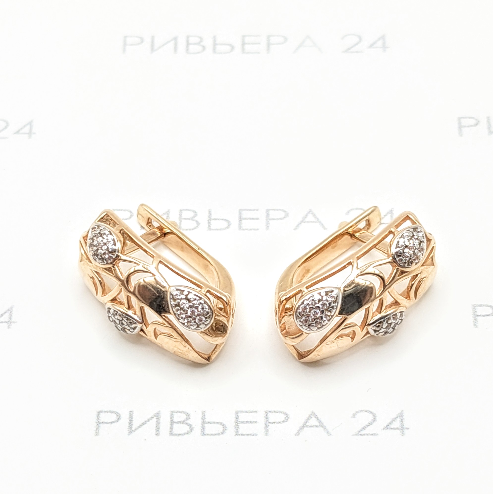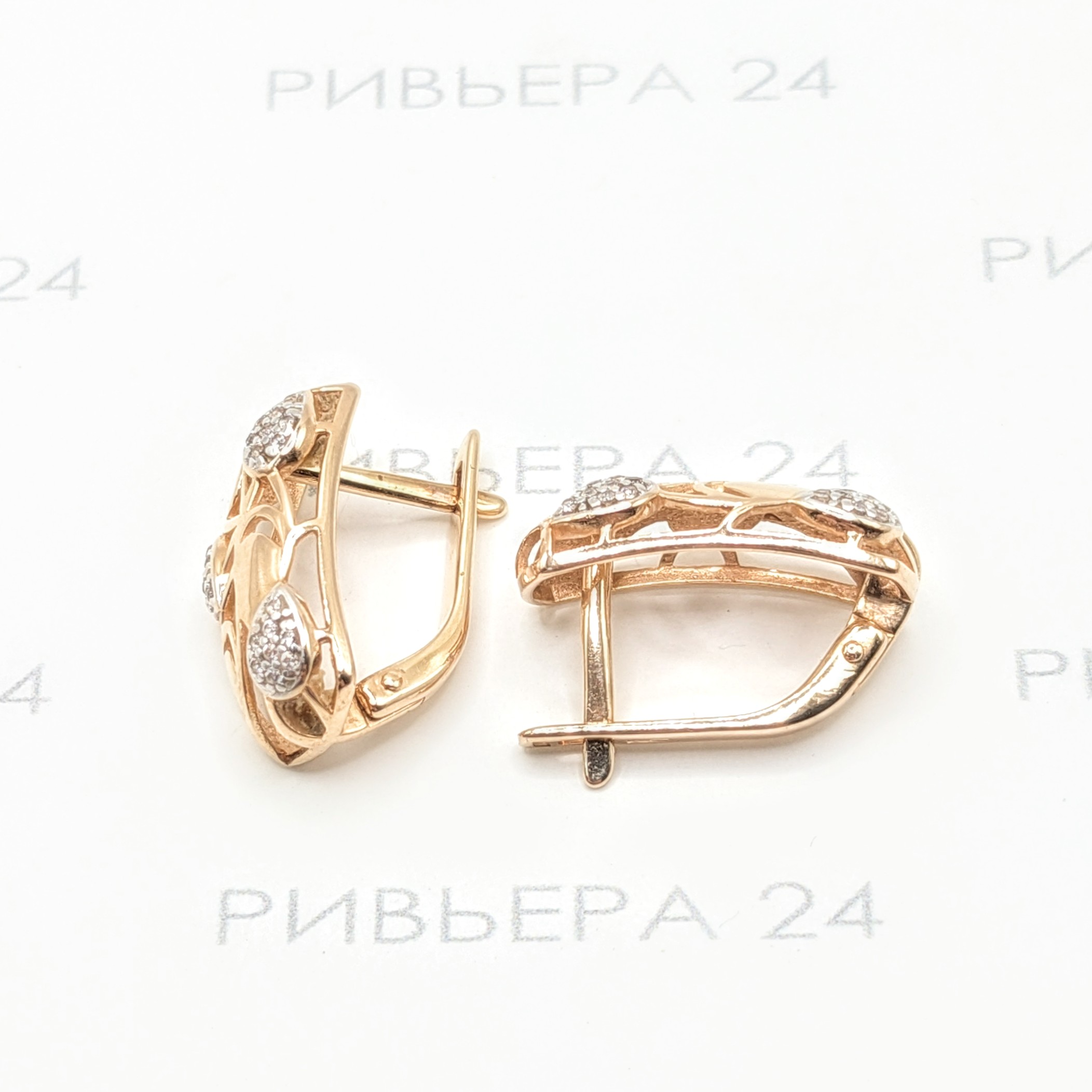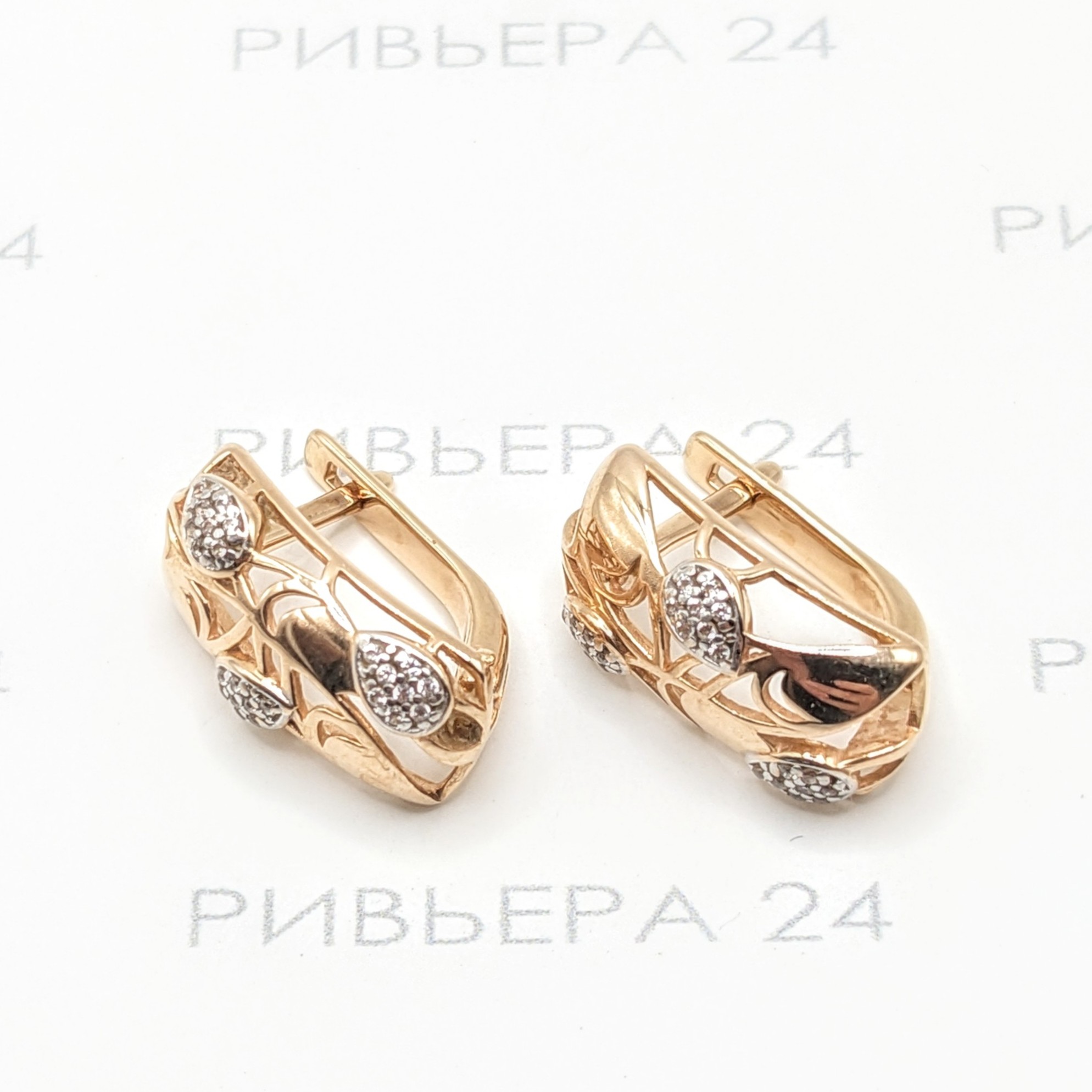 Золотые серьги с фианитами 585 пробы 4.14 грамм Золото 585 пробы.
