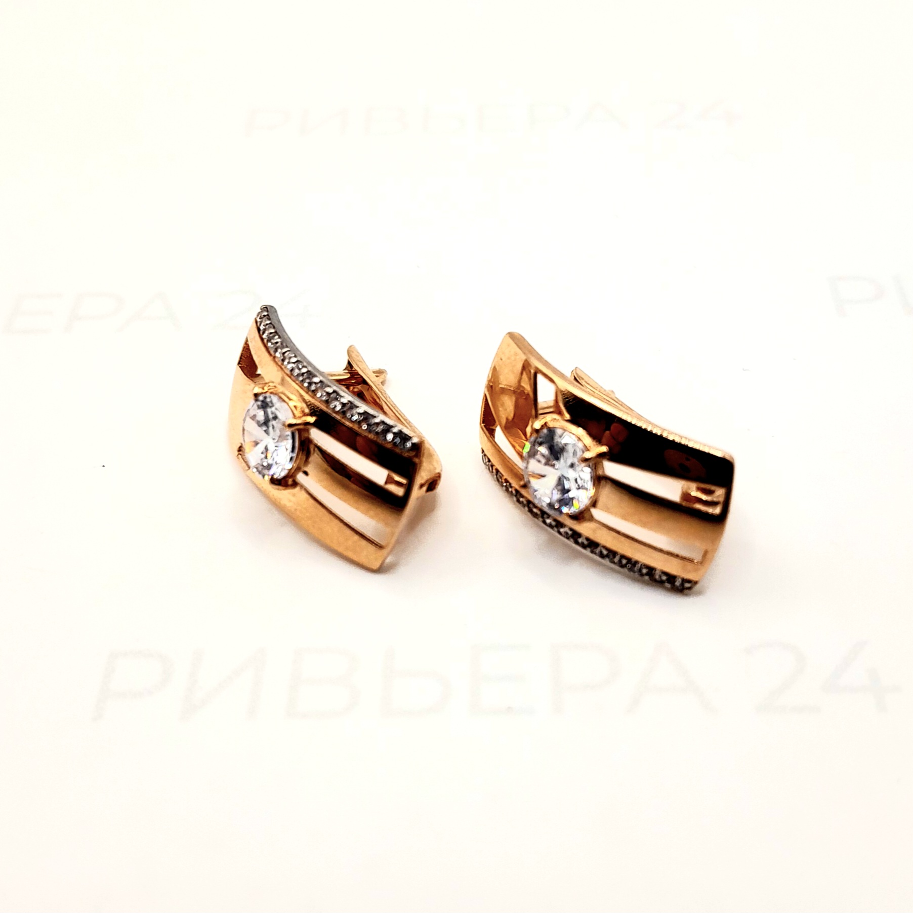 Золотые серьги с фианитом 585 пробы 2.80 грамма Золото 585 пробы.