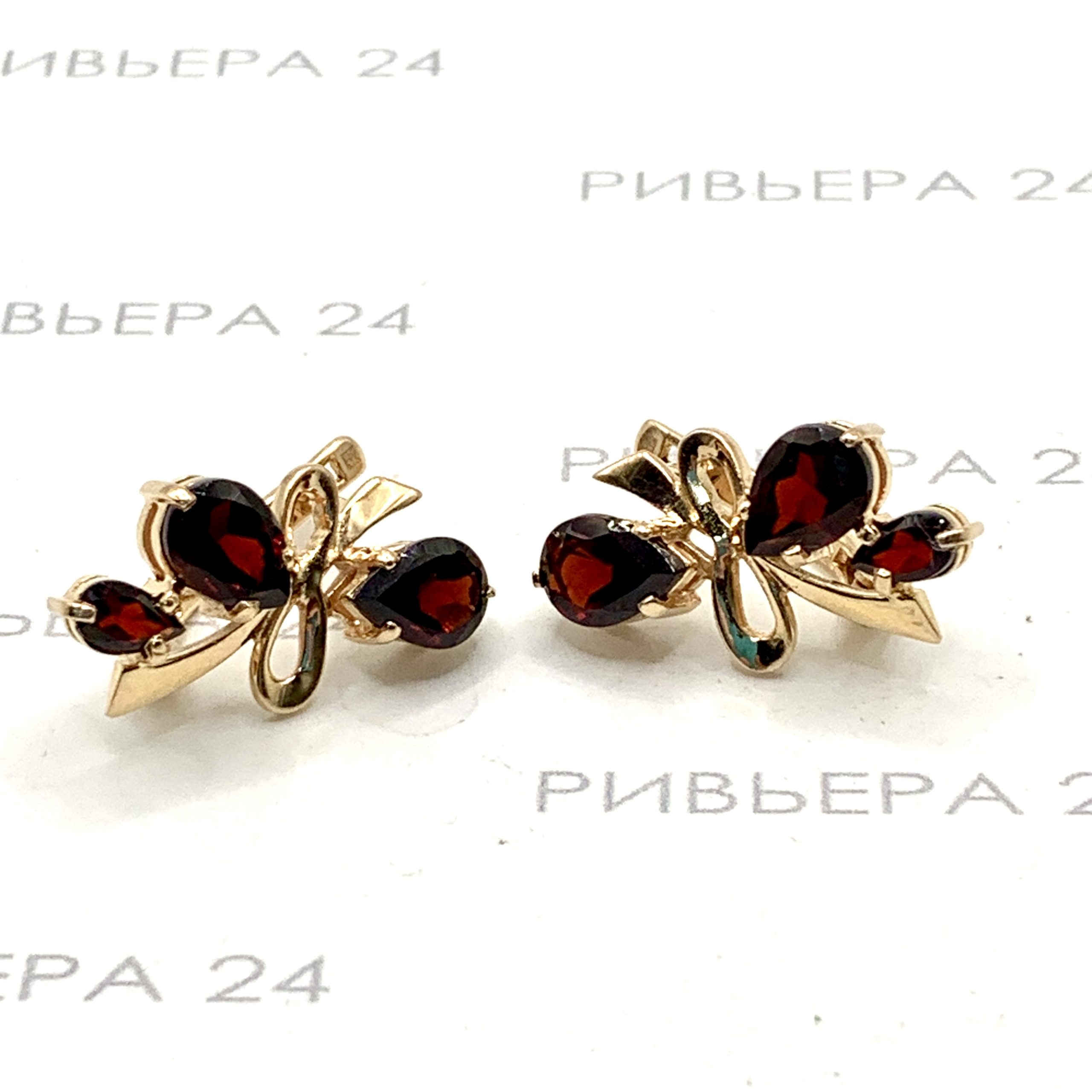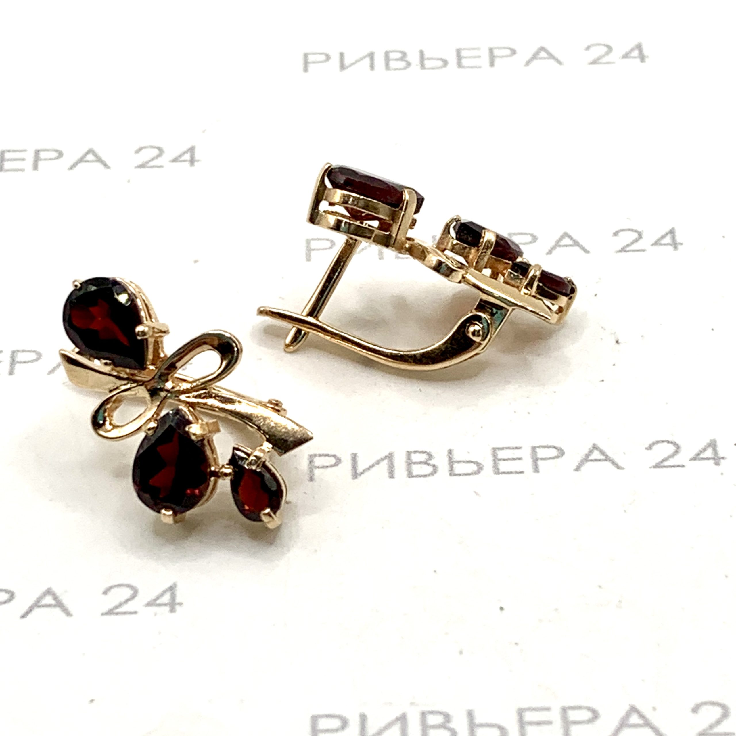 Золотые серьги с гранатом 585 пробы 5.24 грамма Золото 585 пробы.