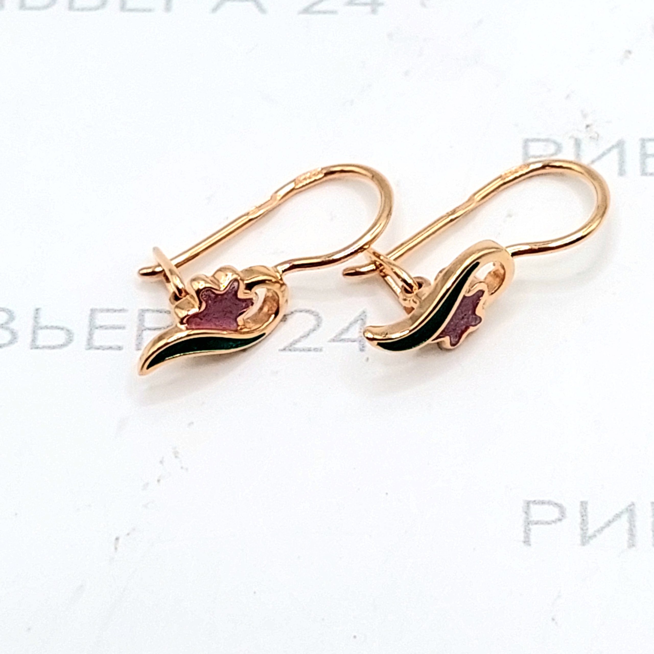 Золотые серьги с эмалью 585 пробы 1.19 грамм Золото 585 пробы.