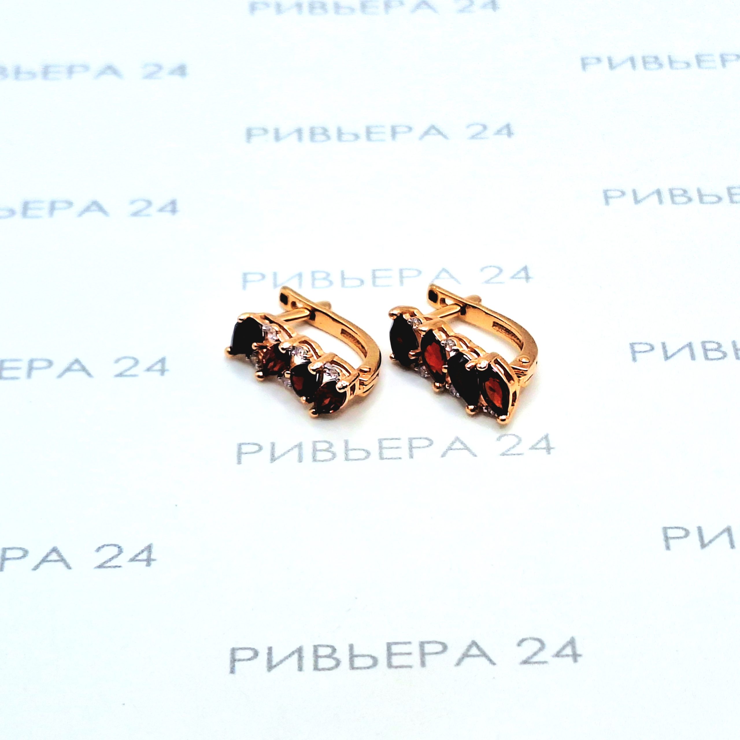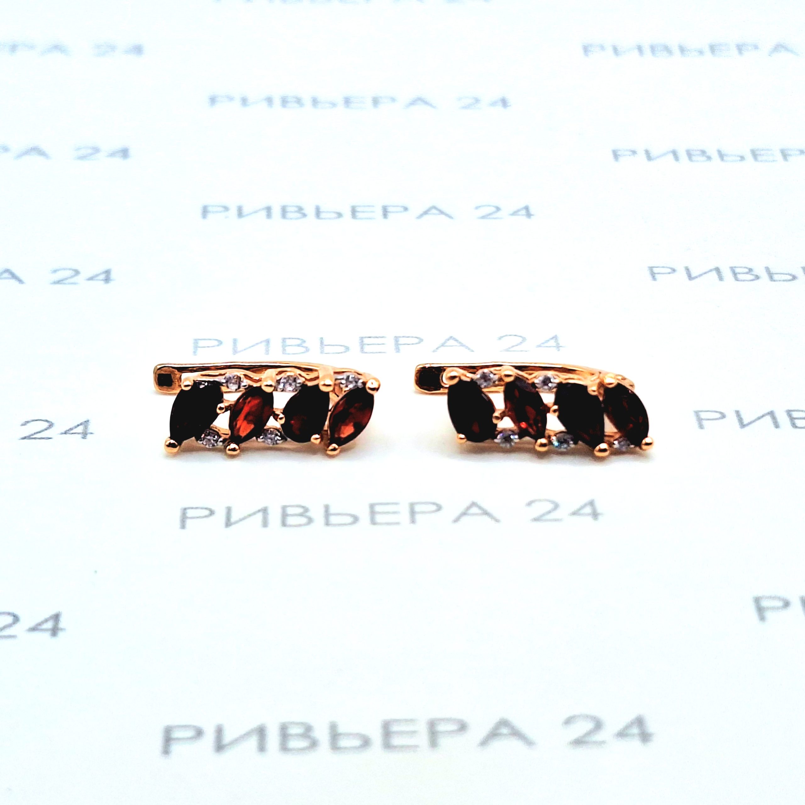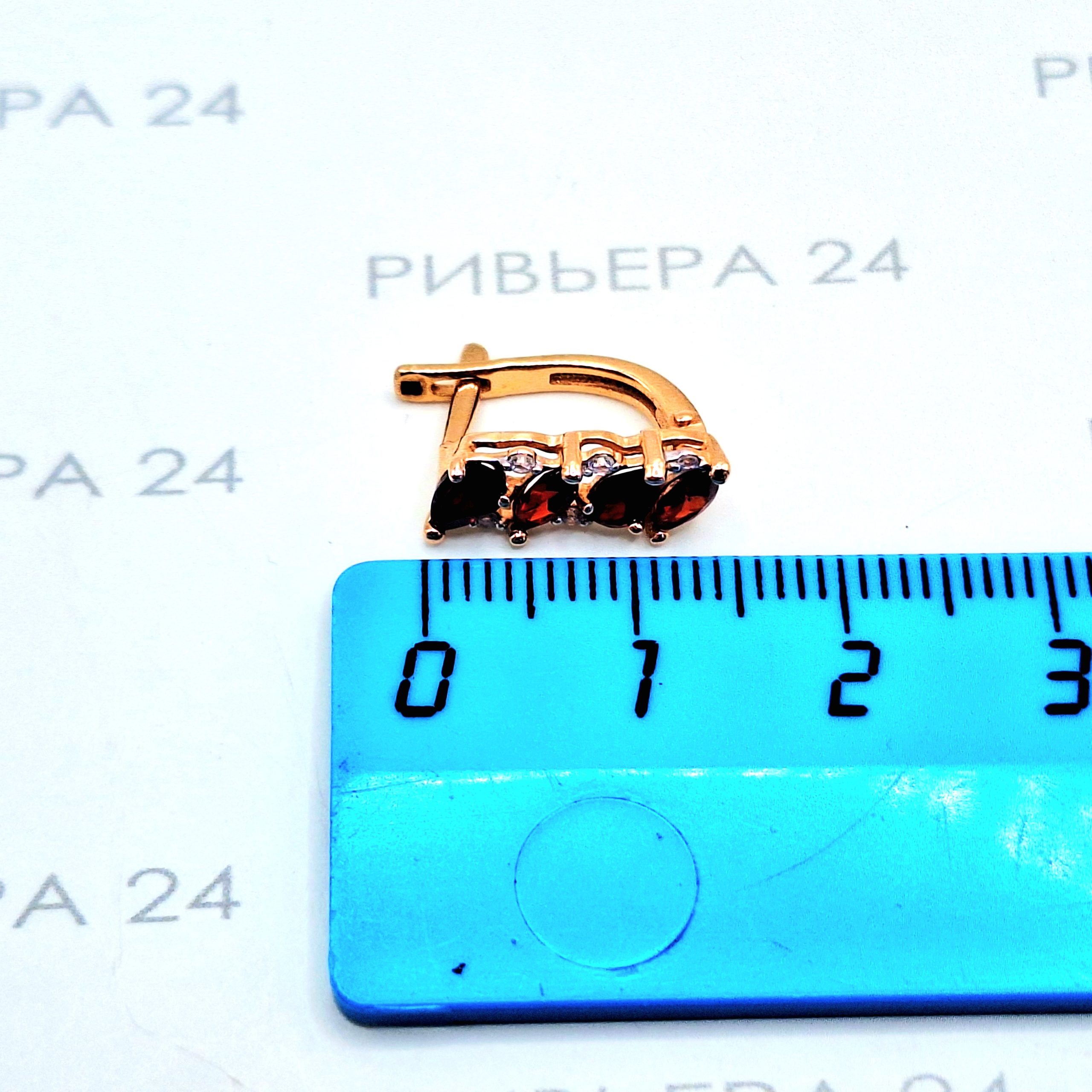 Золотые серьги с корундом и фианитами 585 проба 2.61 грамм Золото 585 пробы.