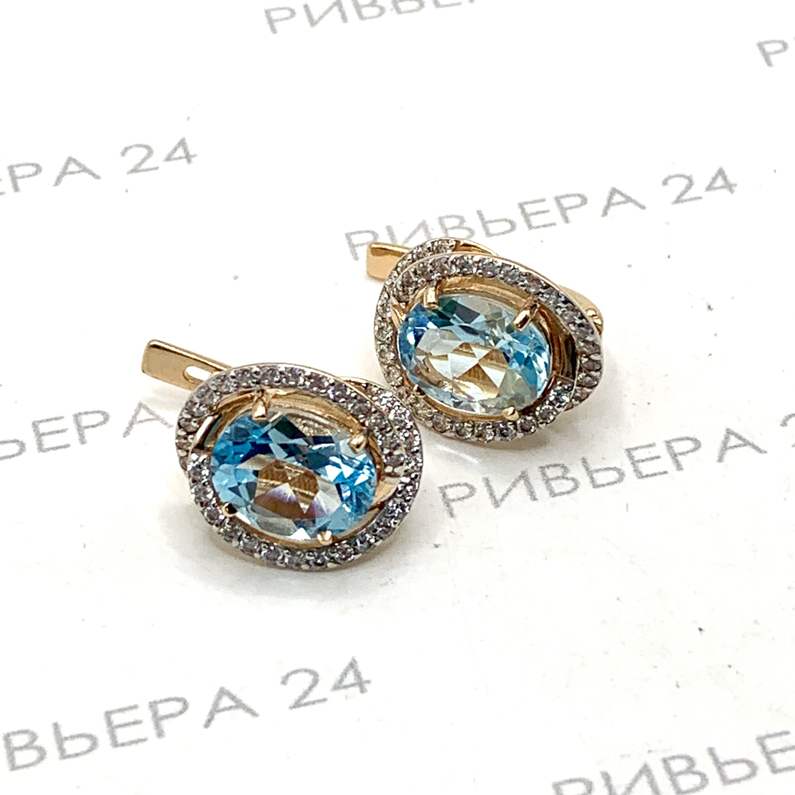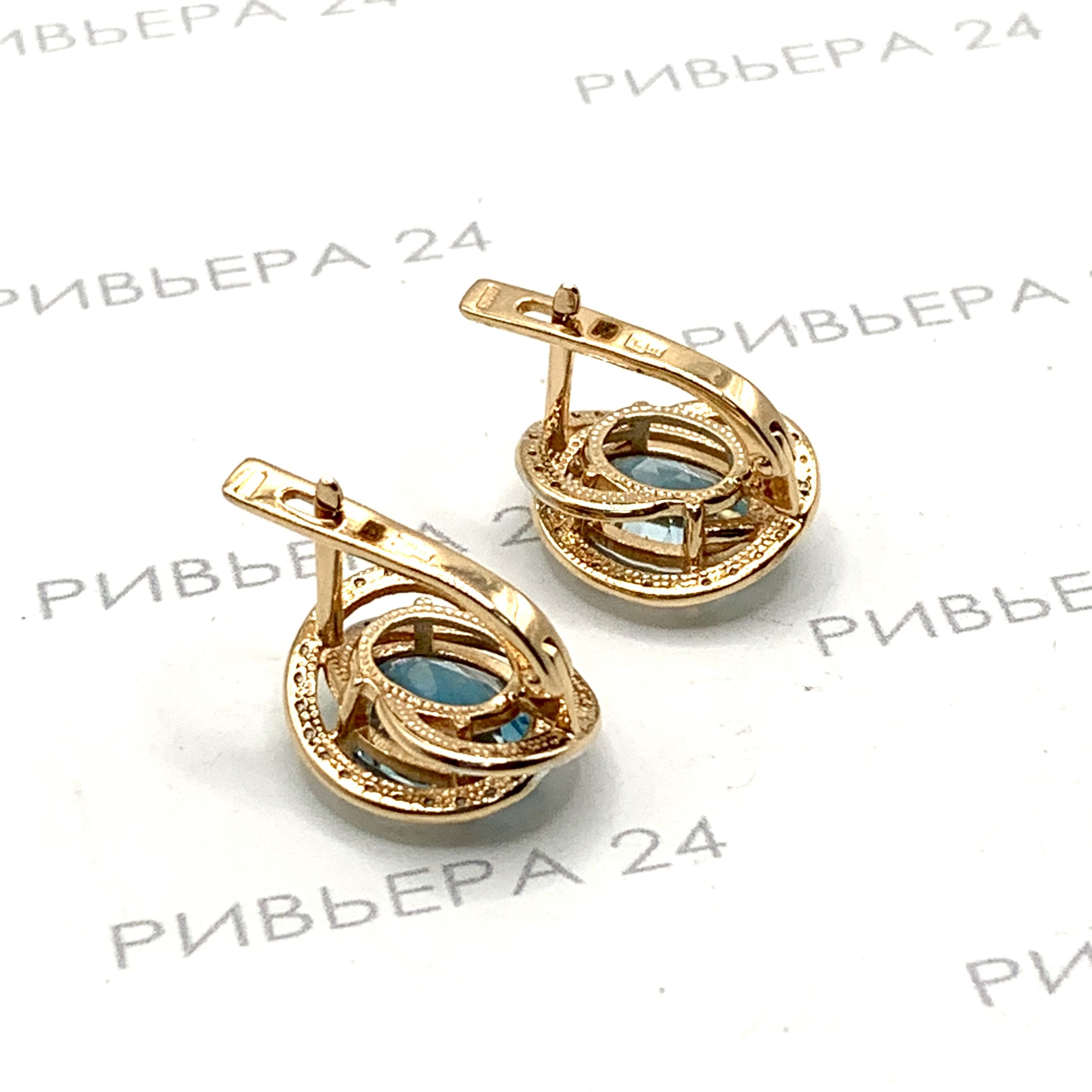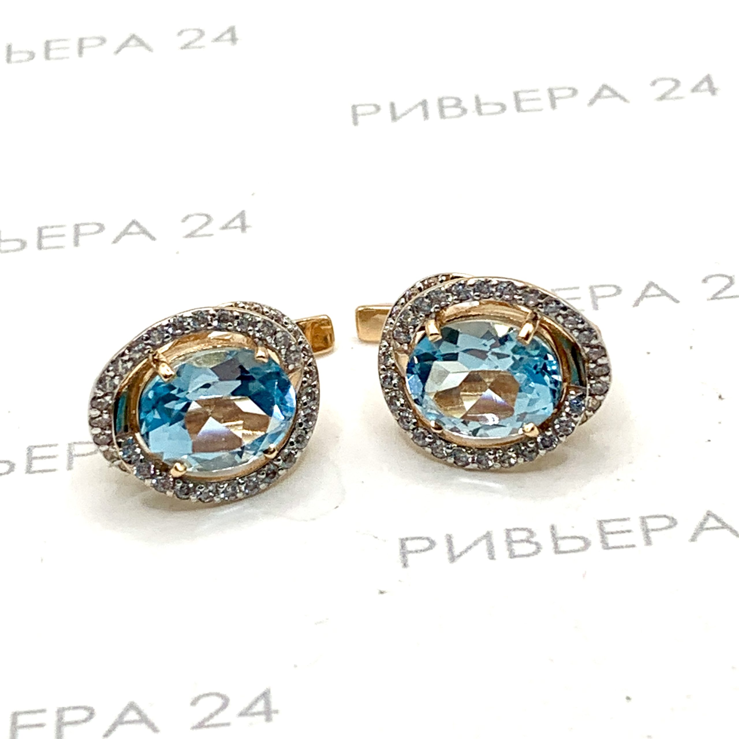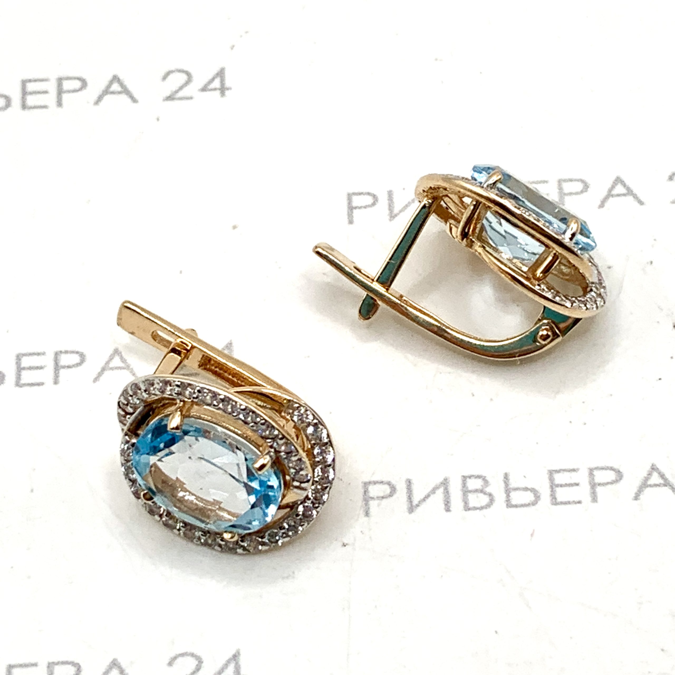 Золотые серьги с топазом и фианитами 585 пробы 5.56 грамма Золото 585 пробы.