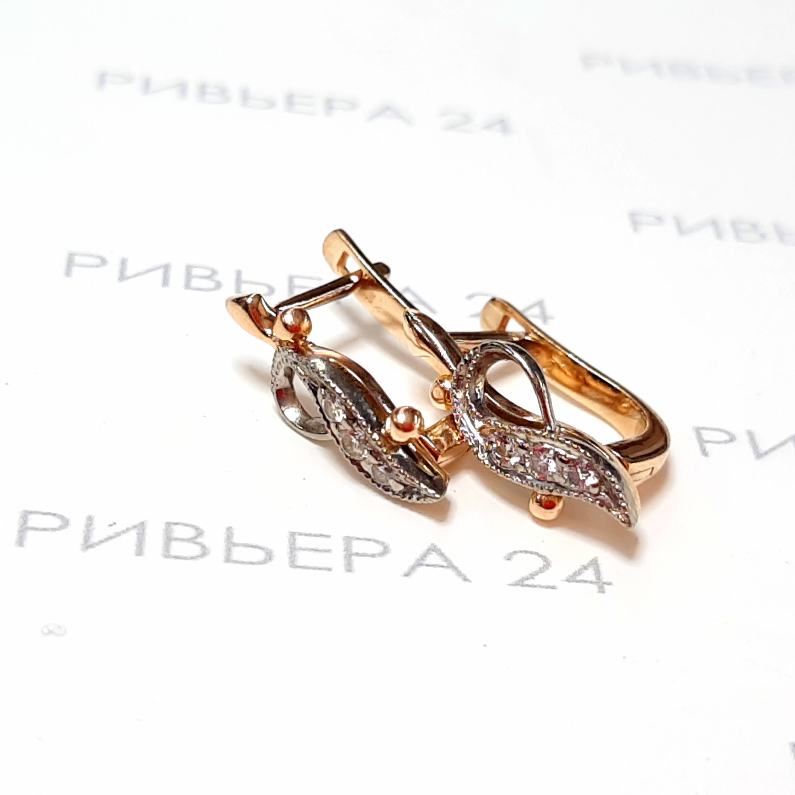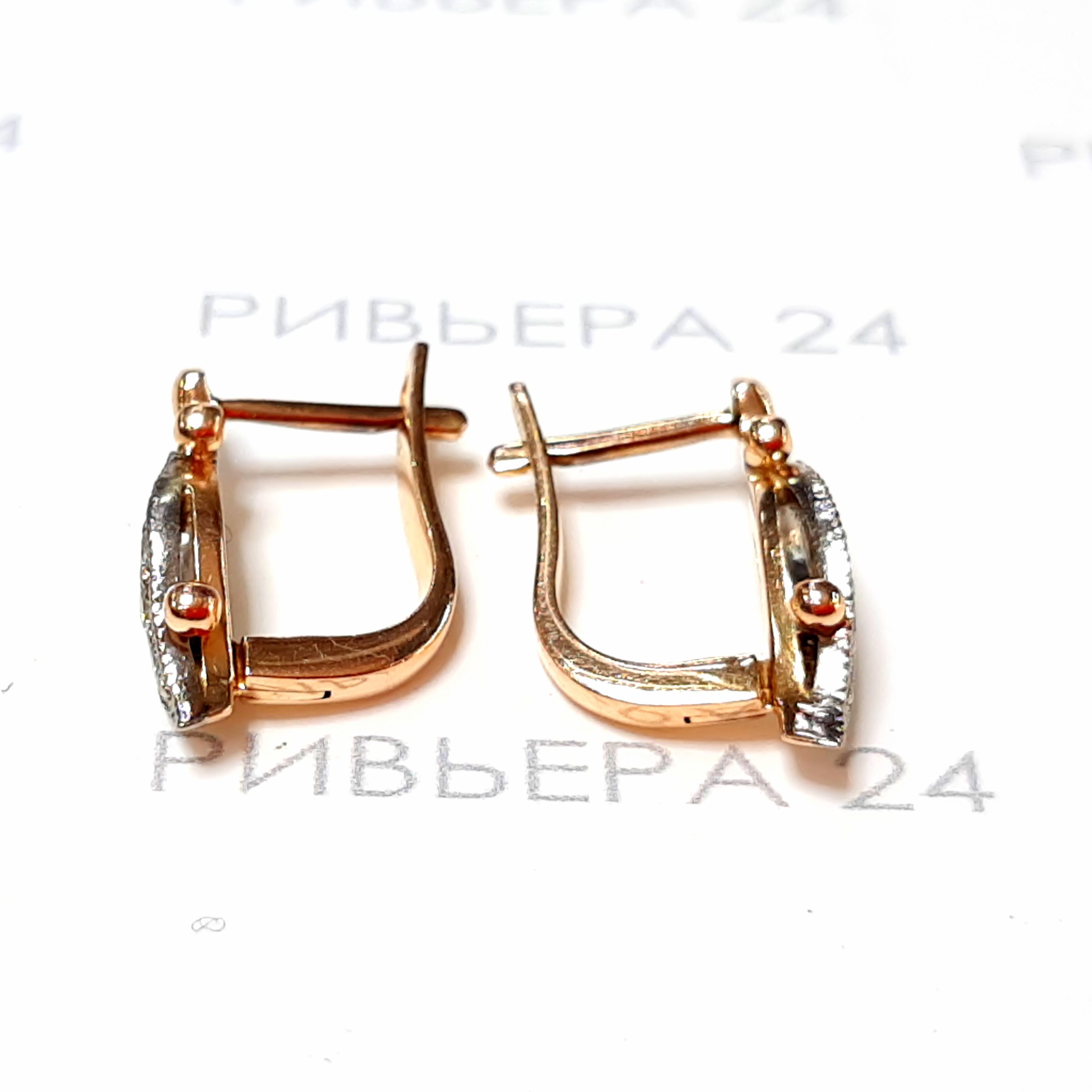 Золотые серьги СССР с бриллиантами 585 пробы 2.83 грамм Золото 585 пробы.